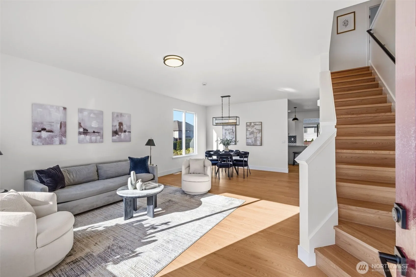 Welcome to this better-than-new, fully remodeled home on corner lot where modern upgrades meet thoughtful design & everyday comfort. This stunning home has been completely refreshed inside out, featuring a brand-new roof, fresh paint & beautifully updated front & backyard landscaping. Step outside to a spacious backyard, perfect for entertaining or play, complete with a large covered concrete area—ideal for year-round gatherings or even a private basketball setup. Inside, the heart of the home is the gourmet kitchen, showcasing brand-new cabinetry, sleek quartz countertops, a generous island, designer glass tile backsplash & all-new stainless steel appliances. The main level is enhanced with new laminate flooring throughout, including stairs and primary bedroom, along with a stylish new electric fireplace & all-new modern lighting fixtures & new water heater. Every bathroom has been tastefully updated with new tile flooring, quartz countertops, and contemporary cabinetry, offering a clean and luxurious feel throughout. The home offers a fantastic layout with formal living and dining areas, plus a welcoming family room. Bonus room upstairs can be converted to 5th bedroom. A spacious laundry room and convenient powder room are located on the main floor for added functionality. Upstairs, you’ll find three generously sized bedrooms, a versatile bonus room, and an expansive primary suite featuring a spa-inspired 5-pc bath & a large walk-in closet. Top rated Kent Schools. NO HOA!!