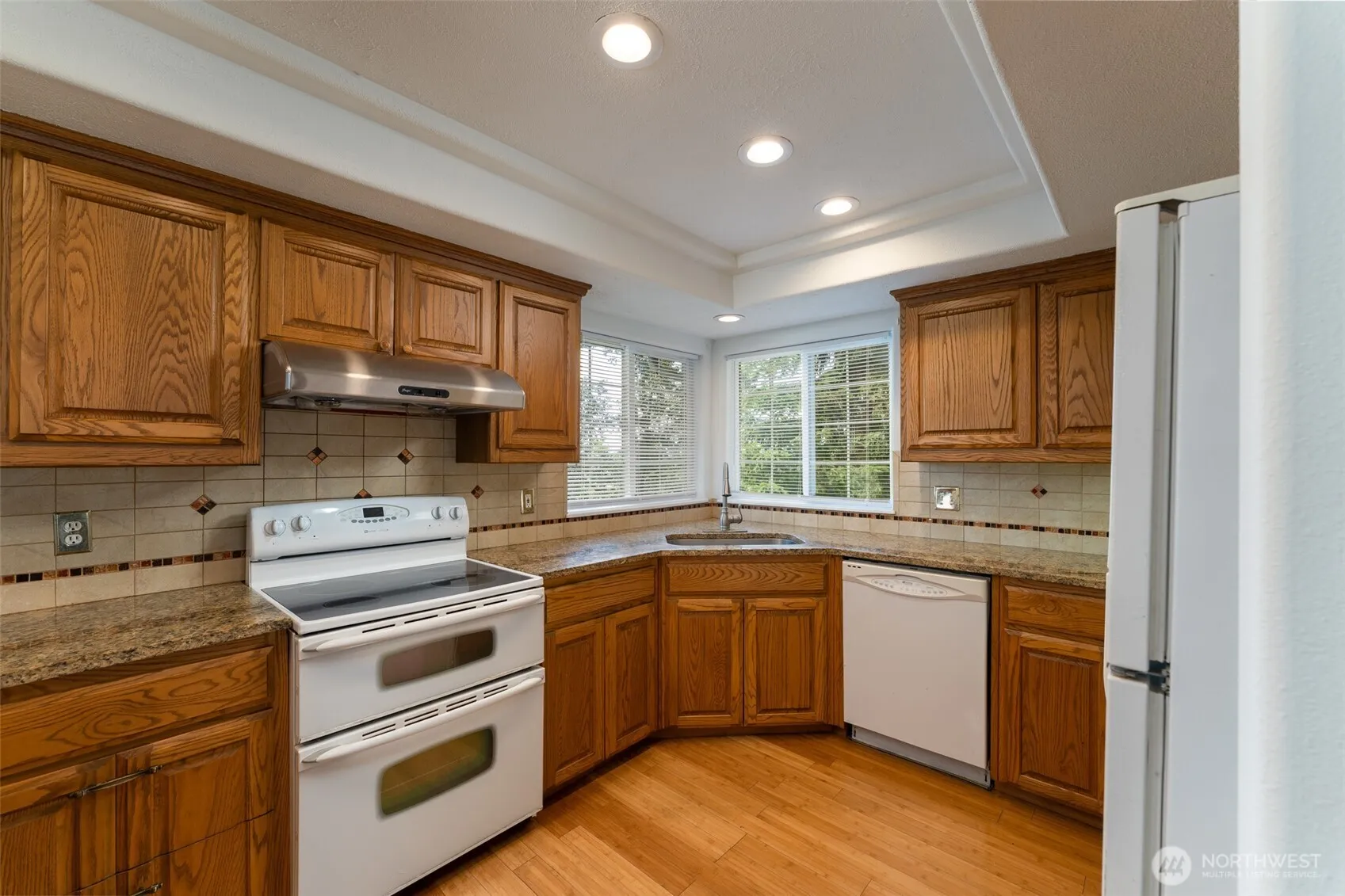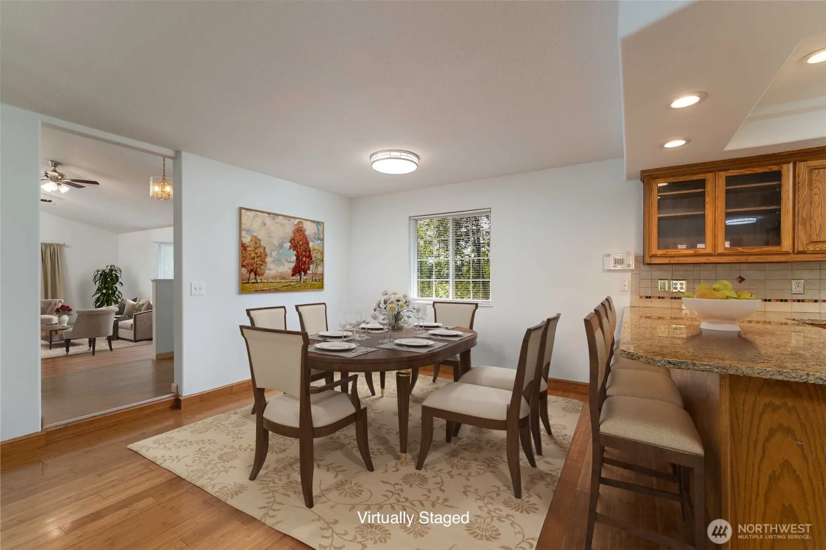 Tucked in a wooded setting and very close to I-5, this spacious and versatile home offers privacy, functionality, and room to spread out. The light-filled main living area features bamboo flooring and flows into an open kitchen with slab granite countertops, oak cabinetry, and ample workspace. Large windows invite natural light and views of the surrounding greenery.With 3 bedrooms and 2.5 bathrooms, the home provides comfortable everyday living with a flexible layout. The lower-level living area features new luxury plank flooring—ideal for a media room, guest space, or extended living. An upper-level bonus room offers additional versatility for an office, hobby space, or extra sleeping area.Enjoy outdoor living on the expansive deck, perfect for entertaining or relaxing in a serene setting. A second parcel enhances privacy and creates a natural green space buffer.Two double-car garages provide abundant room for vehicles, storage, or projects, with a separate rec room above the second garage for added flexibility. RV parking and convenient access to I-5 complete this well-rounded property.