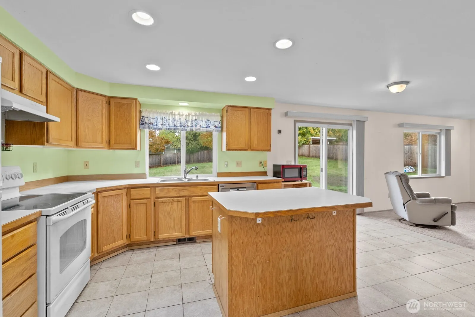 Discover the potential in this spacious 3-bedroom, 2.5-bath Graham home set on a generous .3+ acre parcel! A grand staircase with a convenient chairlift welcomes you at the entry, setting the tone for the home’s impressive layout. The open-concept kitchen flows seamlessly from the living room, featuring a central island and easy access to the backyard—perfect for effortless indoor-outdoor entertaining. Large windows fill the space with natural light, highlighting the home’s inviting atmosphere. Ready for your updates and personal touch, this property offers endless possibilities in a peaceful, desirable neighborhood!