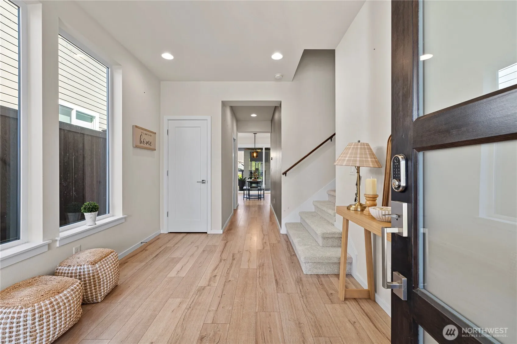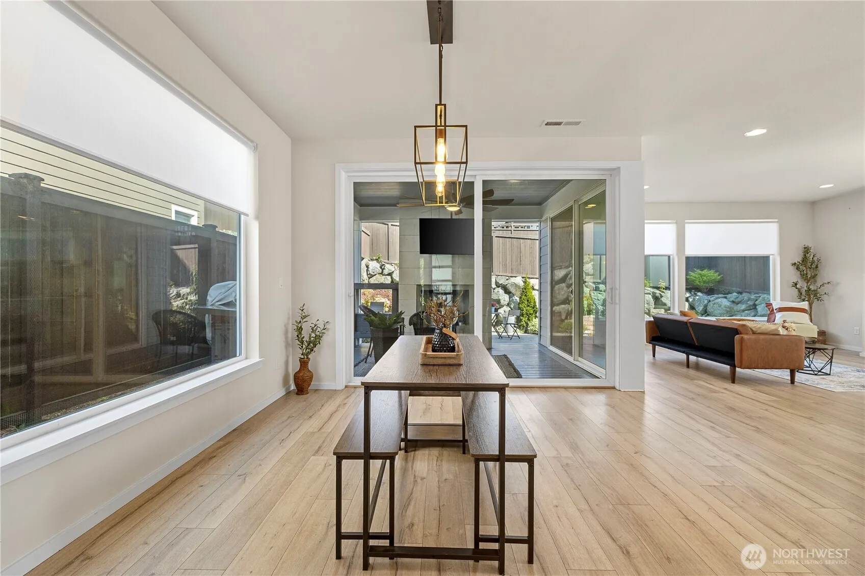 Experience the perfect blend of scale and sophistication in this sought after Eaglemont residence. Spanning 2535 sq. ft this 4 bedroom 2.5 bath home features a signature Great Room floor plan with fireplace in living area for ambiance designed for seamless entertaining. Transition through double sliding doors to your private sanctuary a covered veranda with ceiling fan and gas fireplace, overlooking a massive stamped concrete patio and one of the largest fully fenced yards in the community. Primary bedroom enhanced with french doors into the custom ensuite with double sinks, soaking tub and walk in shower. 2 walk closets and custom organizer. 3 more rooms a full bath and flex room wrap up the second story. Additional upgrades include, tankless water heater, heat pump for ac. The expansive 774 sq ft 3 car garage and massive driveway with room for up to 5 vehicles. Brand new Carpet throughout 2nd level. Nestled in a premium community. Totalled over $100,000.00 in builder upgrades.