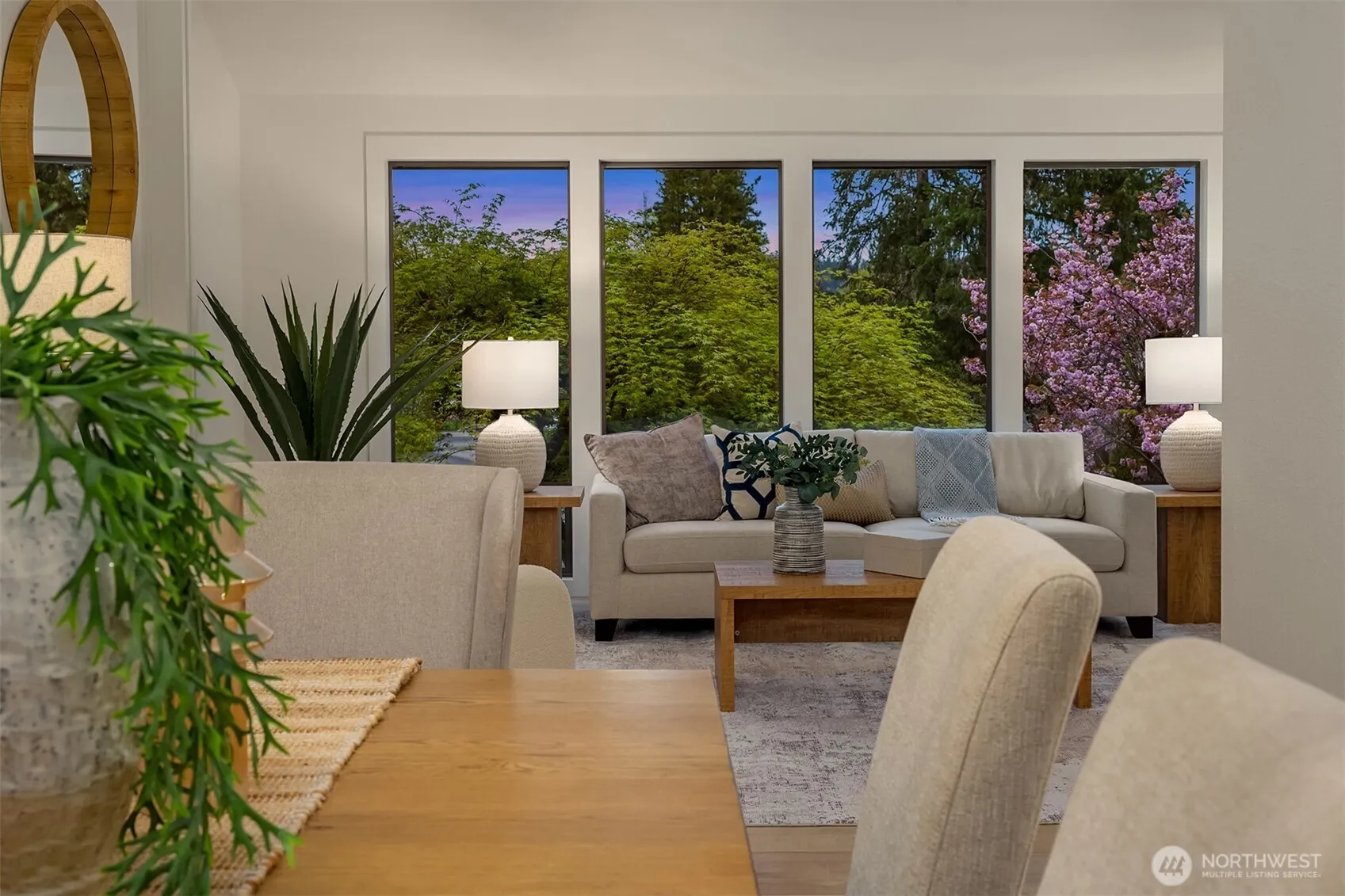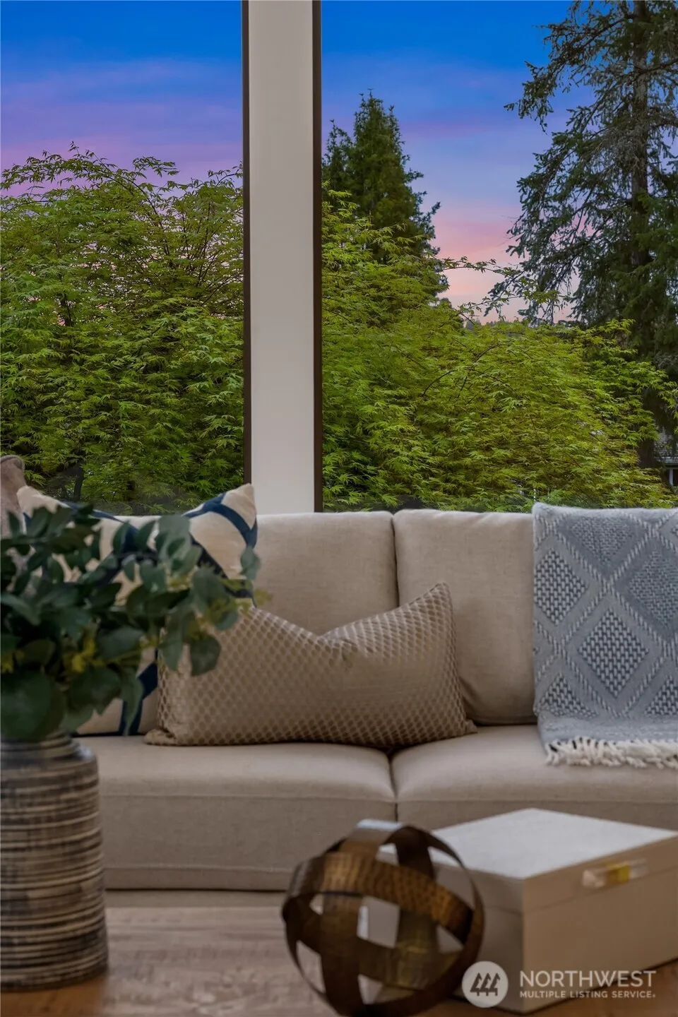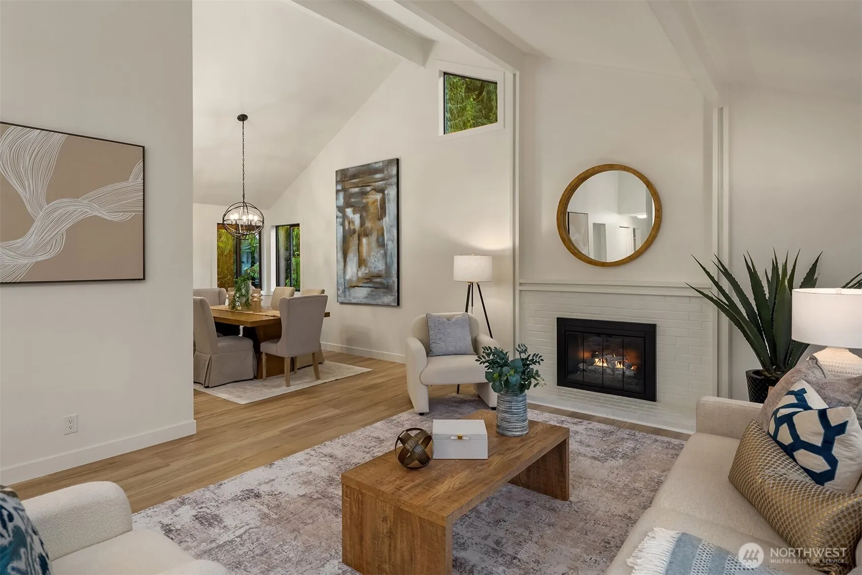 At the end of a quiet cul-de-sac in desirable South Cove, this close-knit community carries on traditions that feel increasingly rare. Blooming magnolias lend soft color to the landscape while light filters through expansive windows. This fully reimagined home offers a sense of ease and belonging. Vaulted living and dining spaces draw in natural light and treetop views, revealing a top-to-bottom renovation where nearly every surface has been thoughtfully renewed. The kitchen, appointed with quartz countertops and new appliances, flows effortlessly into inviting gathering spaces, while new flooring, fresh paint, updated millwork, doors, and lighting create a calm, cohesive backdrop that feels both current and timeless. A refreshed fireplace anchors the main level, while the lower level offers flexible space for media, guests, work, or retreat. Outside, a private fenced yard and new composite deck invite quiet mornings and easy evenings, with a natural connection between indoor and outdoor living. Just two blocks away, private access to Lake Sammamish and the neighborhood park feels like an extension of home, with a sandy beach, swim dock, tennis and pickleball courts, and play structures where summer days are spent on the water, neighbors gather, and community becomes part of everyday life.