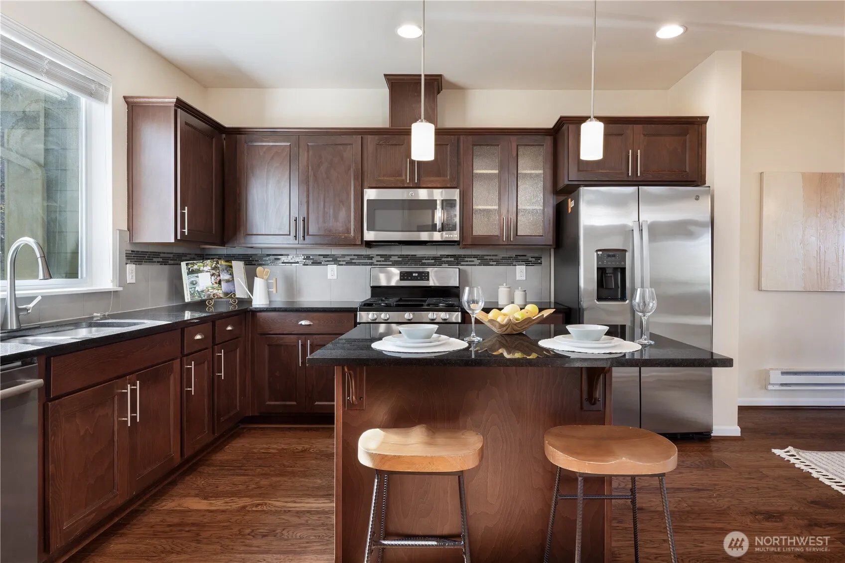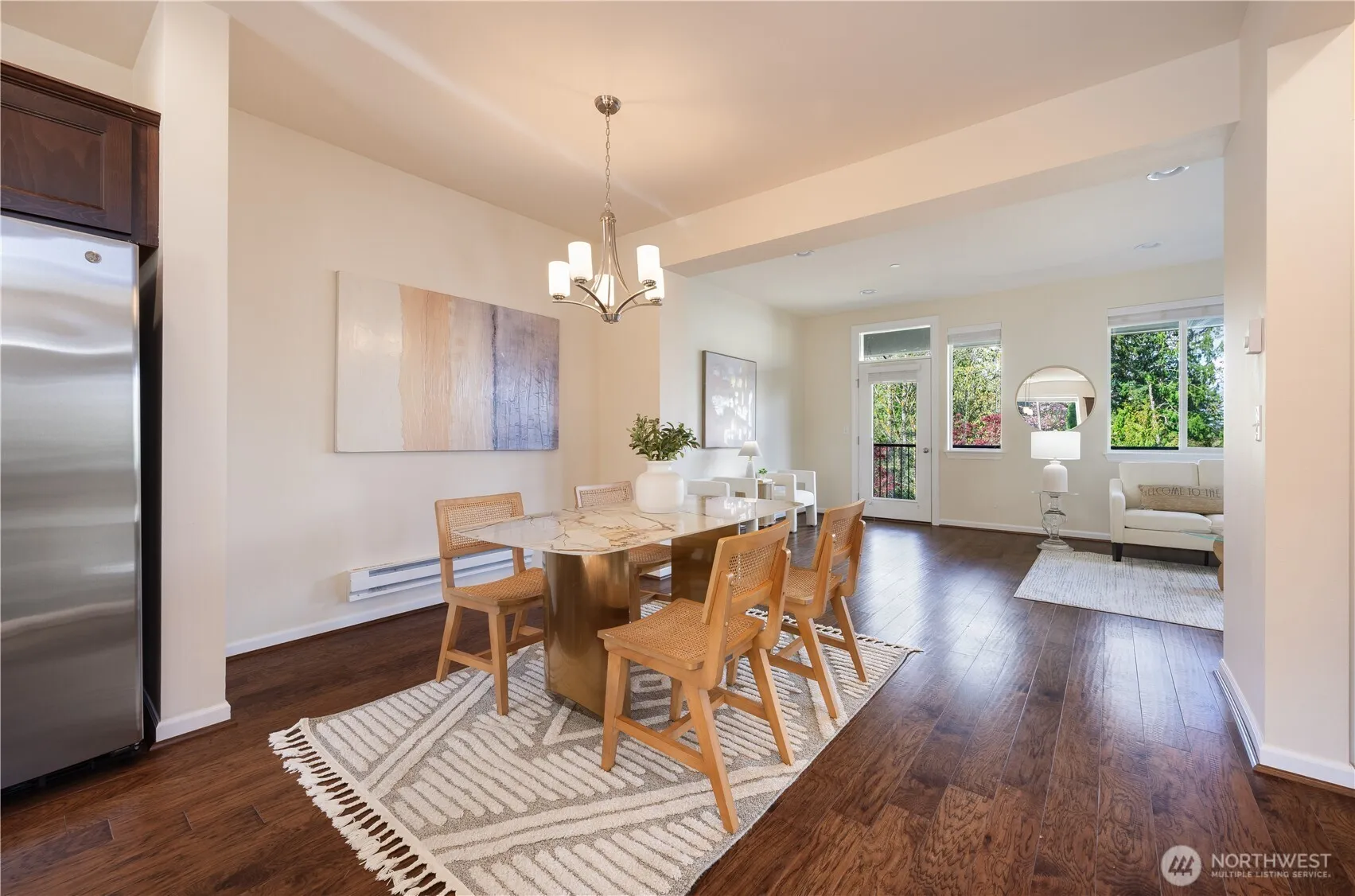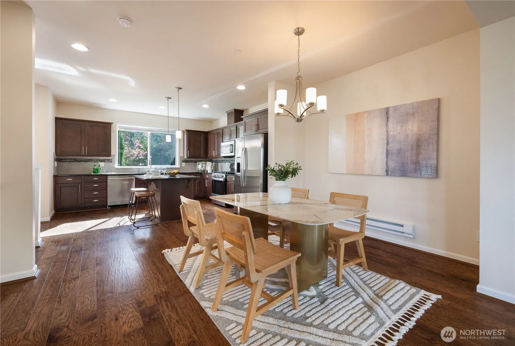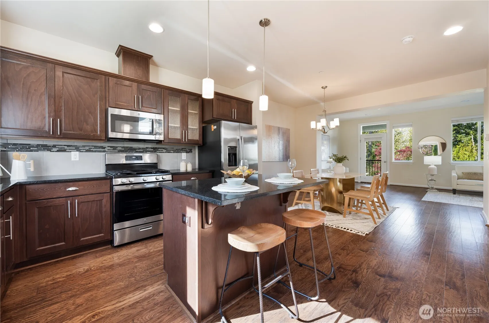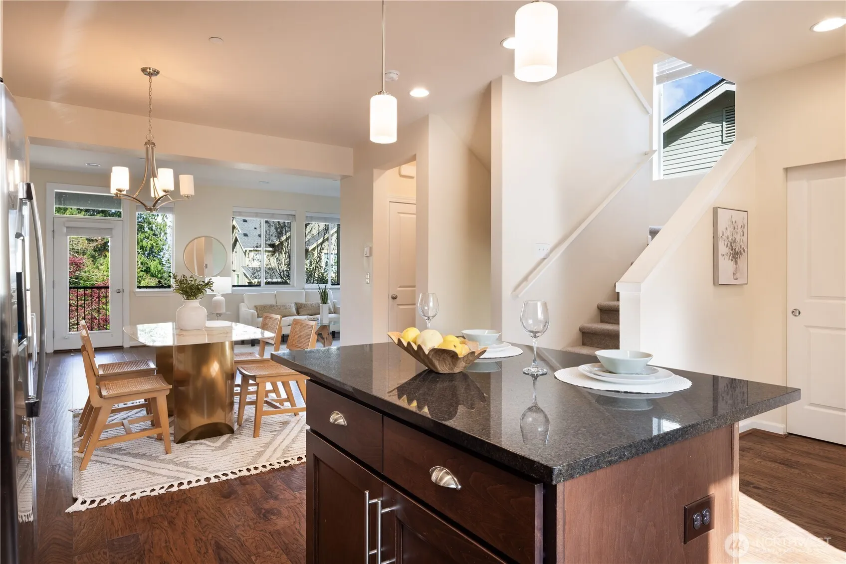 Don’t miss this rare opportunity in the heart of the sought-after Issaquah Highlands. This desirable end-unit townhome features a side-by-side two-car attached garage and is beautifully maintained with numerous upgrades throughout. Fresh interior paint, new carpet, new refrigerator, and new cooktop add to its move-in-ready appeal. Impressive modern finishes include wide-plank hardwood floors on the main. Chef’s kitchen showcases sleek surfaces, an upgraded backsplash, and elegant cabinetry with abundant storage. Open dining area flows seamlessly into the cozy living room with a gas fireplace, plus access to a private balcony—perfect for relaxing. Upstairs, the light-filled primary suite offers a spa-inspired bath and a walk-in closet. Two additional bedrooms and a full bath provide comfortable living space. A versatile bonus room downstairs adds flexibility for a home office, gym, or guest area. Ideally located near trailheads, parks, top-rated schools, dining, and shopping, with easy access to I-90. A true gem in a prime location.