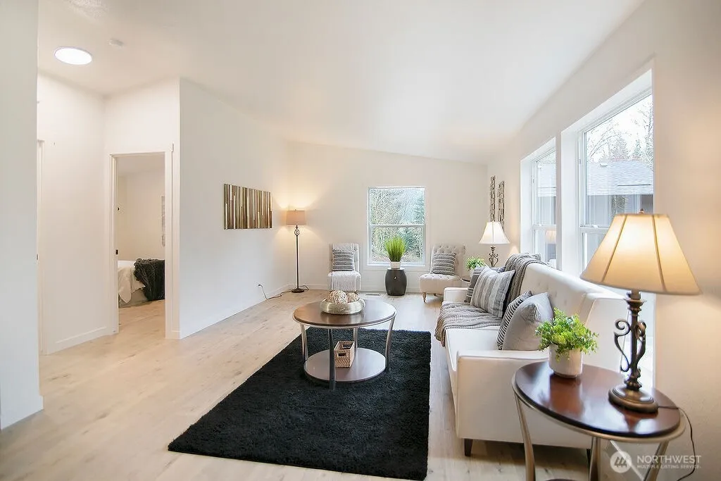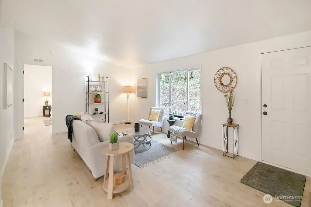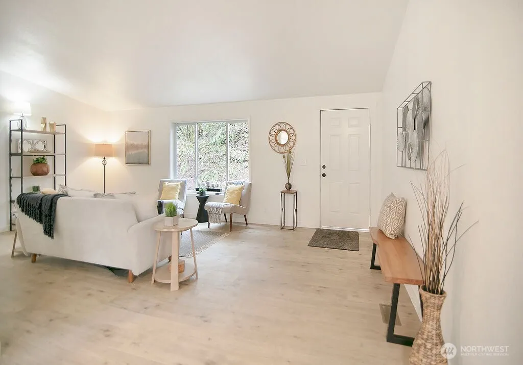 Kelso — UPDATED Home w/ Shop on 1.77 acres — 3 Bedroom / 2 Bathroom — 1836 Sqft — Living Room PLUS Family Room — Kitchen w/ Eating Bar — Quartz Countertops — New Stainless Steel Appliances / Range Oven, Microwave & Dishwasher — Pantry — Dining Area — Primary Bedroom w/ Full Bath & Walk-In Closet — NEW Laminate Flooring — NEW Fixtures Throughout — Forced Air Heat — NEW Interior & Exterior Paint — Newer Roof — Mud / Laundry Room — Shop w/ FINISHED BONUS SPACE Could be Office, Exercise Area, Storage, Craft Room, Game Room, or “Cave” — RV Parking — Deck — Private — 15 Minutes to Town — Less than an hour to PDX / 45 Minutes to Vancouver