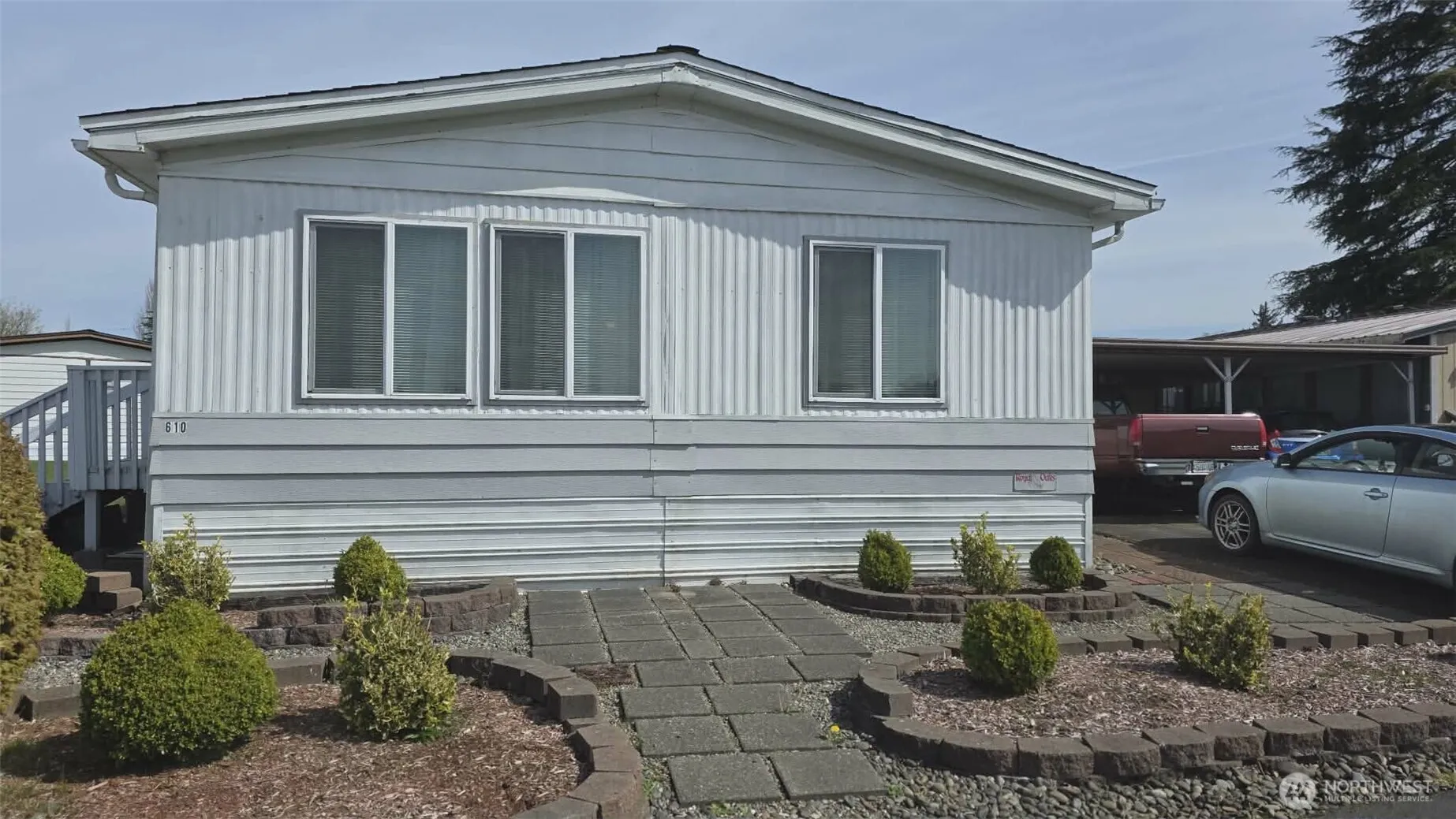 This 3 bed/1.75 bath double-wide manufactured home has been lovingly cared for. Home has a newer furnace which was installed in 2024. All flooring throughout the home is new and updated. House has a nice floorplan with a formal dining room. There is a shed for additional storage and a carport. Low-maintenance landscaping. Out of the flood plan. Located in an all ages park and close to bus line. Mobile home park has a community club house for larger gatherings.