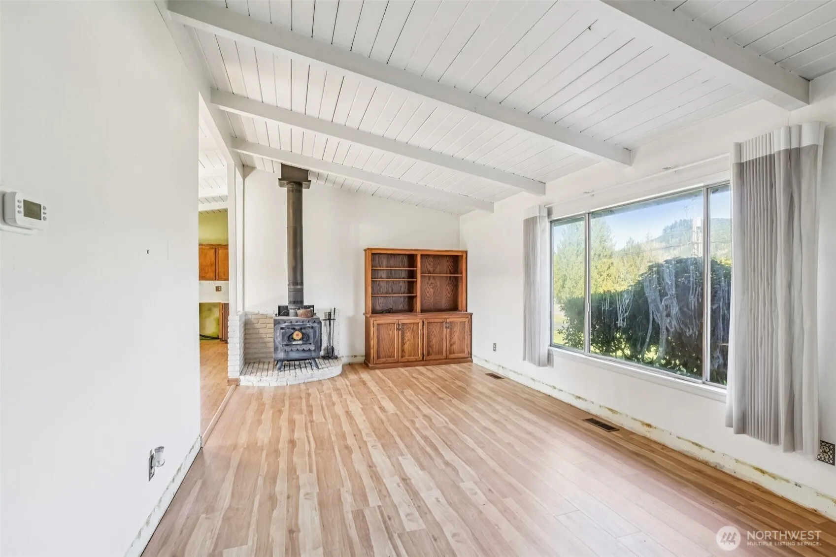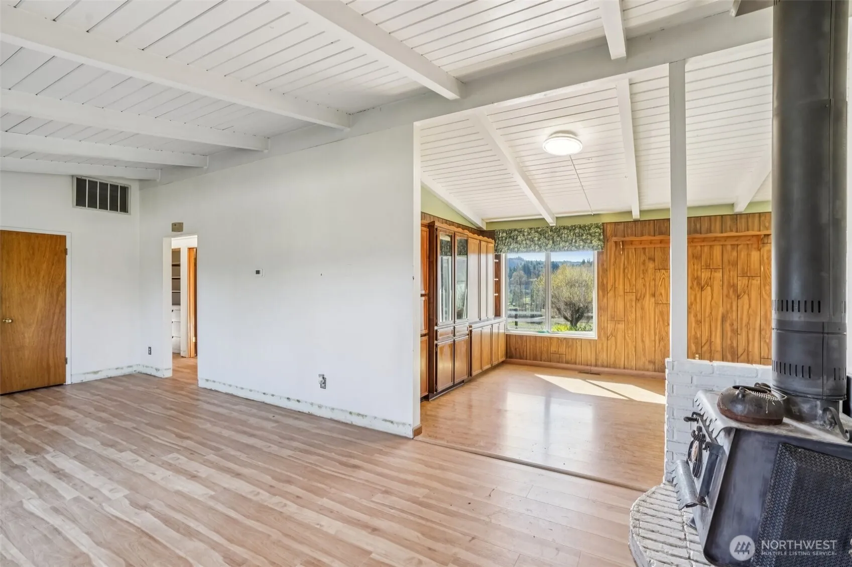 Discover a wonderful opportunity to own 1.25 acres of flat, usable land paired with a charming and spacious home. This versatile property features an oversized garage complete with a dedicated shop and ample storage areas, along with a barn ideal for additional parking or storage needs. The expansive driveway easily accommodates large RV parking. Surrounded by rolling hills and offering views of a nearby lake, the setting provides a peaceful and serene backdrop perfect for everyday living or relaxing retreats. Inside, the home showcases vaulted ceilings, custom built-ins and closet organizers that add both character and functionality. Thoughtful updates include newer laminate flooring, an updated water heater, a brand-new electrical panel, updated furnace and recently installed water well—providing added comfort and peace of mind.