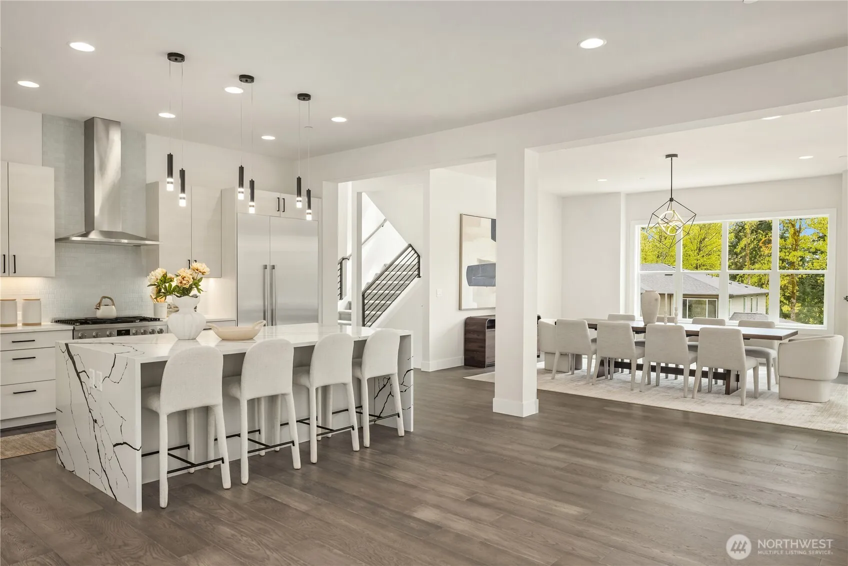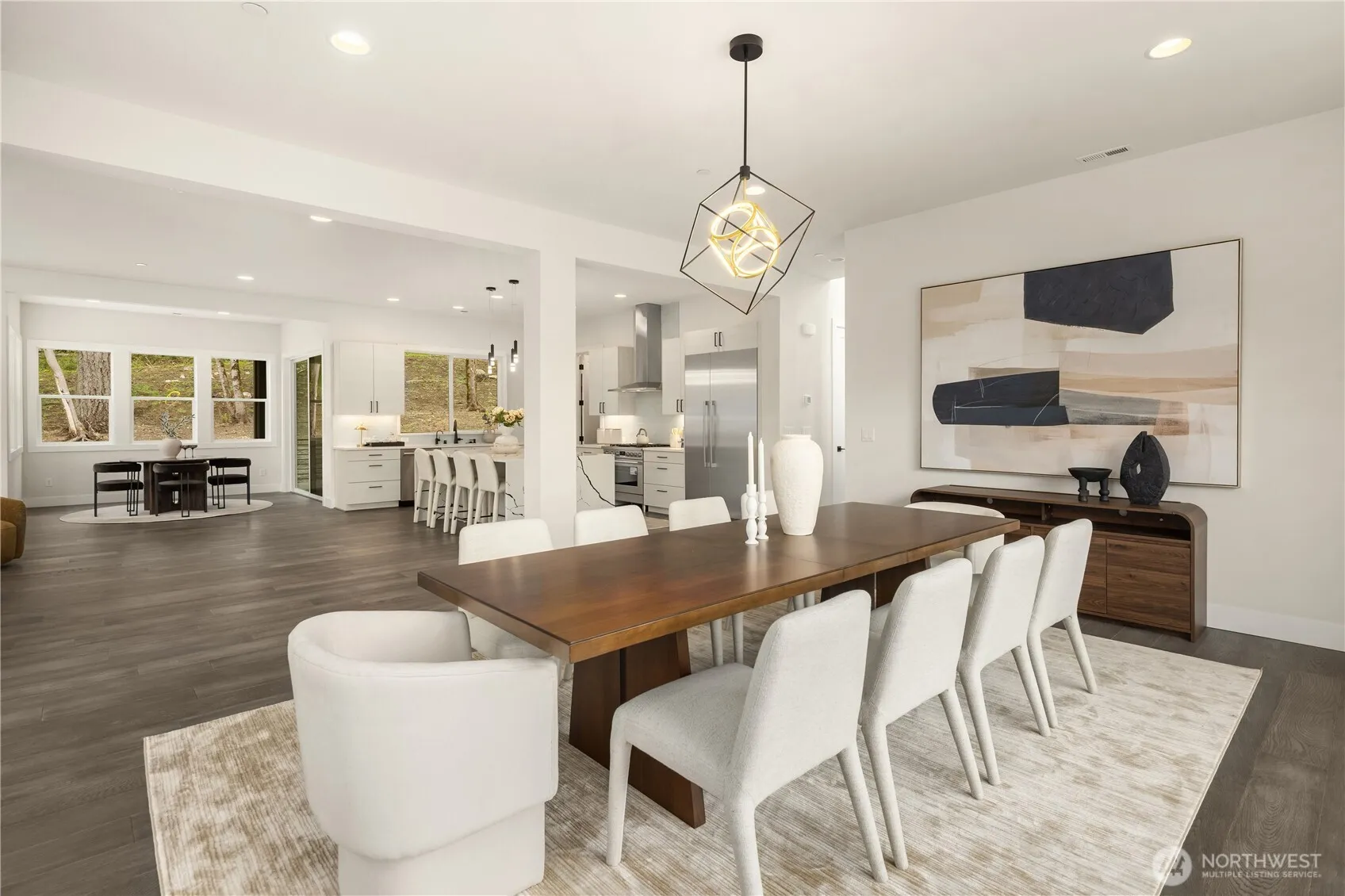 This is the crown jewel of Issaquah. Tucked down a private gated lane with just nine homes, this newly built 2024 custom residence is ready for its first owner. Designed with flexibility and multi-generational living in mind, the home offers a thoughtful layout with oversized spaces throughout. The main floor features soaring ceilings and an open-concept design filled with natural light. Expansive windows create a seamless connection between indoor/outdoor living. Enjoy year-round entertaining with two covered outdoor spaces, including a cozy outdoor living room with a gas fireplace—perfect for PNW evenings. The kitchen shines with crisp white cabinetry, quartz counters, and spacious walk-in pantry, blending style and function effortlessly. A main floor bedroom with a ¾ bath, styled as an office, adds versatility and could easily be used as a guest suite. Upstairs, a generous bonus room provides additional living space. The primary suite is a true retreat with vaulted ceilings, large windows, and a luxurious five-piece ensuite featuring a freestanding soaking tub. A spacious walk-in closet with custom organizers and a private patio complete this suite. Two additional bedrooms, a hall bath & a convenient laundry room complete the upper level. The lower level offers a full ADU, ideal for multi-generational living, guests, or teen space. The three-car garage meets all your parking and storage needs and is EV ready. Top-rated Issaquah schools and amenities are just moments away.