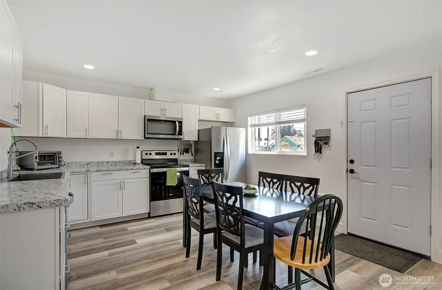 Charming 3 bed, 1 bath home offering 1,092 sqft of updated living space in the heart of Kelso. Interior features include LVP flooring, energy-efficient lighting, and a bright, modern feel with neutral white walls throughout. Functional layout with laundry room off the kitchen, including washer and dryer, plus space for pantry or additional storage. Home is equipped with central air for year-round comfort. Level, in-town lot with partially fenced front yard and driveway parking. Convenient location near shopping, services, and main routes. Low-maintenance property with modern updates—move-in ready.