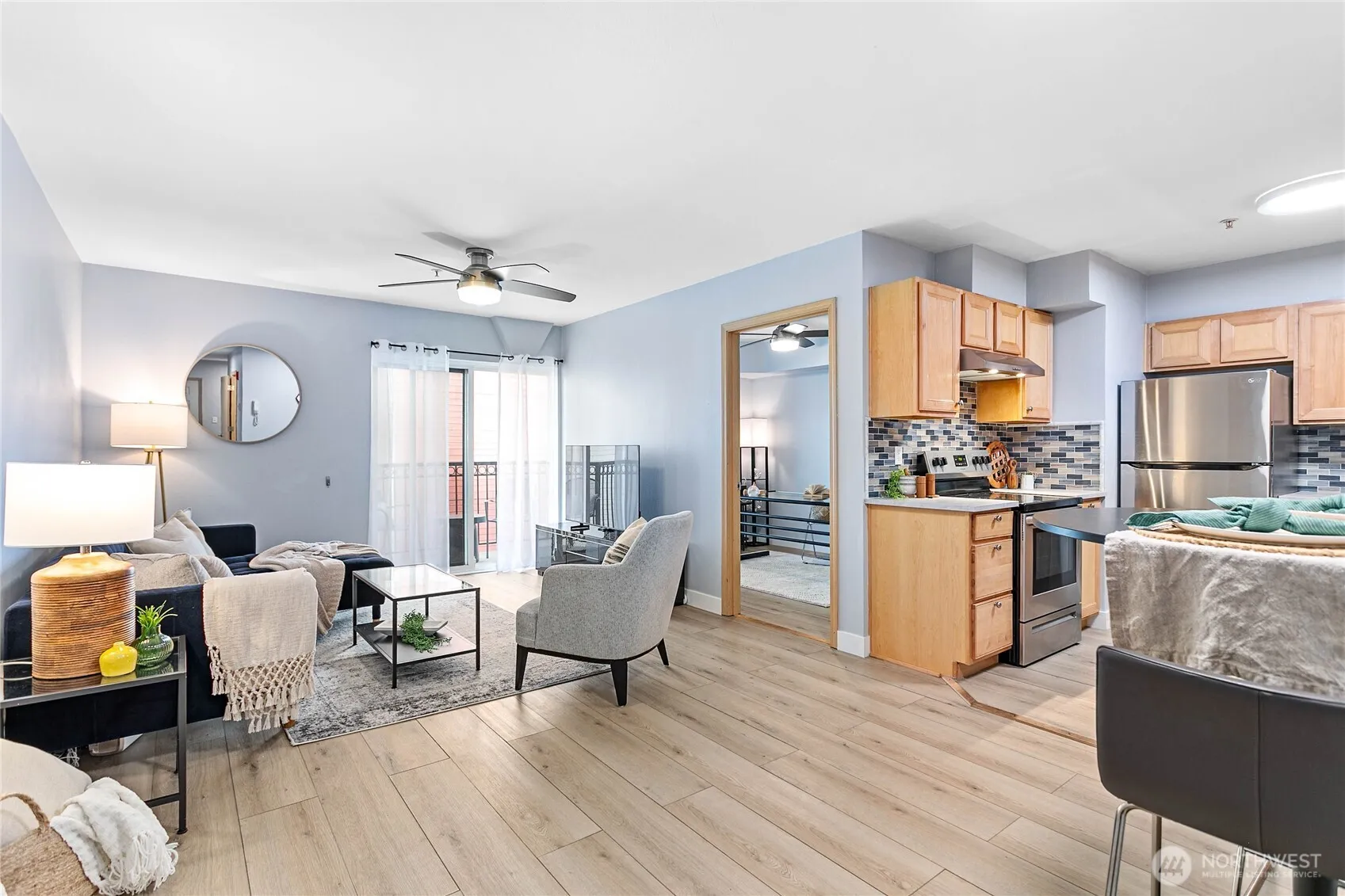 Great opportunity to own this updated move-in ready 2 bedroom condo located right in the heart of downtown Bellingham! Enjoy the convenience of walking to all the restaurants, shopping, & nightlife, plus just a short distance to WWU. The keystone building offers a secured entrance, large courtyard, elevator, & a gated underground parking garage where you get your own designated parking space. This renovated unit features new Luxury vinyl plank flooring throughout, plus newer interior paint. The spacious full bathroom has been tastefully updated with new vanity, sink, lighting, & flooring. The conventional floor plan features a good sized primary bedroom with 2 closets. The open kitchen has been updated and includes all stainless appliances, & new tile backsplash. There is a small dining area that is open to the living room. The 2nd bedroom would also make a very nice office. Stackable washer & dryer included in the condo. Step out on to the westerly facing deck and enjoy the nice little view of Bellingham Bay and the beautiful sunsets. This would also make a great investment property as there is no rental cap in this building and this unit already has a rental license. Easy living near all the amenities!