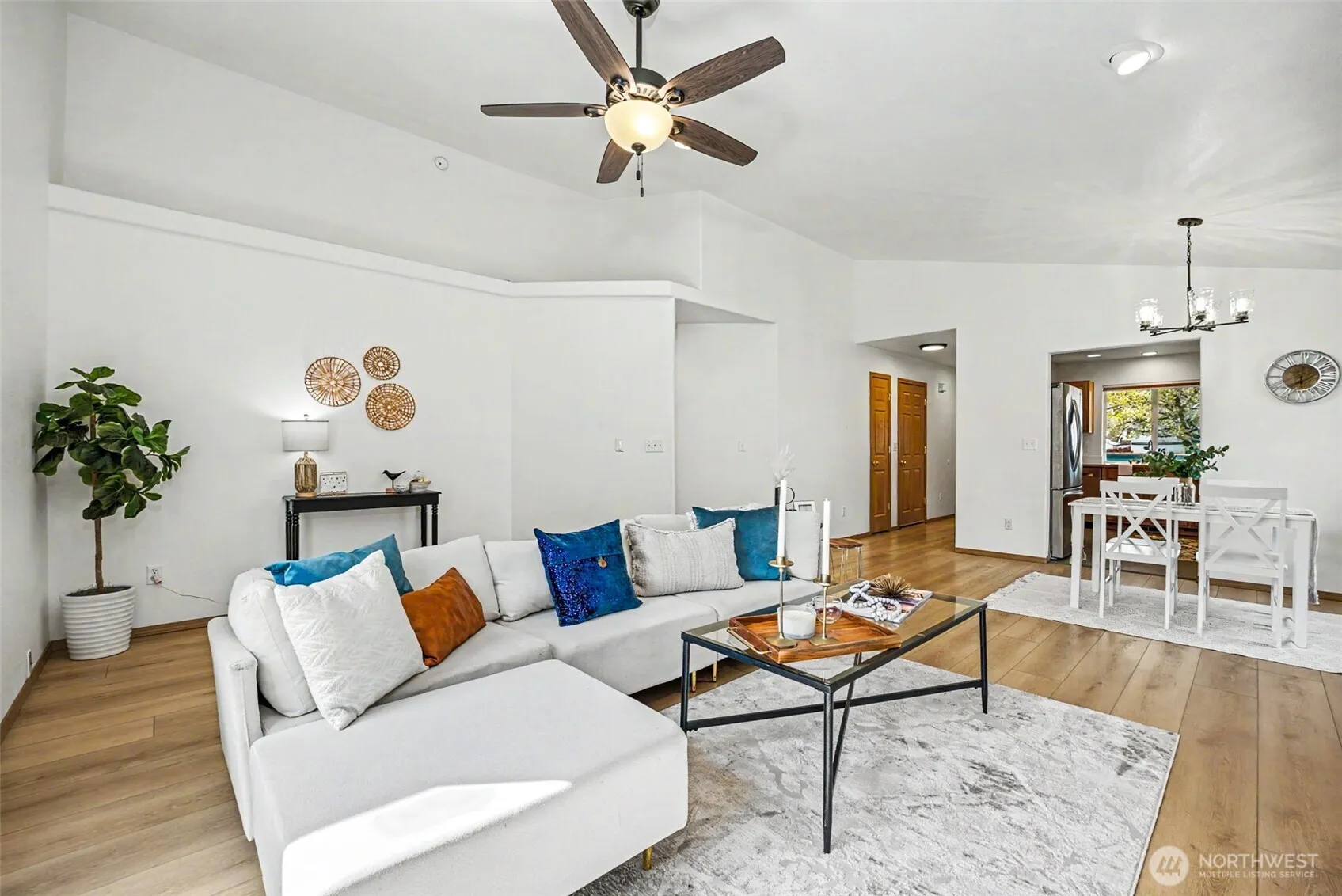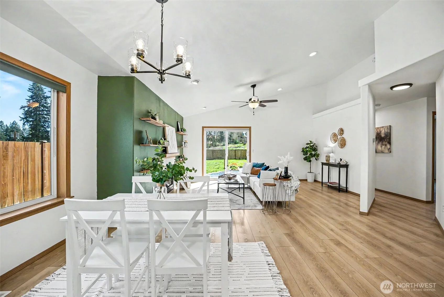 Well-maintained 3-bedroom, 2-bath rambler located in a desirable Yelm neighborhood with an easy commute to JBLM! This move-in ready home features a functional open-concept layout with vaulted ceilings and abundant natural light, creating a bright and welcoming space for everyday living. The kitchen offers newer appliances, ample cabinetry, and a practical layout that flows seamlessly into the dining and living areas, perfect for entertaining or relaxing at home. The living room provides a cozy atmosphere with a fireplace, while new carpet in the bedrooms adds a fresh, updated feel. The primary suite includes a private bath and generous walk-in closet space. Enjoy the benefits of a large, fully usable backyard with no neighbors behind, offering added privacy and a peaceful setting… an increasingly rare find in this price range! The yard is equipped with a WiFi-enabled sprinkler system for easy maintenance, making it ideal for busy lifestyles and master gardeners. Additional highlights include a 2-car garage with dual 240v/40amp circuits for EV and additional capabilities. Conveniently located near shopping, dining, schools, and outdoor recreation, this home offers the balance of quiet community living with quick access to major commuting routes!