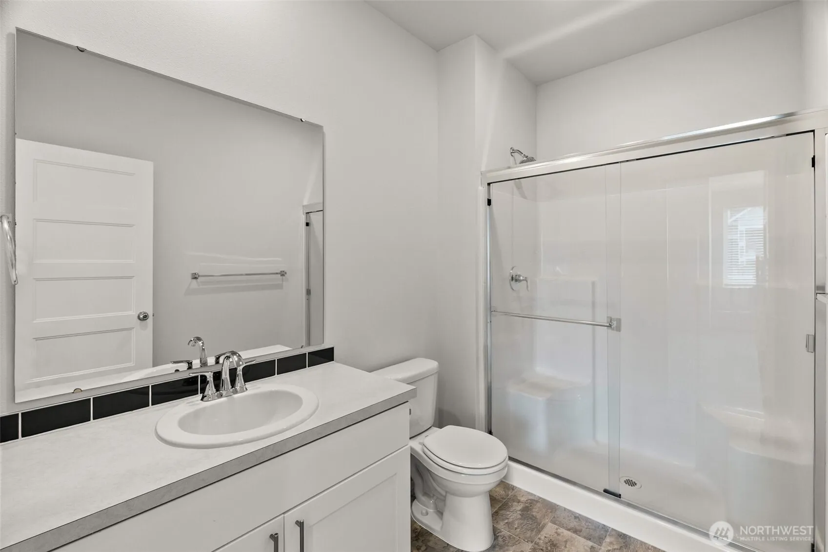 Welcome to your new home in Nisqually Place! Step inside to SoundBuilt’s Sterling plan. Built in 2024, this 5 bedroom 3 bathroom home has so much to offer! A beautifully designed gourmet kitchen featuring a large island and walk-in pantry. Kitchen includes quartz countertops with soft-close doors and drawers throughout. The main level boasts a HUGE guest suite with a 3/4 bath and walk-in closet, perfect for visitors or multigenerational living. Open stair railing creates an inviting and spacious entry. The upper floor features a quaint nook in the middle of the landing for extra space or a desk. The large primary suite includes a good size bathroom for added comfort and flexibility. 5th bedroom upstairs can also double as a bonus room room which can easily be transformed into a home theater, gym, or game room. Stay comfortable year-round with an efficient heat pump for cooling. Home includes stainless steel appliances, full fencing with side gate, new epoxy in the garage, and maintained landscaping. Luxury LVP flooring runs through entry, main hall, kitchen, and great room, adding style and durability. Schedule a tour today!