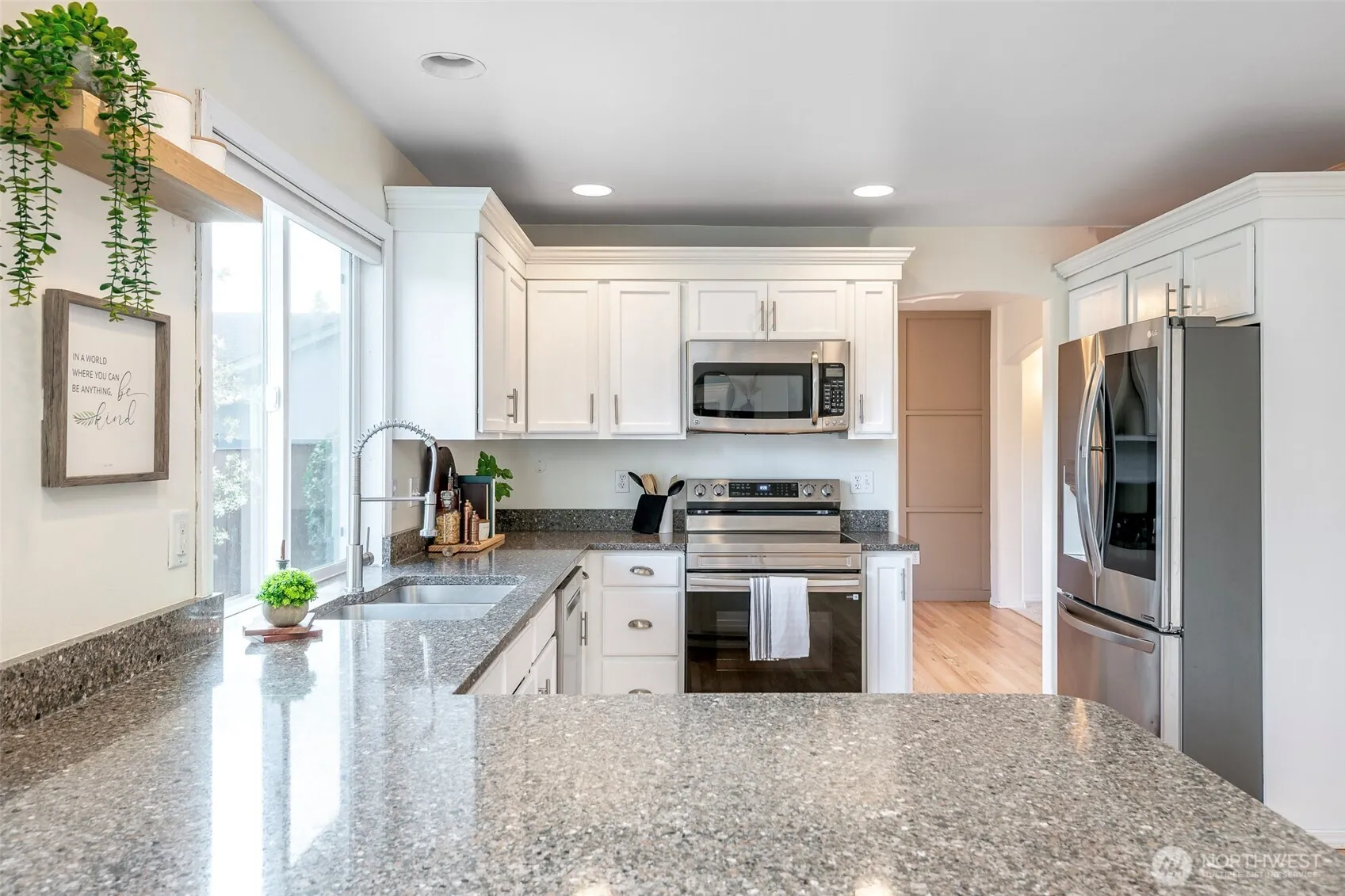 Beautifully maintained home in the desirable Huntington Greene neighborhood! A welcoming front porch sets the tone as you enter into a light-filled formal living room that flows seamlessly into the formal dining space, complete with a stylish accent wall. The beautifully updated kitchen features white painted cabinetry, granite countertops, stainless steel appliances, and abundant lighting and storage. Cozy up in the inviting living room with a fireplace and mantle, or step through the slider to enjoy the back patio. Upstairs, the spacious primary suite offers a relaxing bath and a large walk-in closet with built-ins, along with three additional guest bedrooms and a full guest bath. This home shines with freshly refinished hardwood floors, brand new carpet throughout, freshly painted interior, and updated bathrooms. The roof is only 6 years old for added peace of mind. Outside, enjoy a HUGE park-like fully fenced yard complete with a firepit and outbuilding—perfect for extra storage or a charming shed! Conveniently located just minutes from shopping, dining, and schools, with an easy ~30-minute commute to JBLM!