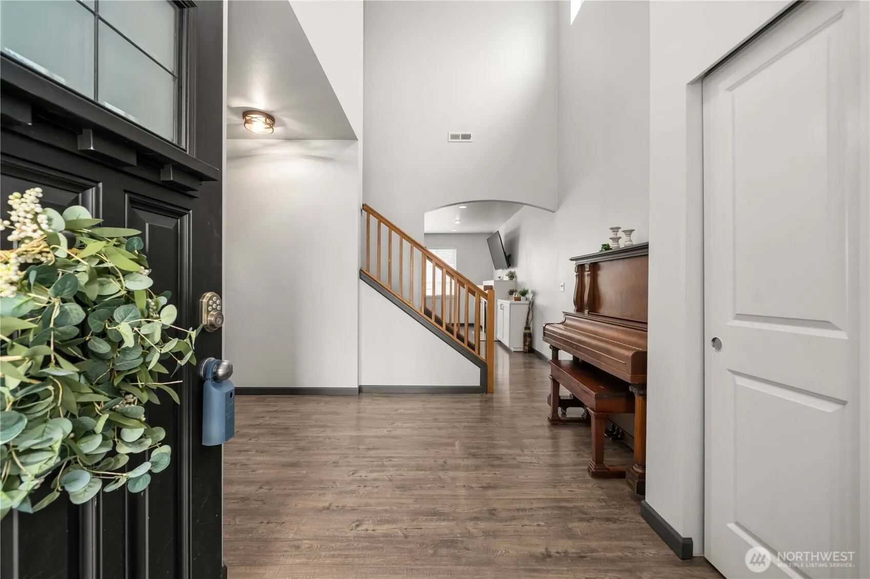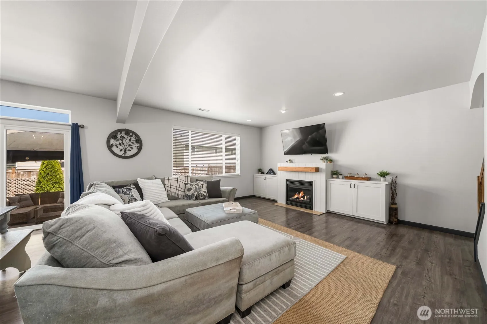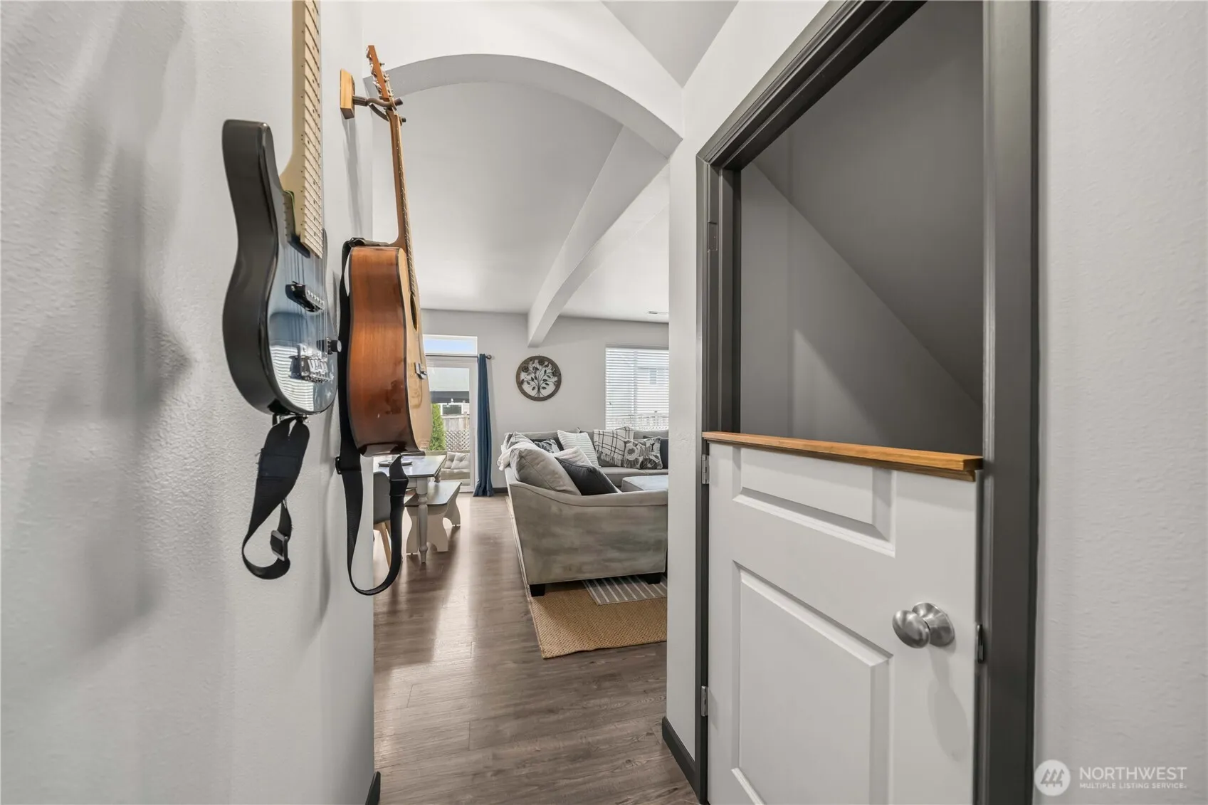 With over 2,400 square feet, this home is built around the kind of open, connected living space that makes everyday life feel effortless. The kitchen is the centerpiece — a large island, granite countertops, and an oversized walk-in pantry anchor the space, flowing naturally into the dining and living areas. Whether you’re hosting a crowd or enjoying a quiet evening in, the layout keeps everyone connected. A dedicated office just off the entry offers a quiet space for working from home or everyday flex use. Upstairs, four generously sized bedrooms provide plenty of room for the whole household. The primary suite features vaulted ceilings, a deep soaking tub, a large walk-in closet, and an en suite bathroom with dual sinks. A second full bathroom with dual sinks serves the remaining bedrooms with ease. Outside, a fully fenced backyard offers room to spread out — whether you’re entertaining guests, letting the pets roam, or simply enjoying the outdoors at the end of the day. Minutes from shopping, dining, and JBLM — this home brings together space, style, and location.