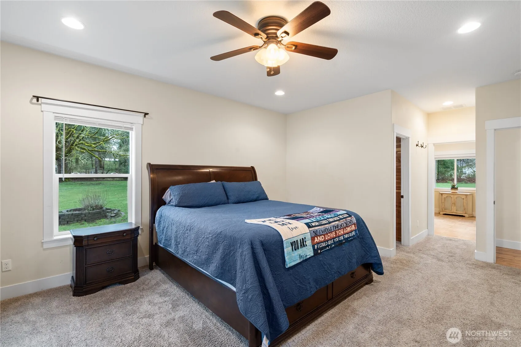 Discover the perfect blend of space, comfort, and versatility on this stunning 10-acre property, offering peaceful surroundings and exceptional living opportunities. Built in 2014 and meticulously maintained, the main home feels like new and features 4 bedrooms plus a large office/media room, 2 full bathrooms, and a spacious laundry room with storage. The primary suite is a true retreat with a soaking jetted tub, expansive tile shower, double vanities, tile flooring, and a custom walk-in closet. The open-concept design showcases soaring ceilings, skylights, LVP flooring, and a bright kitchen with granite countertops, under cabinet lighting, double ovens, and a spacious walk-in pantry. Step outside to enjoy the covered patio, charming gazebo with fire pit, frequent wildlife sightings and mature fruit trees! Home is also wired for portable generator! The property also includes a separate 1 bed, 1 bath 784sq ft ADU, with an attached 976sq ft oversized 2-car garage/shop, full kitchen, pantry, washer/dryer hookups, wired for portable generator, water heater, private covered patio, and fenced yard. Ideal for multi-generational living, guest quarters, private workspace, or potential rental income. This property offers flexibility rarely found. Storage container stays. The seller’s truly made this home a special opportunity to own a turnkey acreage property that offers both privacy, safety and possibilities.