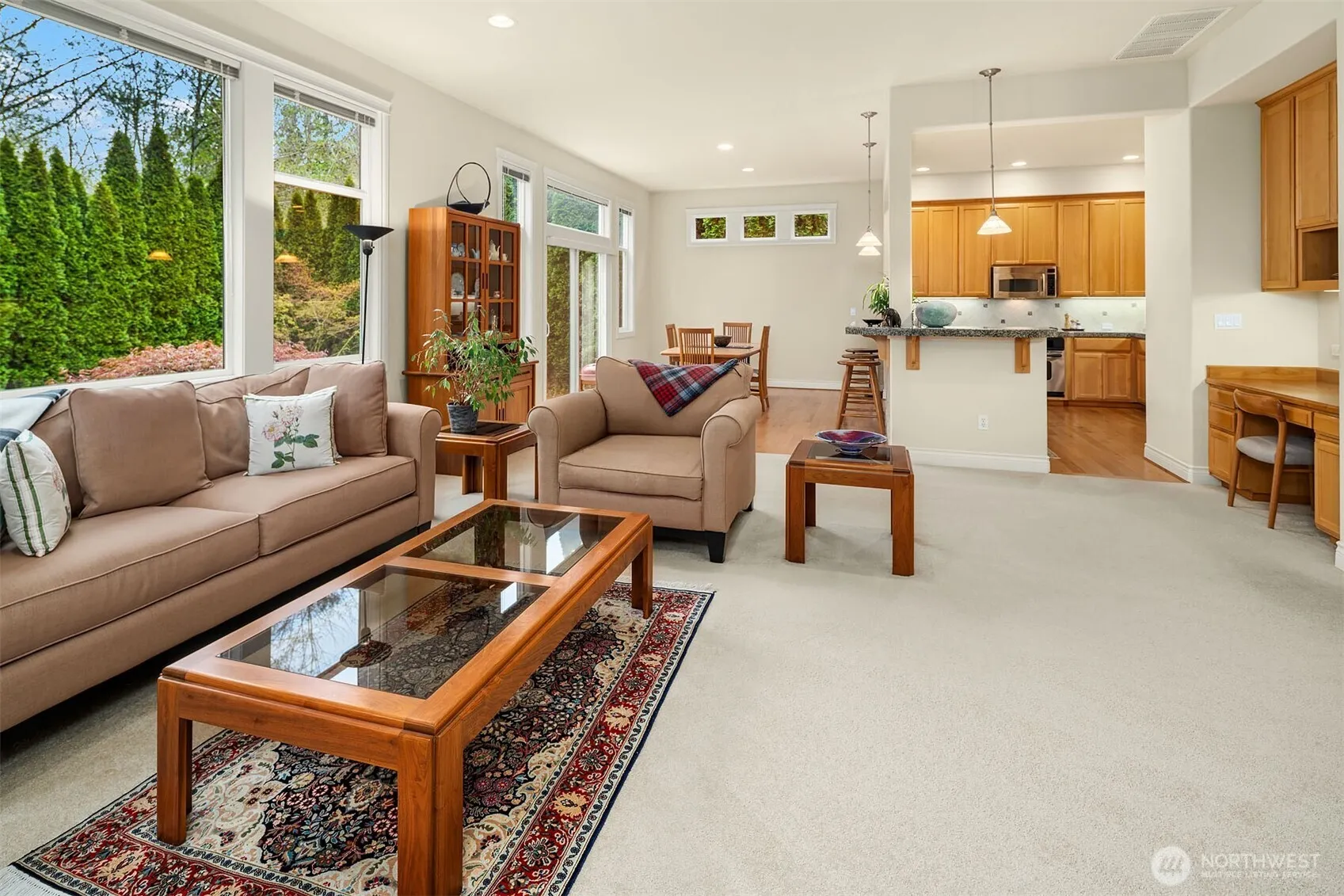 Welcome to Kensington in Education Hill, where timeless design, natural beauty & everyday convenience come together. Known for its schools, parks & miles of scenic trails, this neighborhood offers a lifestyle that is both connected & serene. Pride of ownership shines throughout this home, showcasing one of Burnstead’s most beloved plans, the Avignon. Featuring thoughtful design, livability & exceptional craftsmanship, this home is ideally situated on a peaceful greenbelt for privacy & tranquil views. A grand two-story foyer, rich hardwood flooring & main level office welcomes you. The refined interior showcases soaring 10-foot ceilings, elegant crown molding, wainscoting & expansive windows filling the home with natural light. This airy great room design creates a seamless flow ideal for both everyday living and entertaining. The spacious gourmet kitchen features a large island with eating bar, stainless steel appliances, and custom cabinetry. It opens effortlessly to the dining area & oversized great room, complete with built-ins, a cozy fireplace, and resource center. Retreat upstairs to the luxurious primary suite with double door entry & a spa-inspired bath. A versatile loft provides flexible space for a 2nd home office, media area, extra bedroom, or playroom. Minutes to Woodinville, downtown Redmond, and 15 minutes to the Kirkland waterfront. This is a rare opportunity to experience comfort, quality, and connection in one of Education Hill’s most desirable communities.