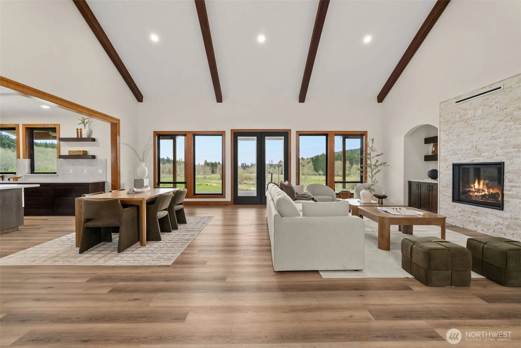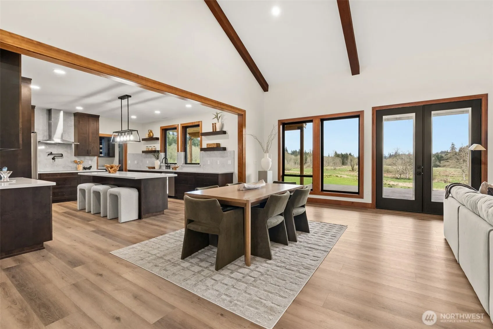 Discover the pinnacle of modern luxury and timeless PNW living. This breathtaking brand-new custom home delivers 3,219± sq. ft. of thoughtfully designed, light-filled living space on an expansive 37.8± acre private estate. Every room is framed by sweeping territorial views of rolling hills, lush meadows, verdant forests, & a serene creek that meanders gracefully through the property. Vaulted ceilings create a dramatic sense of openness, while the seamless open-concept design unites the great room, dining area, & chef-inspired kitchen—perfect for effortless entertaining and everyday life. High-end finishes, premium appliances, & custom cabinetry elevate every detail. Each bedroom is accompanied with an en suite bath. A spacious butler’s pantry adds both convenience and refined luxury for hosting gatherings large or small. Step outside to the oversized covered back deck, where you can unwind while soaking in panoramic sunsets, listening to the gentle sounds of nature, & watching the landscape change with the seasons. Property features a full RV hookup complete with plumbing, electrical, & water services, offering unmatched versatility for guests, & hobbies. Wildlife is abundant, including a herd of elk that regularly crosses the meadows, creating a truly immersive, peaceful retreat just minutes from West Olympia. Whether seeking a luxurious primary residence, or a legacy property with room to grow, this estate offers modern elegance, unmatched privacy, & endless potential.
