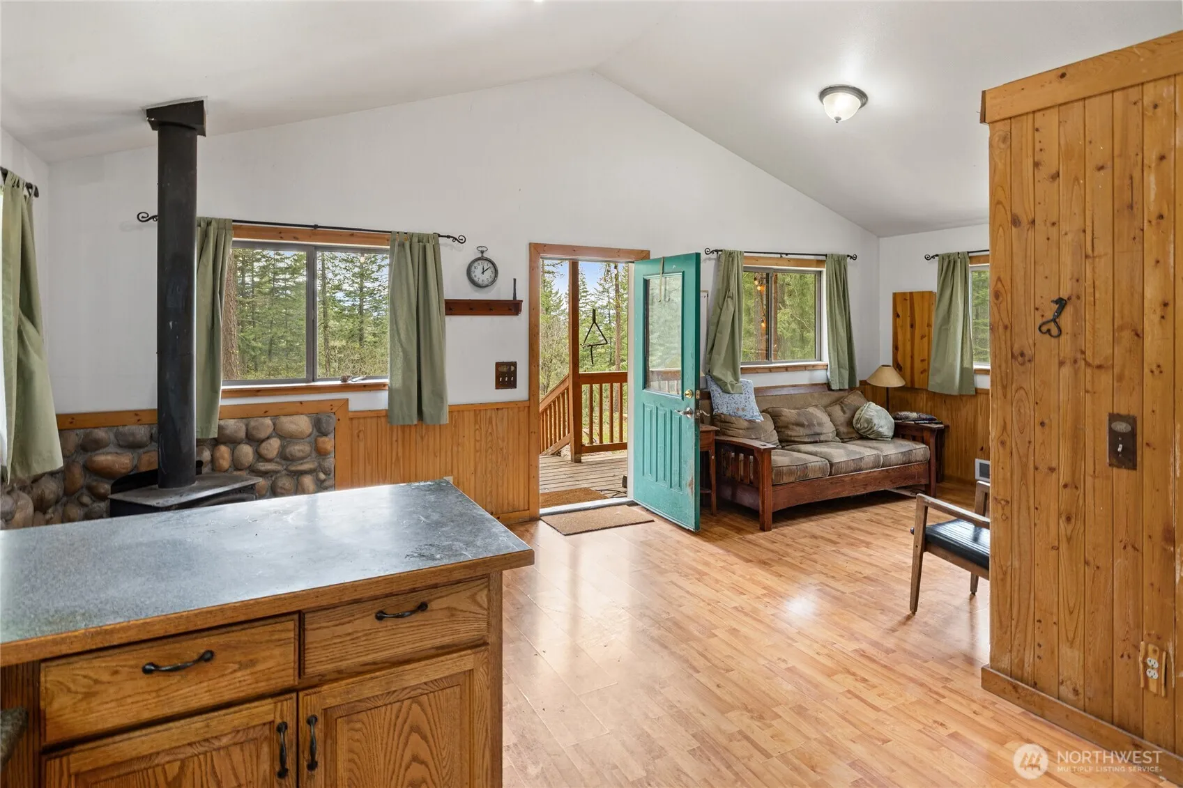 Tucked deep in the trees, this modern cabin feels like your own private hideaway in the woods. Set on 10 peaceful acres, it’s the kind of place where mornings start with coffee on the porch and evenings end by the glow of a wood stove.Inside, vaulted ceilings make the space feel open and airy, while the 2-bedroom layout keeps things simple and cozy. Step outside and explore your own hiking trails, relax in the outdoor sauna, or put the extra outbuilding to work for gear, projects, or creative space.Whether you’re dreaming of a weekend escape, a high-potential vacation rental, or a long-term mountain retreat, with a little TLC this spot checks all the boxes.