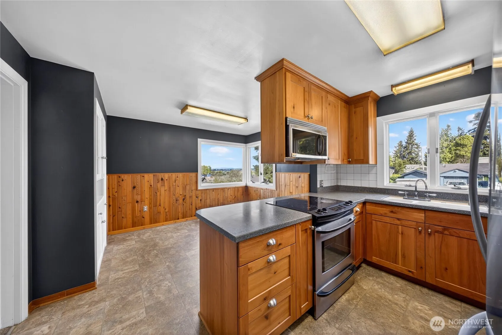 Lovingly maintained and brimming with character, this charming 3+ bedroom home is nestled in a desirable hilltop location. Offering 2,266 square feet of versatile living space, it was built in 1948 and thoughtfully blends timeless appeal with modern updates. Inside, you’ll find an abundance of natural light streaming through large windows and beautiful hardwood floors waiting to be revealed beneath the carpeting. The updated kitchen combines style and practicality and perfect place to enjoy your coffee in the morning. The main level features two bedrooms, a full bathroom, and a hallway with generous built-in storage. Upstairs, you’ll find an additional bedroom and a spacious bonus room, ideal for a home office, playroom, or guest suite with views of the Skagit River and the valley below. Extensive attic storage provides even more convenience. The basement further expands your options with another flexible bonus room (easily convertible to a bedroom with the addition of a closet), a dedicated workshop complete with workbench, plenty of storage, and a handy laundry chute. Outdoors, relax on the covered back deck, enjoy alley access, and take advantage of the large cement parking pad. A detached outbuilding offers extra space, and there’s plenty of room for a garden. The attached tandem garage provides 1+ car parking. Conveniently located with easy access to downtown Mount Vernon, I-5, schools, and amenities, this home is ready for its next chapter.