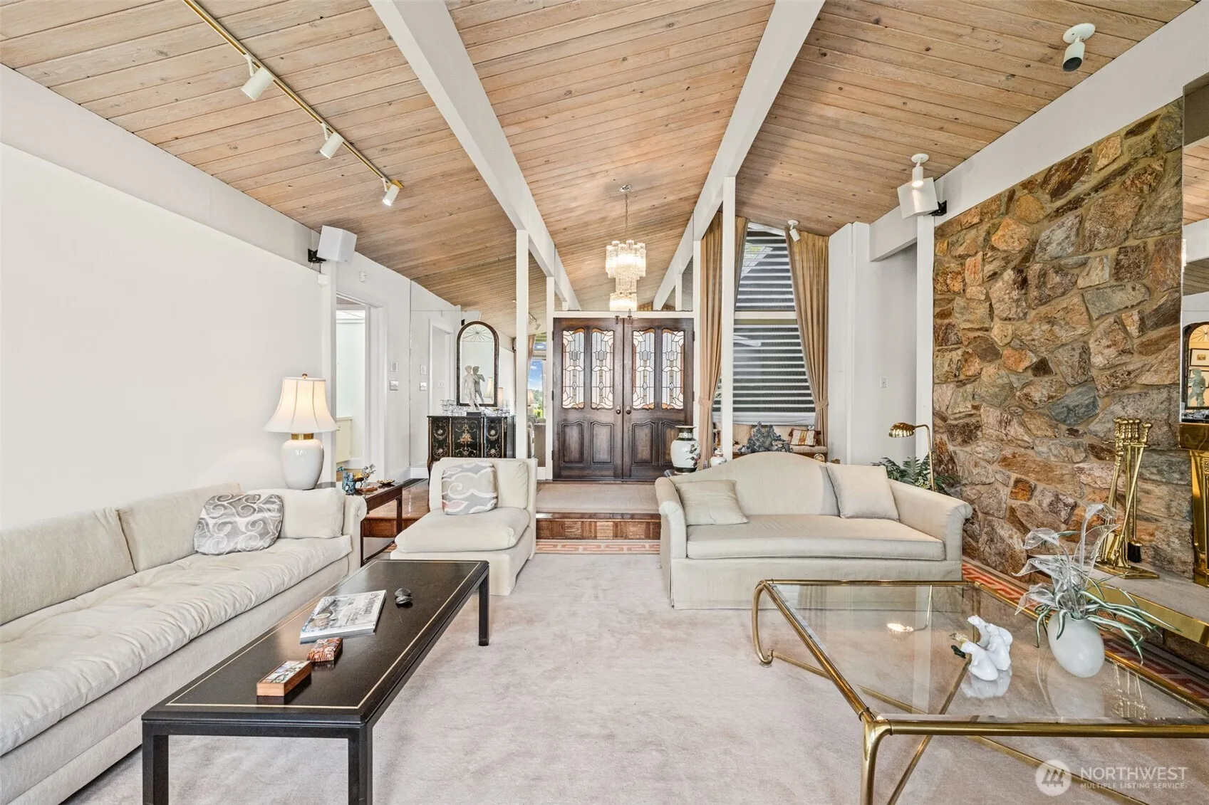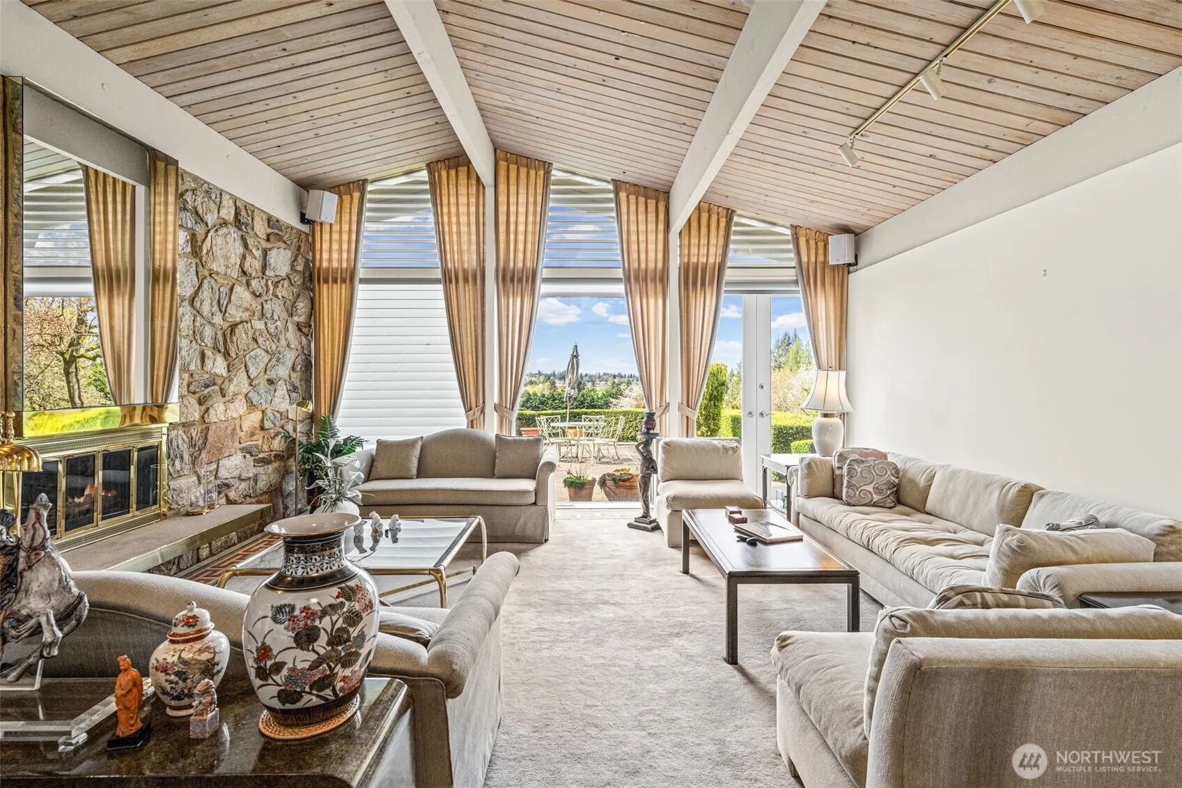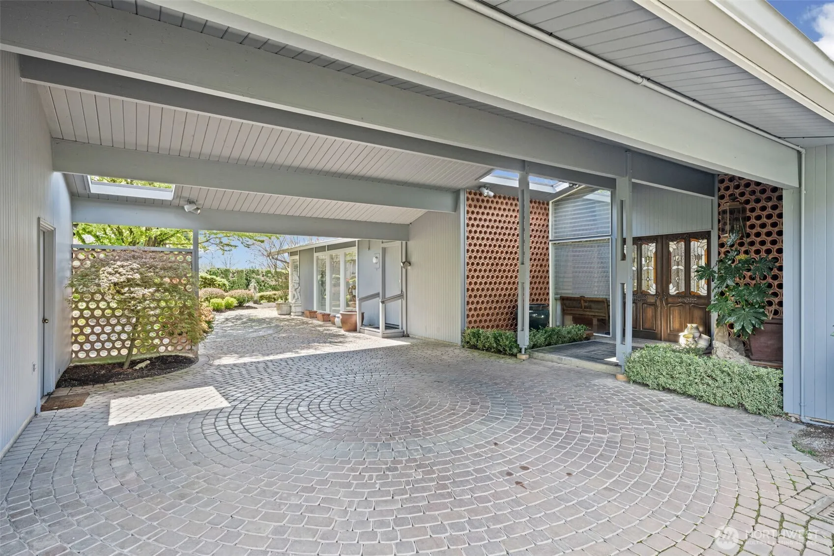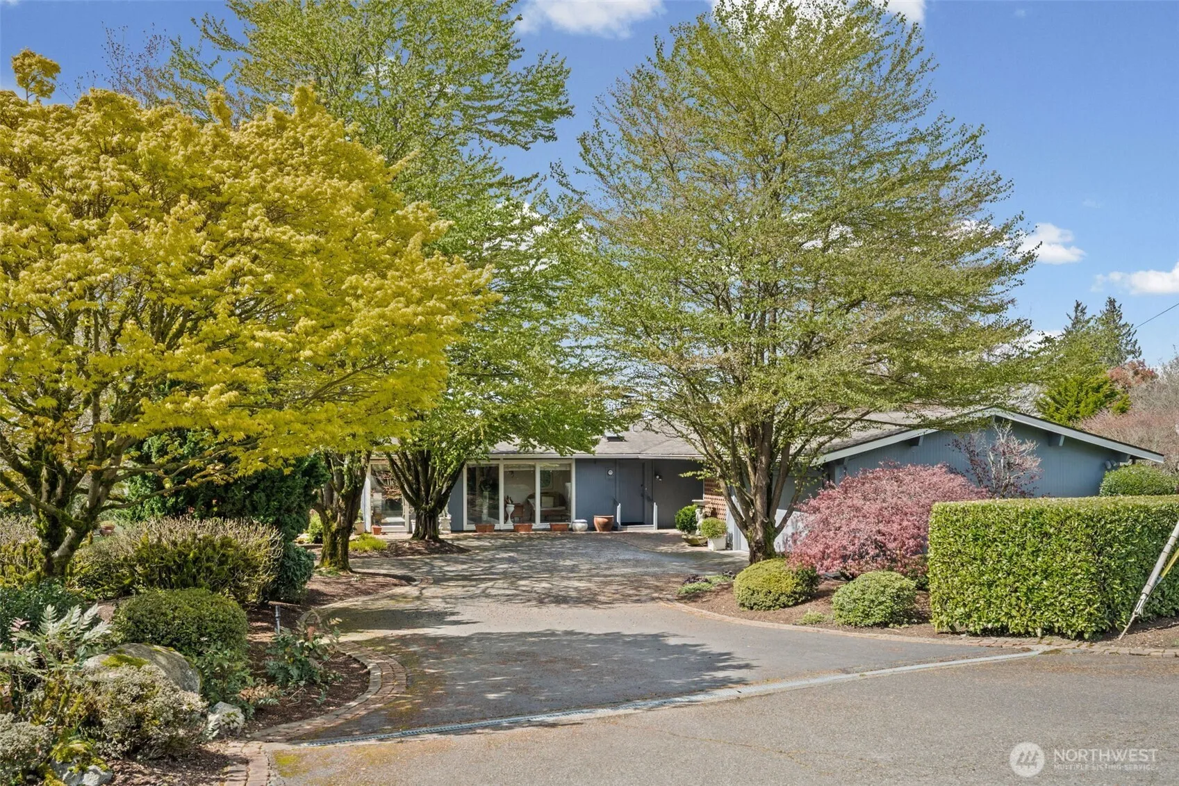 Tucked away on a private dead-end road among other high-end homes, this exceptional 1.86-acre estate offers timeless mid-century modern design and stunning sunset views. Custom built in 1961 and lovingly maintained by its original owners, this one-level home spans 2,410 sq ft with 3 bedrooms and 2 baths. The expansive, open kitchen flows seamlessly into a large dining room—perfect for hosting unforgettable gatherings. Walls of windows fill the home with natural light and frame picturesque views of the beautifully manicured grounds and mature landscaping. Multiple patios create ideal spaces for outdoor dining, entertaining, or simply enjoying the peaceful setting. The spacious primary suite features a private patio and en suite bath, offering a tranquil retreat. A circular driveway enhances both convenience and curb appeal, while the setting provides a rare sense of privacy just minutes from town. A truly special opportunity—Showings available by appointment.