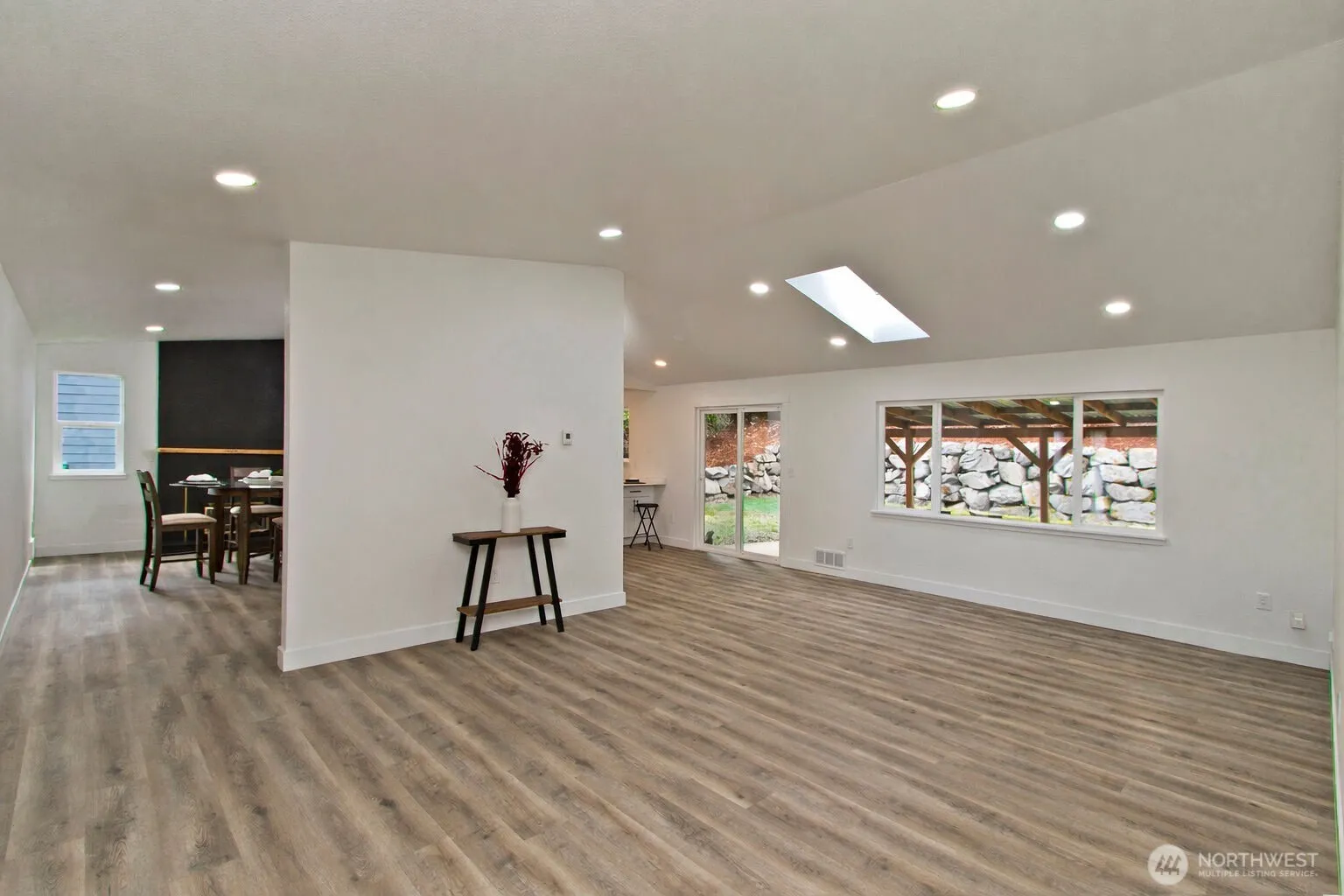 Beautifully updated 3 bed, 2 bath rambler on a quiet cul-de-sac in desirable West Hill location. Enter the home and fall in love with the open floor plan featuring vaulted ceilings, skylight, and designer finishes throughout. Spacious living area flows seamlessly into the dining and kitchen areas creating a great layout for everyday living and entertaining. Brand-new kitchen features quartz countertops, stainless steel appliances, drop-in range, breakfast bar seating, and modern cabinetry. Dining area is highlighted by a fireplace insert with new tile surround. Additional pantry-style cabinetry with lower counter space provides great storage and a perfect coffee bar or serving area. Spacious primary bedroom with private fully remodeled ensuite featuring quartz double vanity, designer lighted mirror with adjustable settings, tile flooring, and large custom tiled walk-in shower with dual shower heads and built-in niche. Two additional bedrooms and an updated full bath with tiled shower surround and tile flooring complete the bedroom wing. Additional updates include new flooring throughout, millwork, doors, interior paint, and fixtures. Spacious backyard perfect for entertaining guests featuring a large covered patio, lawn area, and terraced upper yard with paver patio space ideal for a fire pit or outdoor seating, plus storage shed. 2-car attached garage and ample parking. Prime location with easy access to Hwy 167, I-5, light rail, and everyday amenities.