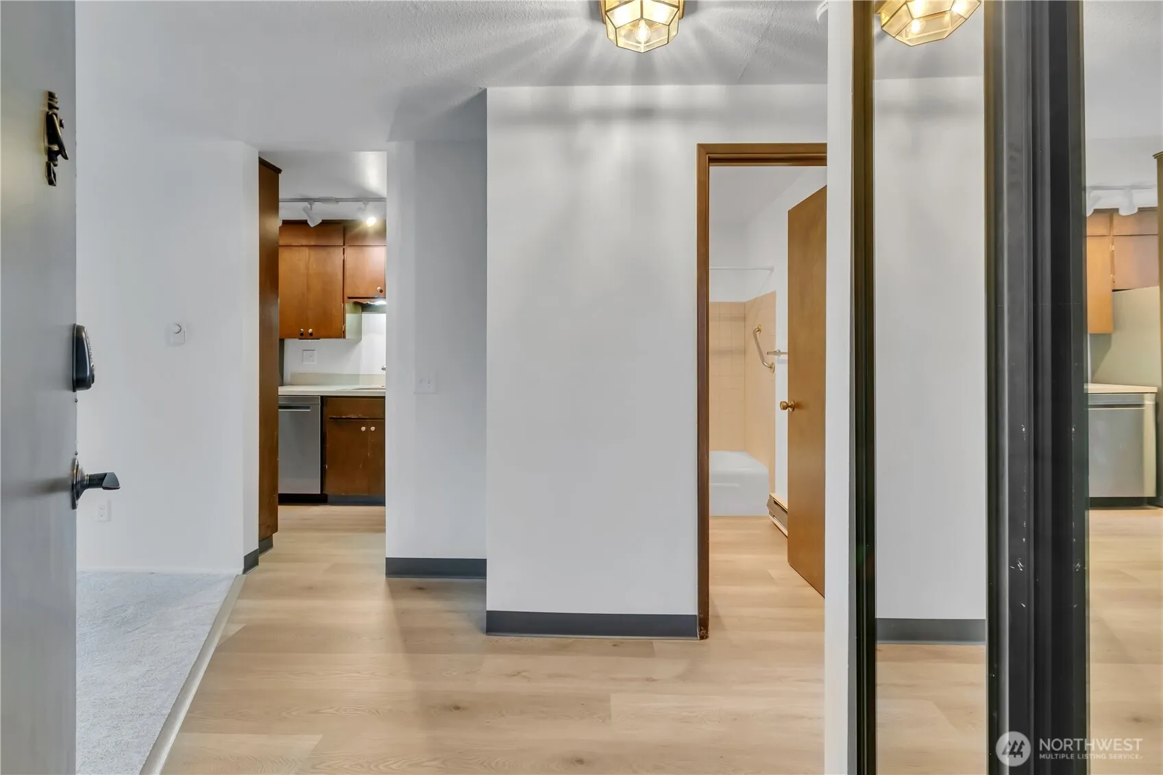 Well-priced Colony Square condo in a convenient Tukwila location! Situated in a gated community, this top-floor 1-bedroom, 1-bath, single-level unit offers a spacious living area with a cozy freestanding wood stove. Recently refreshed with brand new interior paint and updated flooring, including neutral carpet and stylish luxury vinyl plank, this home is truly move-in ready. The kitchen features ample cabinetry and brand new stainless steel appliances, providing both functionality and a modern touch.The generous bedroom includes a wall-to-wall closet and ceiling fan, while the top-floor setting allows for natural light and an open, airy feel throughout. Enjoy a private deck off the dining area with a convenient 4×4 storage closet. Assigned parking is located close to the stairs for easy access.The community offers on-site laundry and maintained common areas. With strong rental potential and possible DSCR financing, this is an excellent opportunity for both homeowners and investors.
