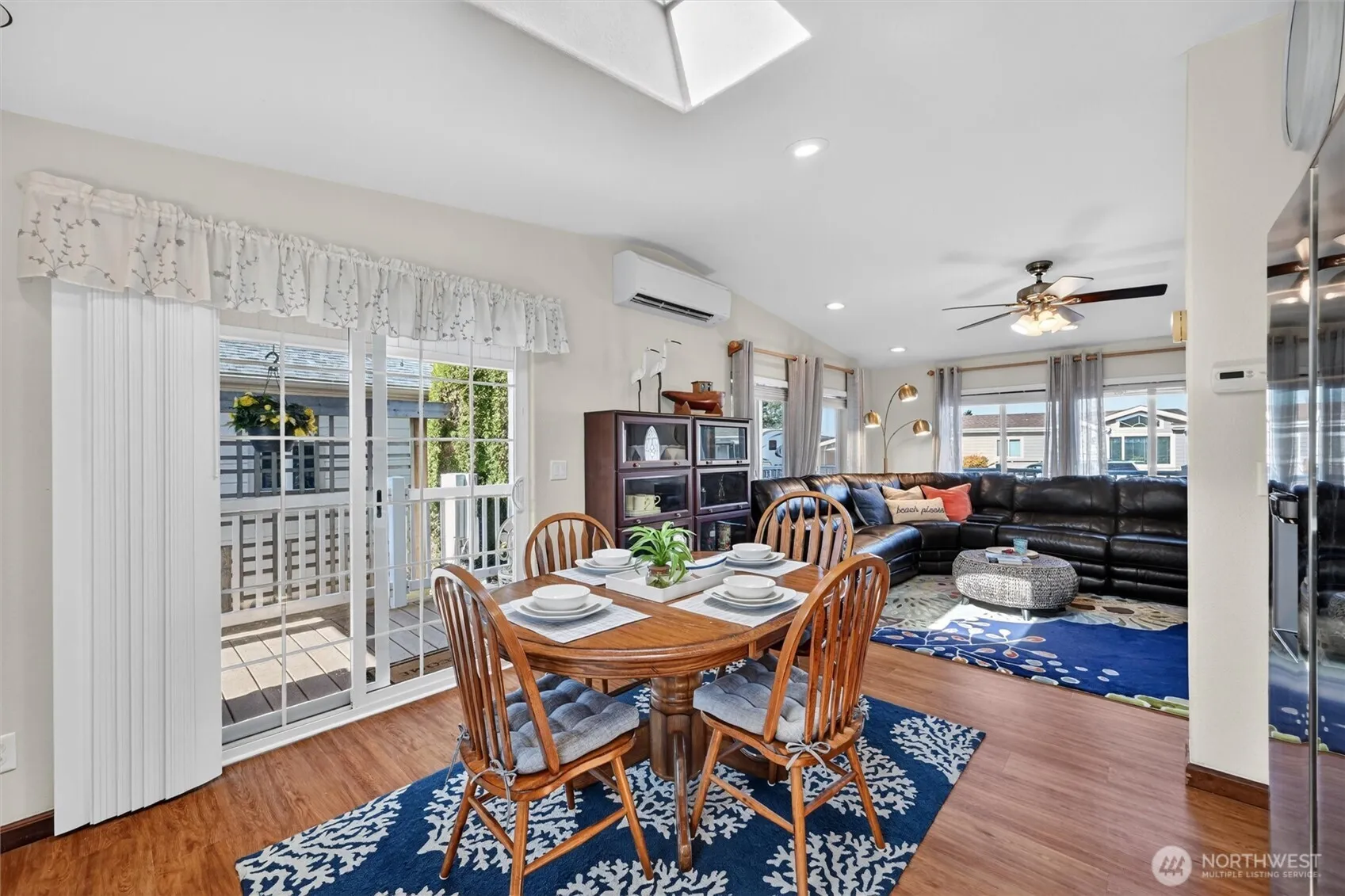 Welcome to Latitude 49, a rare opportunity to own a double lot in one of Birch Bay’s most sought-after gated communities. This unique property offers exceptional space and functionality, featuring 3 covered parking spaces, a large storage area, low-maintenance yard with fire pit, dedicated RV hookup, and room for all your coastal and recreational needs. Inside, the thoughtfully updated 2-bedroom, 1-bath home is move-in ready and fully furnished. Recent improvements include new flooring in the kitchen, living room, and dining area, along with a freshened kitchen and updated appliances. A washer and dryer are conveniently located in the unit. The secondary bedroom features a custom Murphy bed and built in office space, adding flexibility for guests or work-from-home needs. Step outside to enjoy the partially covered Trex deck, perfect for relaxing or entertaining year-round. The property also includes an outdoor pet run. Latitude 49 offers an impressive lineup of amenities including a gated entrance, clubhouse, swimming pool, hot tub, playgrounds, and pickleball/tennis courts. Dues include water, sewer, garbage, and common area maintenance, creating a low-maintenance lifestyle. Located just minutes from Birch Bay Beach, this is an ideal full-time residence, vacation getaway, or investment opportunity. 365-day occupancy, eligible for rental.