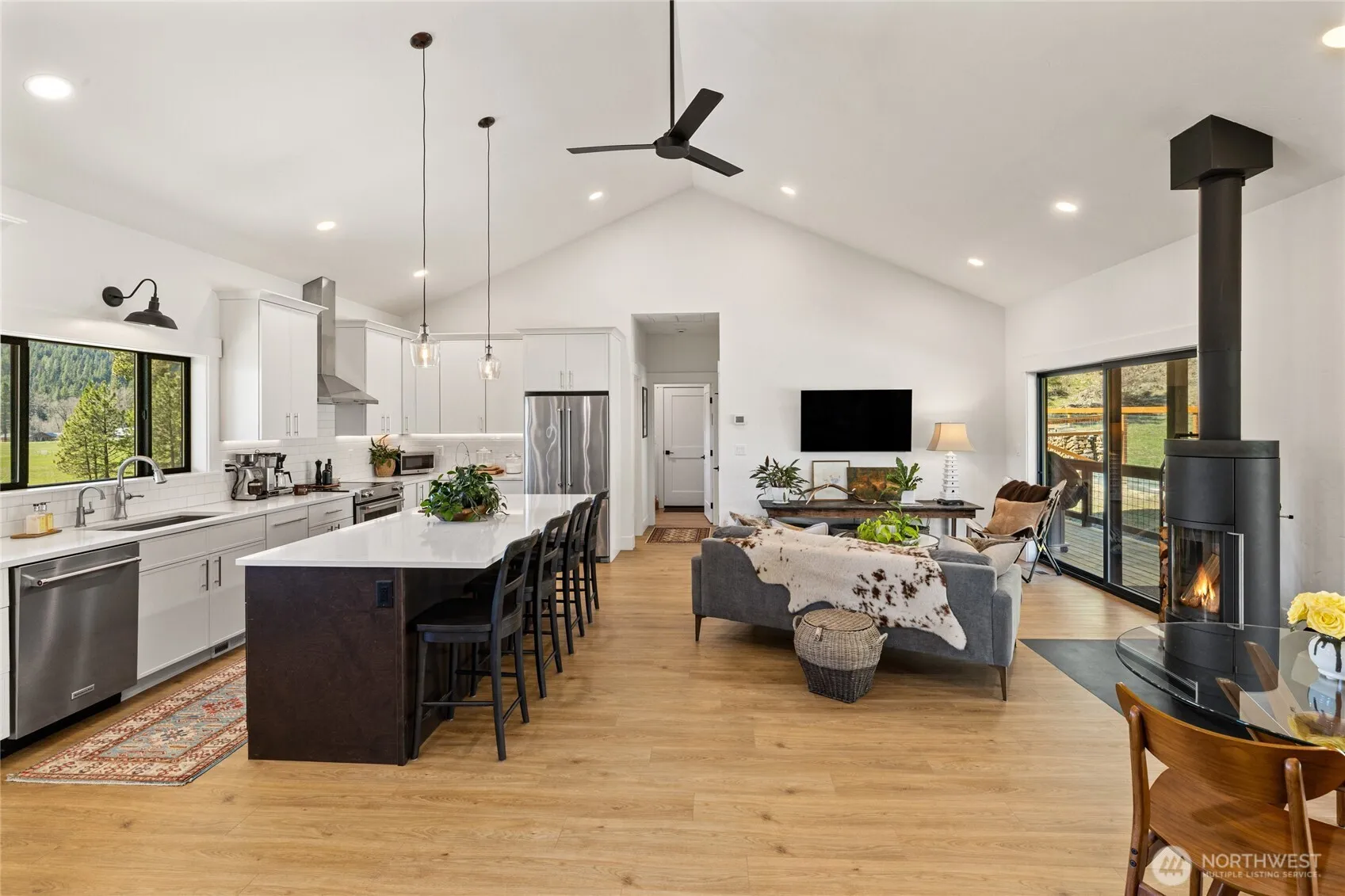 Incredible opportunity to own a beautifully designed home and a proven, thriving business in the enchanting and highly sought-after Teanaway Valley. Built in 2023, this custom 2-bed 2-bath residence seamlessly blends modern design and functionality. Inside, soaring vaulted ceilings, hand-textured walls, quartz countertops, and luxury vinyl plank flooring create a refined yet comfortable aesthetic. The open-concept living space is anchored by a Hearthstone wood-burning stove, offering both warmth and timeless style. The kitchen is thoughtfully designed for both daily living and entertaining, featuring a generous island and full suite of KitchenAid Pro stainless appliances. A dedicated home office with custom built-in desk and shelving provides an ideal work-from-home setup. Step outside to fully covered front and back porches, perfect for year-round enjoyment where you can take in sweeping views of the surrounding mountains and pine forest. Energy efficiency and resilience are built in, with rooftop solar panels and generator-ready wiring to ensure reliable, cost-effective power. Included in the offering is The Teanaway Country Store, a well-established and beloved destination known for its curated selection and strong local following. Ideally positioned to serve both the community and visitors exploring the region, the business offers immediate income potential with room for continued growth. Live where others escape. Build on what’s already working. Always worth the drive.