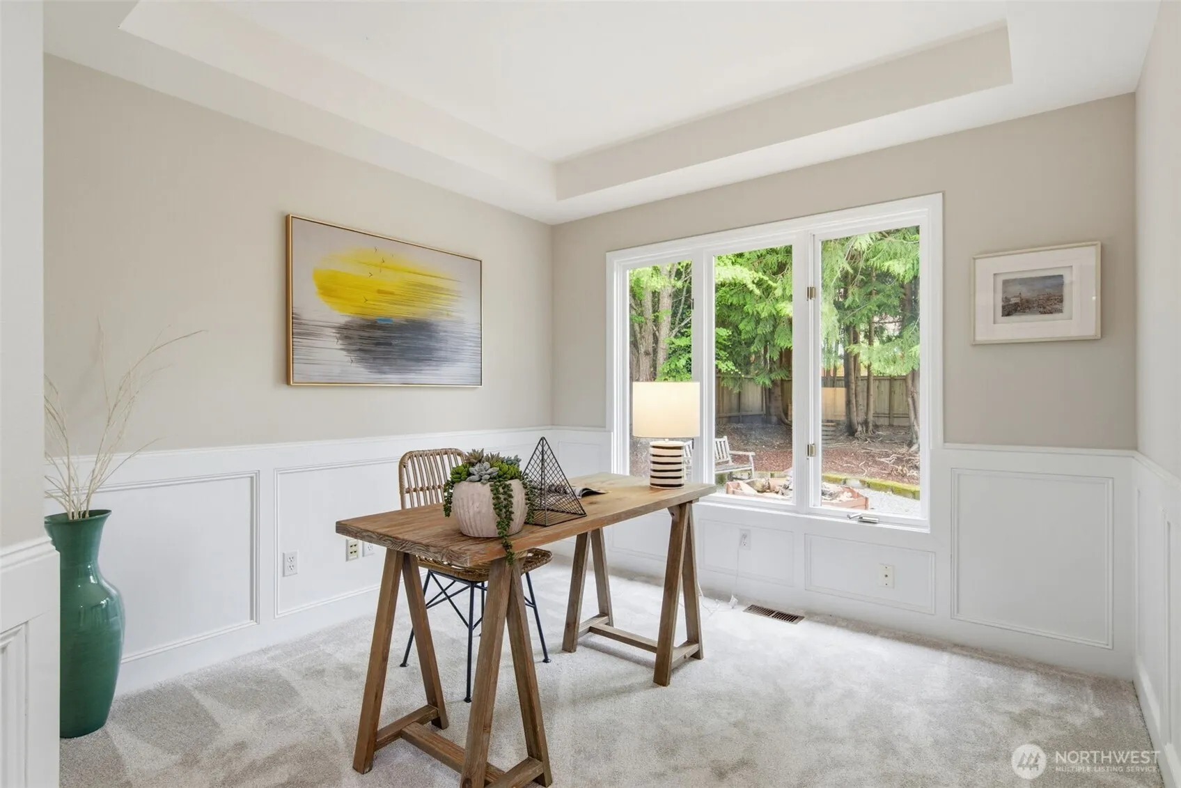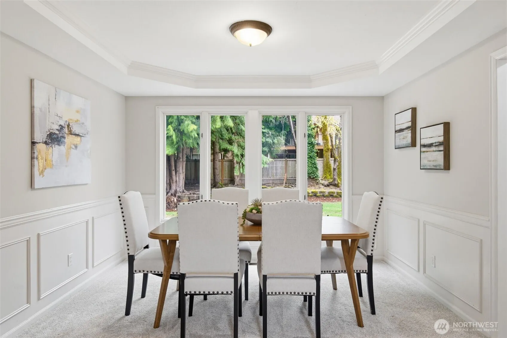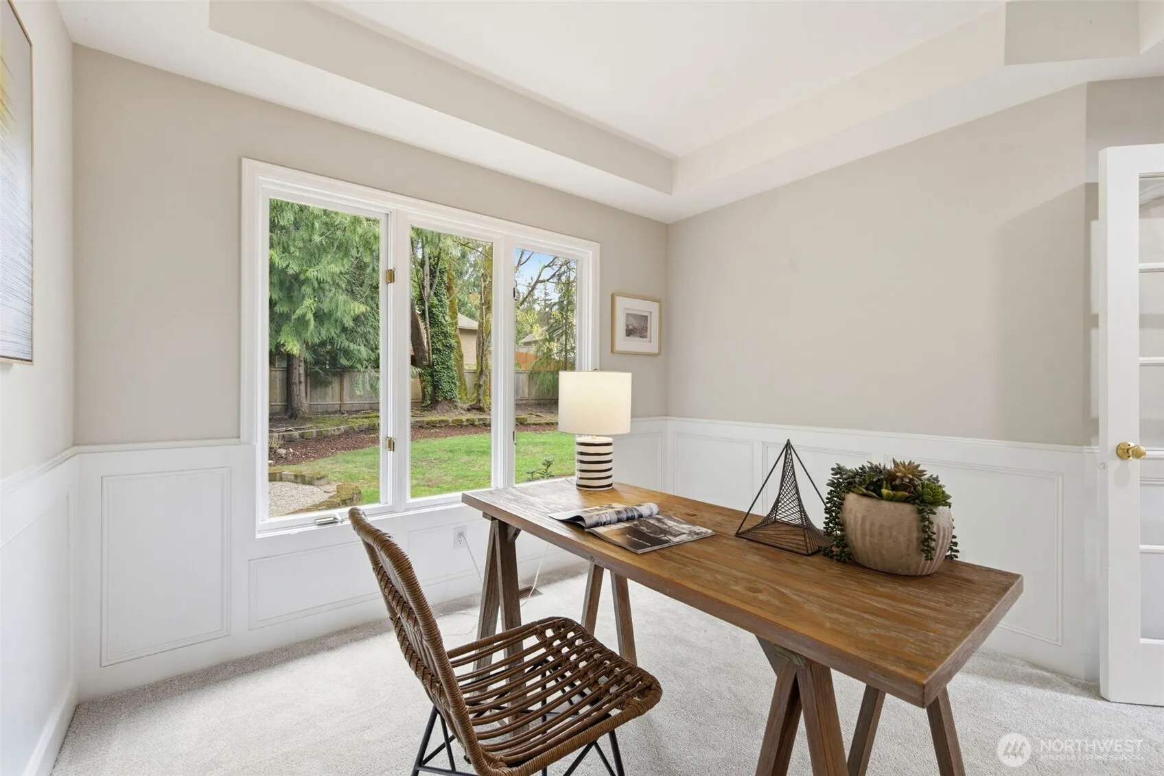 Classic two-story Sammamish home situated on an expansive 10,000+ sq ft flat lot, located directly across from Evans Creek Pond. This residence offers a highly functional layout, beginning with a soaring vaulted entry and bright, open-concept living spaces. The main level features refinished hardwood floors and a dedicated home office, complemented by formal living and dining areas filled with natural light. The updated kitchen—boasting white cabinetry, quartz countertops, and stainless steel appliances—flows seamlessly into the adjacent family room, making it perfectly suited for both everyday living and entertaining.Upstairs, the spacious primary suite is accompanied by two additional bedrooms and a versatile fourth room with French doors—an ideal space for a media room, playroom, or guest suite. The fully fenced, level backyard features a fire pit, providing a premier setting for outdoor gatherings. Surrounded by nature yet minutes from top-rated schools and everyday amenities, this location offers the perfect balance of convenience and tranquility. Top-rated Lake Washington schools.