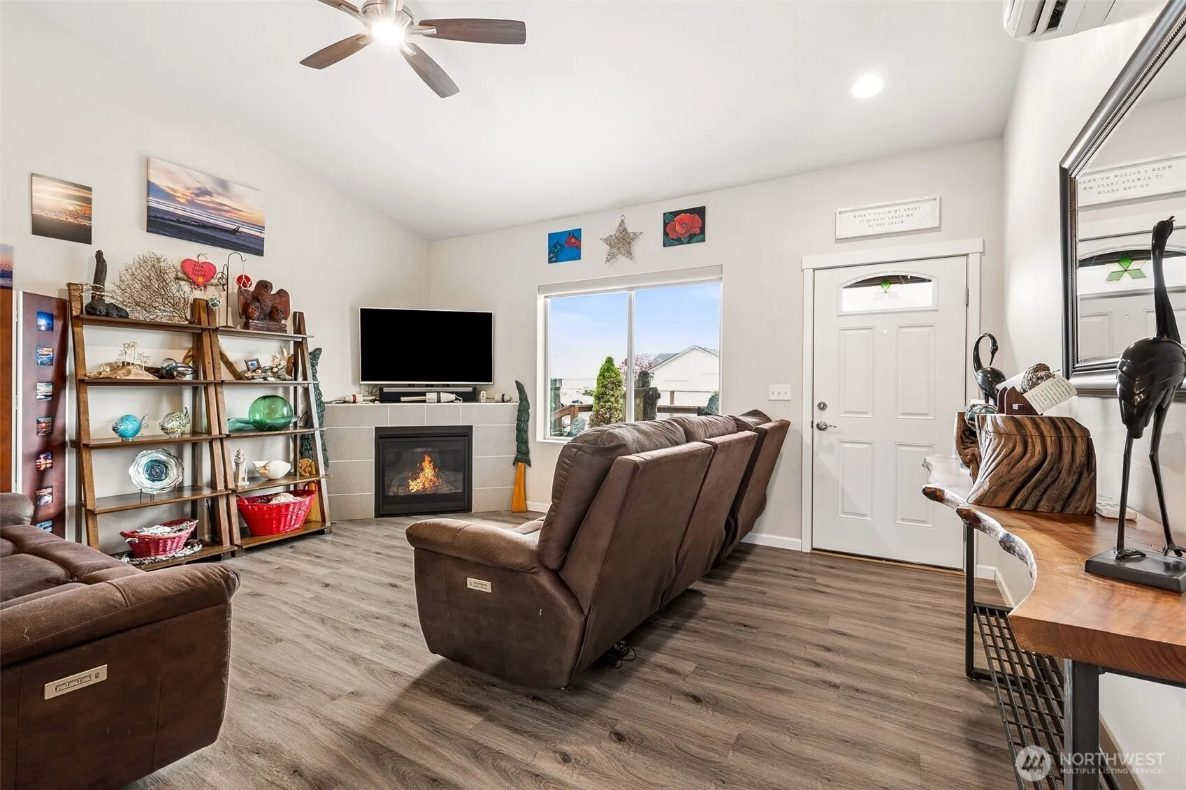 Fully furnished, charming 2 bedroom 1.75 bath home on a corner lot with partial lake view. This well-kept property features a bright inviting space and beautifully maintained yard perfect for relaxing or entertaining. Features include vaulted ceilings, stainless steel appliances, quartz countertops, large island in the kitchen, propane fireplace, sunroom, mechanical wall remotes for window blinds, and newer 6 person covered hot tub. Fully fenced with beautiful flowers, numerous fruit trees (apple, plum, cherry and fig) and a greenhouse. Large walk in closet and bathroom in primary bedroom. Mini split with A/C. 8 x 16 foot shed with power. Pull through driveway on a corner lot with full RV hook-up/septic drop next to the garage with plenty of space. 23 miles of canals, lake, clamming, fishing and kite flying. A variety of parks, restaurants, and shopping in town. Perfect for first time home buyers or those looking to downsize. Welcome home to a lovely coastal retreat.
