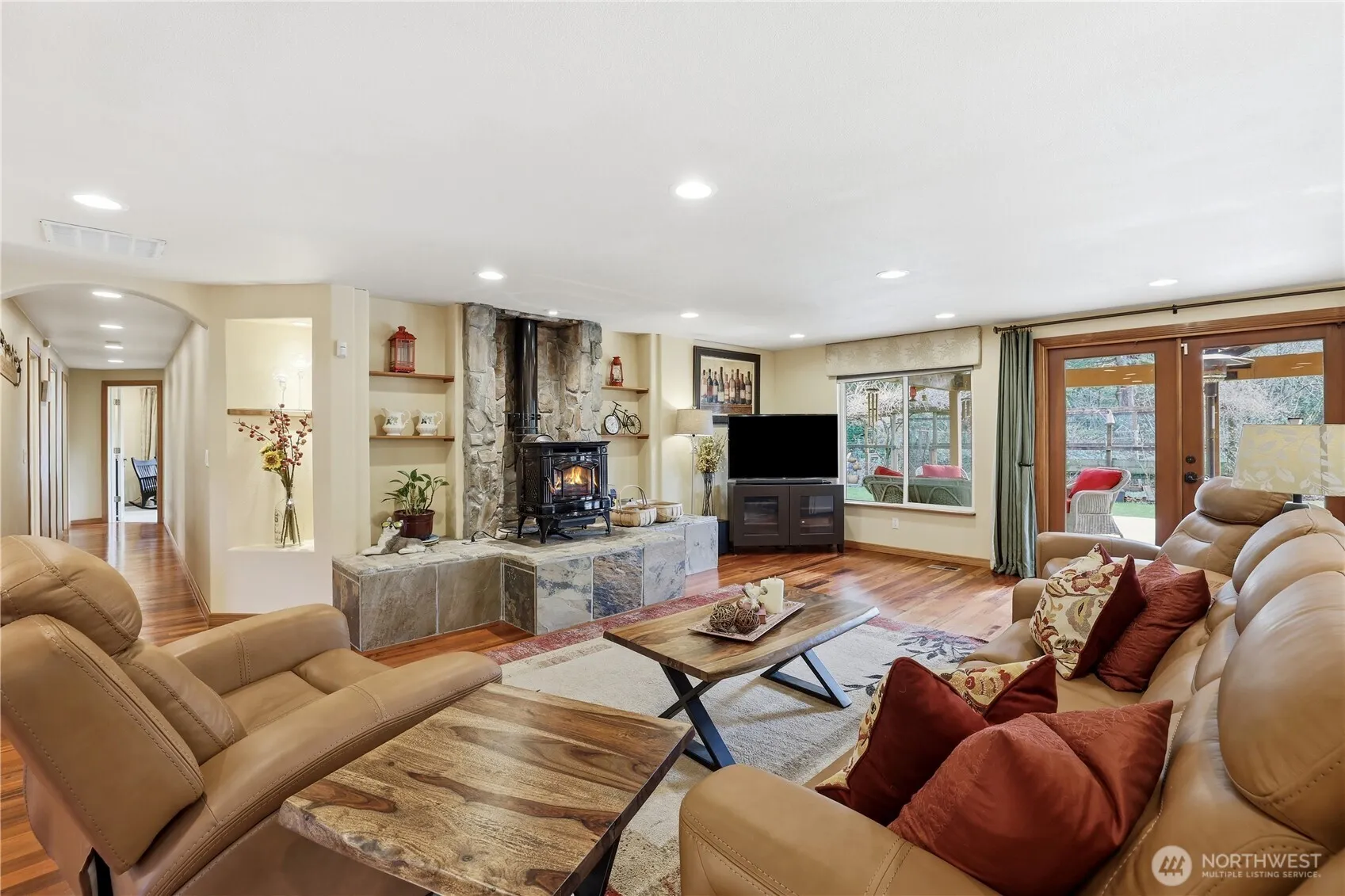 Must see rare, spacious rambler on the doorstep to Mount Si, offering comfort, function, and unforgettable entertaining spaces. The expansive great room flows seamlessly into a chef’s kitchen featuring granite counters, an oversized island with prep sink, stainless appliances, and a six-burner gas range with double ovens and griddle. A formal dining room, office with French doors, and a well-appointed laundry room with utility sink add versatility. The luxurious primary suite opens to a hot tub and includes its own heat pump, double walk-in closets, skylights, and a spa-inspired bath with heated floors, dual sinks, and a jetted tub. Brazilian Cherry Tiger hardwood floors run throughout. Jack and Jill bathroom with double sinks. Enjoy year-round gatherings on the large covered deck with skylights and chandelier. Generator ready and complete with an extended one-car garage ideal for RV parking, fenced garden area, and storage shed. Easy access to the Little Si Trailhead, CCC Trailhead, and I-90 makes this home a true Pacific Northwest gem.