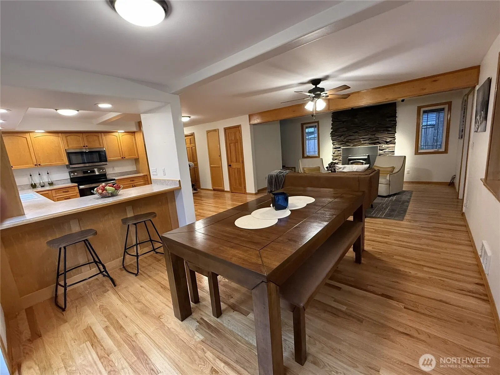 Welcome to this charming craftsman home on just over .25 acres in the community of Riverbend in North Bend. The property boasts large mature trees that give you the feeling of being connected to the land. A newly added garden bed is a perfect canvas to start planting for this season. Driveway, recently re-graded, offers ample parking. It’s roughly a 5 minute walk to the S.V.T trail for easy access to Rattlesnake or downtown N.B/Snoqualmie. This is truly a community to live and play all in one place! This extensively remodeled home in the late 1990s was done with care and quality boosting many timeless finishes. The French doors off the dining room to the expansive deck further connect you to the outdoors with ample space for entertaining guests. The kitchen has space for storage and enough room for more than one cook making it easy when hosting gatherings. The primary suit offers sanctuary with a large bedroom and complete 5 piece bath with new bidet. Additional rooms upstairs offer flexibility for family or space for home office. Come see for yourself all this community and home have to offer!