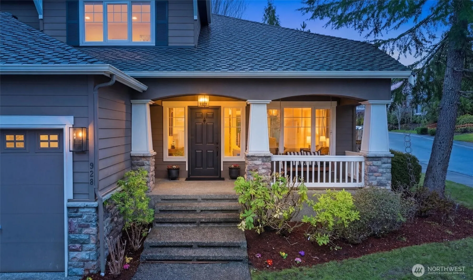 Set on a prime corner lot, this inviting home offers a rare blend of privacy, warmth, and an open layout designed for everyday living and entertaining. A welcoming front porch with a porch swing creates a charming first impression and the perfect place to relax and enjoy the neighborhood setting. Inside, gleaming hardwood floors and sophisticated lighting carry throughout the main level, complementing the home’s open floor plan. The tastefully updated kitchen flows seamlessly into the dining and living areas, creating a natural gathering space anchored by a striking stone fireplace in the family room. Thoughtful architectural details, including several art niches, add character and display space throughout the home. A main floor bedroom or office and a 3/4 bath, provide flexibility for guests, work-from-home needs, or hobbies. Upstairs, brand new carpet adds comfort and a fresh feel, while a spacious loft offers additional room for a media space, play area, or lounge. Outdoor living continues on the Trex deck, complete with a built-in barbecue, premium hot tub, and wood-burning fireplace, creating a year-round space for entertaining and relaxing. Additional highlights include irrigation in both front and back yards, a spacious storage shed, and a garage with built-in shelving. Enjoy the Trossachs lifestyle with neighborhood trails, tennis and sport courts, soccer field, exercise area and the natural beauty of Soaring Eagle Park just minutes away. Wow!