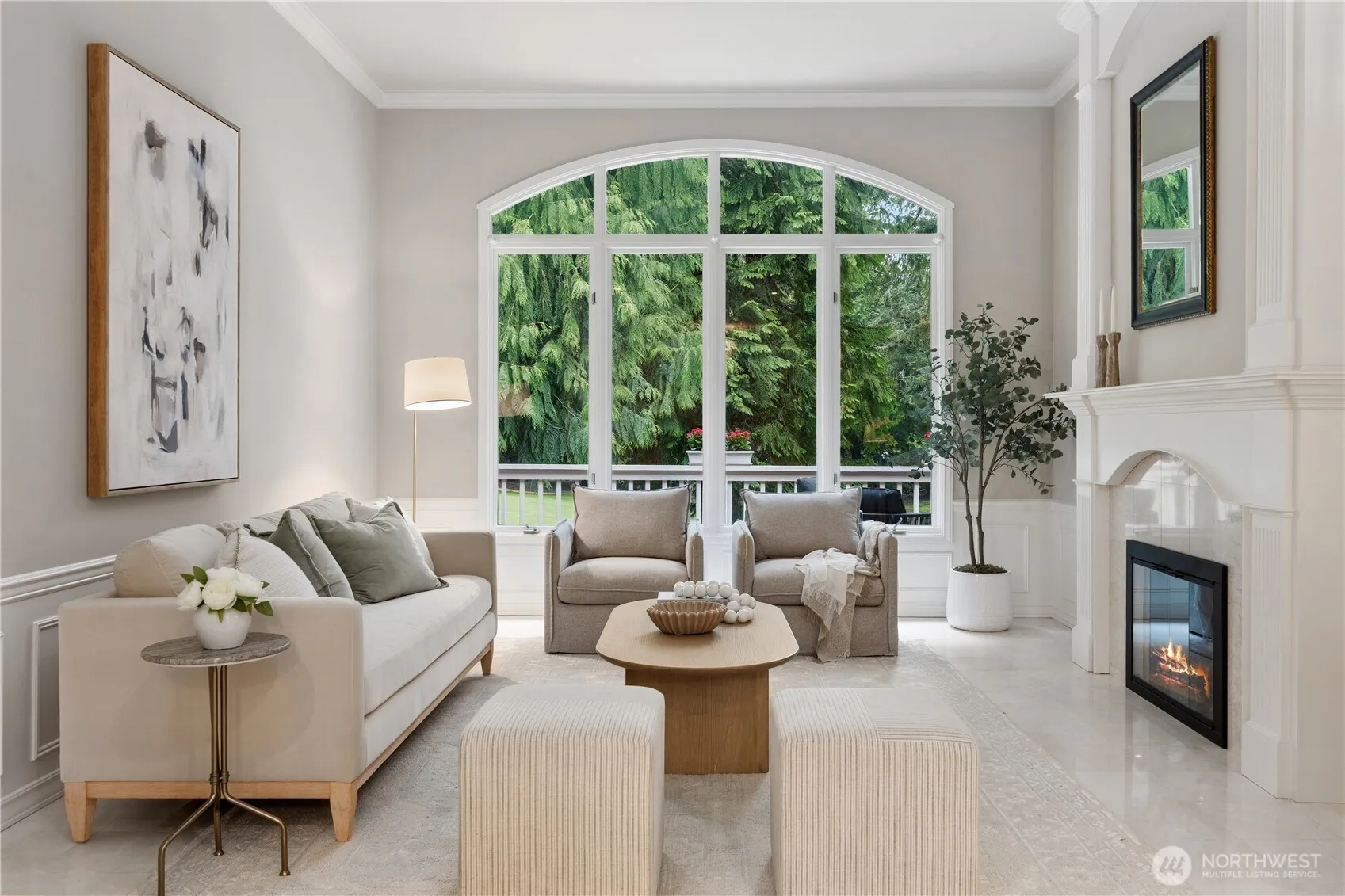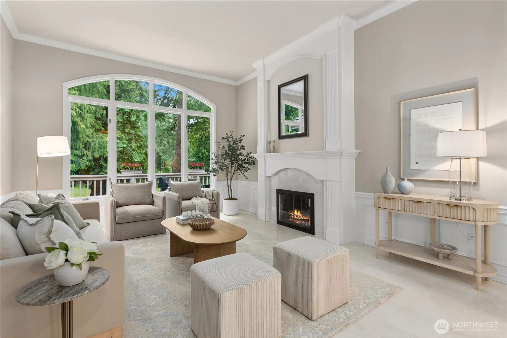 A pristine, beautifully updated single-story, three-bedroom home situated at the end of a cul-de-sac in Sahalee. Meticulously maintained, this elegant home offers one-level living and features soaring ceilings & expansive living areas bathed in natural light with golf course views. Step into a striking marble-clad entry, leading to the formal living and dining rooms, both with radiant heated marble floors and walls of windows. A dramatic double-sided fireplace anchors the living room to the bright open-concept family room & kitchen – the heart of the home- featuring rift-cut oak hardwoods, vaulted ceilings, center island, quartz countertops & a brand new gas cooktop, double ovens & microwave. French doors open from the family room onto a new composite deck & manicured garden on the 2nd fairway of the East Course. Private and tranquil, perfect for both relaxation & entertaining. The oversized primary suite offers a fully remodeled 5-piece bathroom with soaking tub, radiant heated marble floors and two walk-in closets. French doors open onto the deck, the perfect spot to enjoy a quiet morning coffee. This home features an oversized double garage, central A/C, crawlspace w/purifier, attic platform storage & freshly painted interiors. Sahalee is a 24-hour guard-gated golf community with a 27-hole championship course, set within one of WA’s most desirable suburbs. Top-rated LWSD schools, easy access to highways, Redmond Light Rail, Bellevue & Seattle. Refined living. Welcome home.