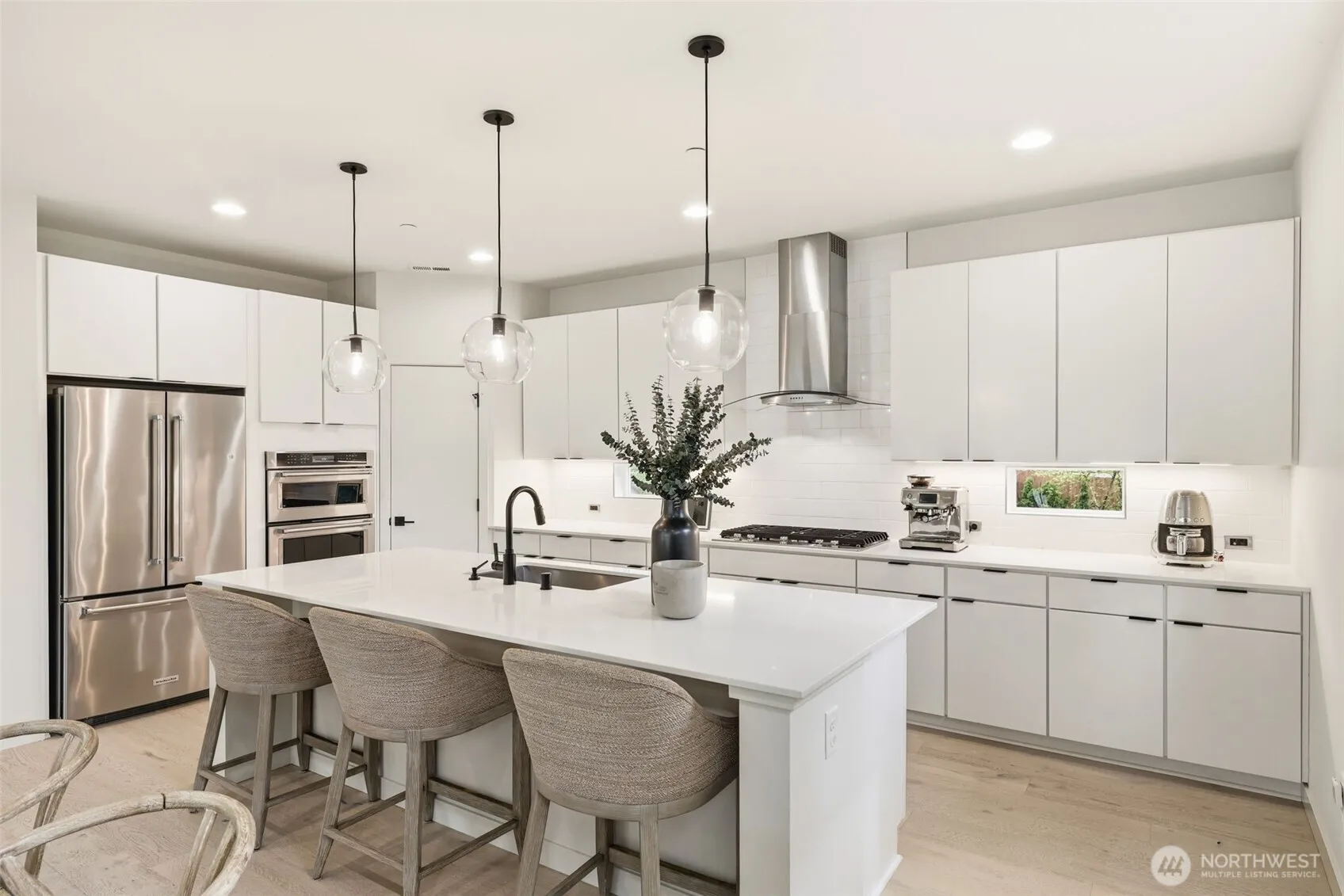 Tucked into one of Sammamish’s most desirable enclaves, this exceptional residence offers timeless design, generousproportions, and effortless livability. The bright and open layout with an abundance of natural light, highlighted bystandout windows and seamless indoor-outdoor living. The main floor features a spacious kitchen, dining, and great roomconcept, complemented by two covered decks—perfect for year-round enjoyment—one off the great room and another off aversatile flex space at the back of the home. Upstairs, the primary suite provides a private retreat with a well-appointed ensuite bath and walk-in closet, along with two additional bedrooms, a full bath, laundry, and an open loft area ideal for work or play. The lower level offers a fourth bedroom, full bath, walk-in closet, and additional storage—perfect for guests or multi-generational living. Set alongside a beautiful natural reserve, this home offers a rare sense of privacy and connection to nature, with peaceful surroundings and easy access to nearby trails and outdoor spaces. All of this just minutes from top-rated Lake Washington schools, parks, and everyday amenities—offering the perfect balance of comfort, convenience, and Northwest living.