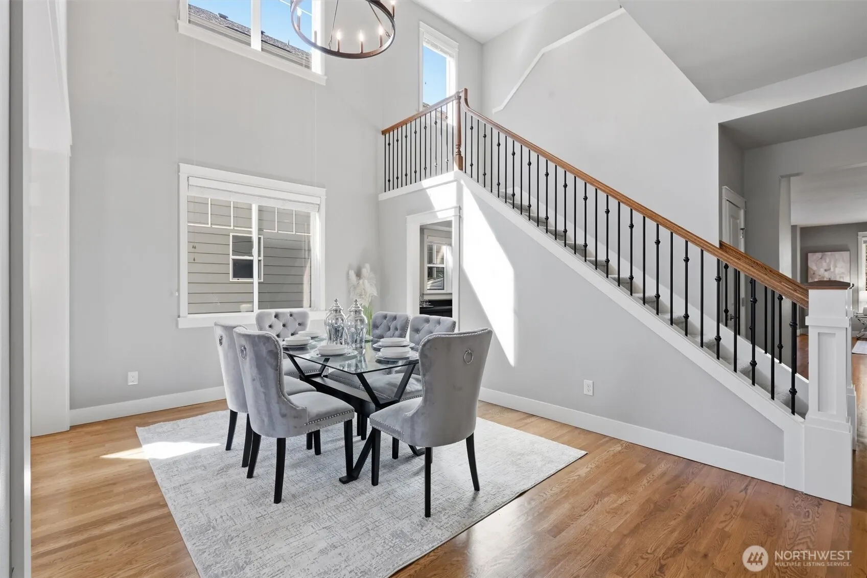 Welcome to Glencoe, where refined comfort meets everyday functionality. This thoughtfully designed home offers a seamless blend of open, airy spaces & purposeful design; creating a layout that feels as good as it looks. Formal living & dining areas with soaring ceilings create volume while keeping each space distinct. The layout then shifts naturally into everyday living where the kitchen offers a large island with prep sink, chic lighting & high-end appliances. The family room opens seamlessly to the kitchen & eating area. A central fireplace anchors the space; while natural light and backyard views create a comfortable, connected feel. A dedicated main-level office sits next to a ¾ bath, giving flexibility for work or longer-term guests. The mudroom adds everyday function right where you need it. Upstairs, the primary suite is set apart with a romantic fireplace & a spa-inspired bath designed for slowing down at the end of the day. One secondary bedroom connects directly to the full guest bath; while two additional bedrooms, laundry & bonus room complete the upper level. The bonus room offers flexibility for a media room or whatever fits your lifestyle. Outside, the backyard is designed perfectly with low maintenance turf, an extended paver patio for hosting summer gatherings & a hot tub that you can enjoy year-round. With nearby trails, neighborhood parks, a soccer field, & sport courts, you have access to the kind of outdoor lifestyle that people move to Trossachs for!
