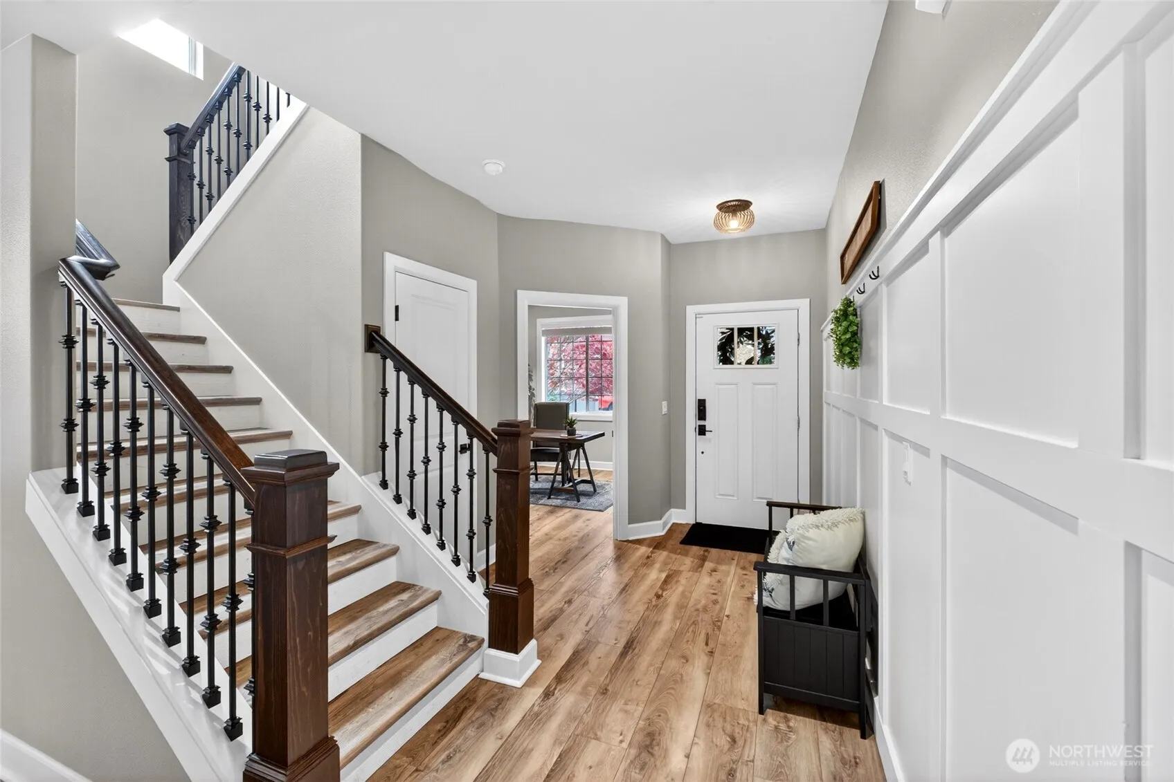 Welcome to this beautifully maintained home in Tehaleh, located within the Sumner-Bonney Lake School District, offering space, functionality, and thoughtful upgrades throughout. Featuring 4 bedrooms, a dedicated office, and a versatile bonus room, this home is designed to fit a variety of lifestyles. The oversized 3-car garage includes extended bays and overhead storage, with a large shed providing additional space for tools and toys. Inside, enjoy updated LVP flooring upstairs and new carpet in the bedrooms (2023), along with a well-appointed kitchen featuring a gas stovetop, double oven, butler’s pantry and walk-in pantry with wood shelving. The inviting living room showcases custom built-in shelving and cabinetry surrounding the fireplace, adding both style and functionality. French doors lead to both the bonus room and the primary suite, enhancing the home’s open yet intentional layout. Step outside to your private covered patio, complete with a hot tub, cozy fireplace, and built-in prep counter – perfect for year-round entertaining. Situated on a larger lot with 10-foot setbacks and within short walking distance to three parks, this home offers both privacy and convenience. Additional highlights include central A/C, recently inspected gutters with front gutters replaced (2026), and smart home features including a Ring doorbell and Nest thermostat that transfer to the buyer.