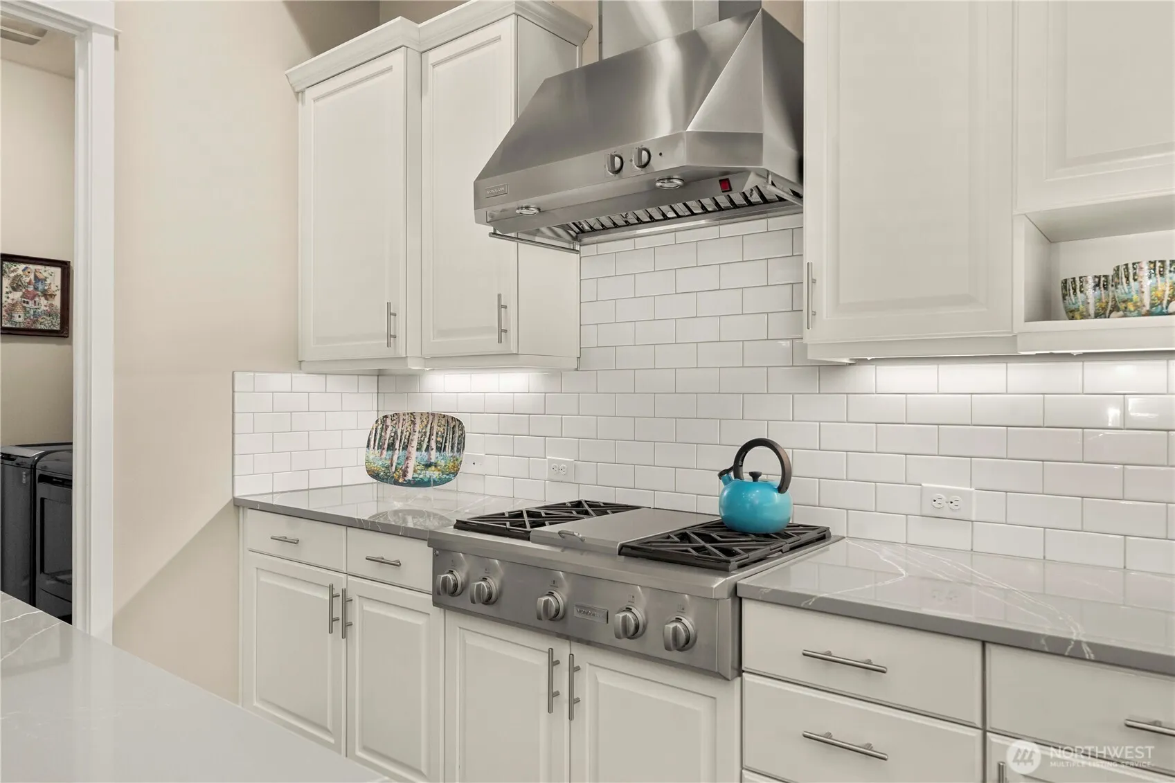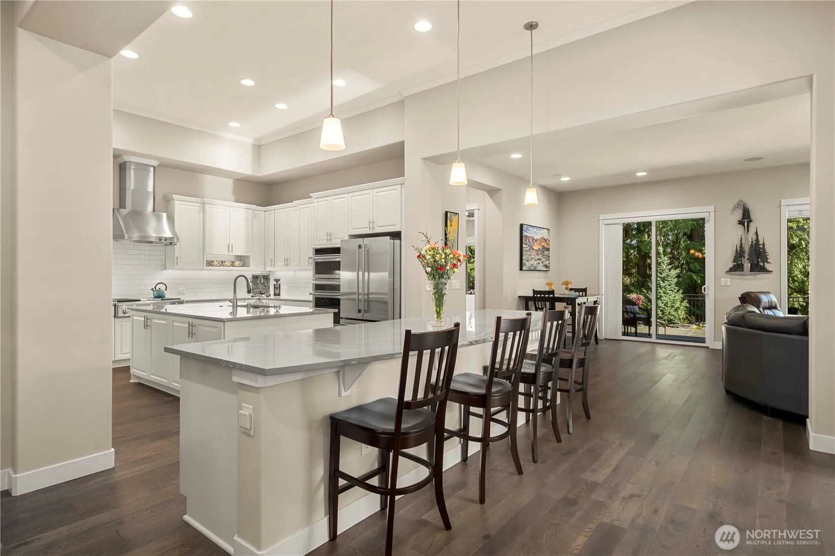 Welcome to one of the most exceptional homes in 55+ Trilogy at Tehaleh—where every detail has been thoughtfully elevated for comfort, beauty & seamless indoor-outdoor living. The interior of this Tarragona showcases high-end finishes & a warm, refined aesthetic throughout, while the two covered outdoor living spaces are equally spectacular. Outdoor living truly sets this home apart. Just off the kitchen, a covered patio boasts an outdoor kitchen w/ grill, fridge, matching stonework & granite countertop. Bromic heaters & surround sound (which is integrated throughout the home & outdoor spaces). The private backyard retreat offers another covered living area; custom fireplace & stunning water feature & stream along the fully fenced, permanent greenbelt lot. Raised patios, flagstone (w/ a concrete base), irrigation & landscape lighting (front & back) complete the setting. French doors open to a spacious office/den, while shutters adorn front-facing windows & cordless blinds finish the rest. Stained wood ceilings are carried through all exterior ceilings. Additional highlights include custom closets, a fully finished three-car garage w/ epoxy floors, storage, workspace, EV outlet, & service door. All interior walls insulated, high-end storm door at entry, AC. Every aspect of this home has been elevated—offering a rare blend of luxury, privacy & exceptional design. Experience the amazing Lodge/pool/fitness/restaurant & bar/Pickleball/retail/Post & Pour bistro/trails.