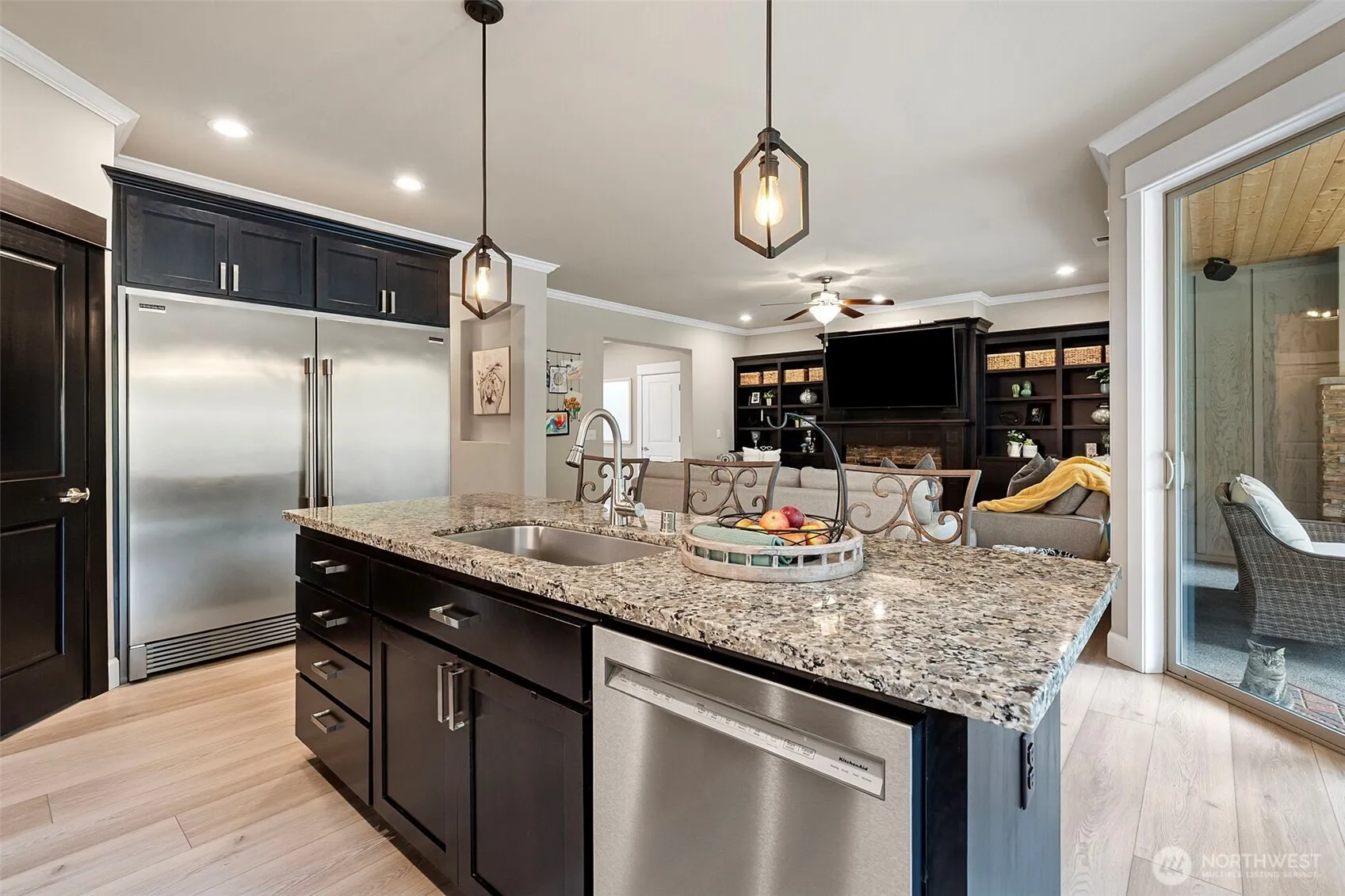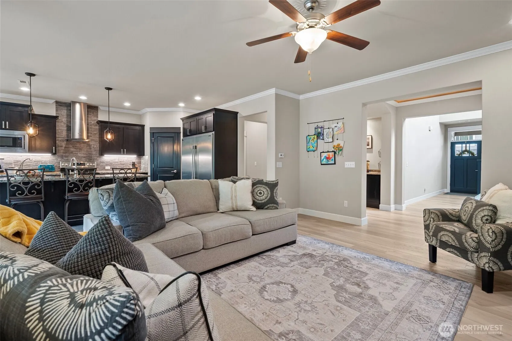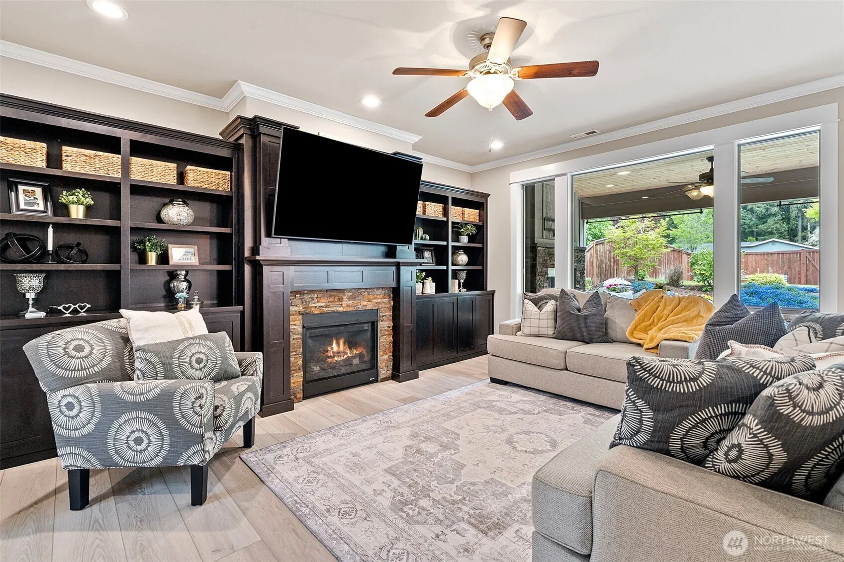 Experience peace & privacy in the gated Lexington community, where this exceptional High Country Home showcases impeccable craftsmanship & attention to detail throughout. From crown molding & extensive millwork to wainscoting, rounded corners, custom built-ins, and beautifully finished cabinetry, every element has been thoughtfully designed. This stunning 2,746 sq.ft. home offers a versatile & functional layout, featuring a junior en suite with a ¾ bath on the main level—perfect for guests or multi-generational living. Upstairs, you’ll find the spacious primary suite, 2 additional bedrooms, a dedicated office, & a large bonus room or fifth bedroom, along with convenient upper-level laundry. The gourmet kitchen is a chef’s dream, complete with granite countertops, full tile backsplash, stainless steel appliances, double ovens, and an oversized refrigerator. Step outside to enjoy year-round outdoor living with a covered patio featuring a gas fireplace, built-in speakers, & TV wiring—ideal for entertaining. The fully fenced yard includes a sprinkler system, garden beds, hot tub for added comfort & convenience. Additional highlights include central A/C, 3 car garage, & a private gate providing direct access to community walking trails. Located within a highly desirable neighborhood known for its strong sense of community & excellent schools.