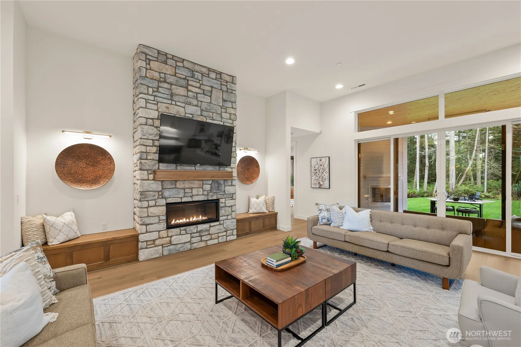 The PALISADE by GARRETTE HOMES! This distinctive open-concept model home welcomes you with a spacious entryway that makes a striking first impression, leading into a grand great room with custom masonry fireplace and tall 12-foot ceiling. The expansive, chef-inspired kitchen features high-end Thermador stainless steel appliances and boasts the largest kitchen island we’ve ever included in a floor plan. A spacious covered patio with outdoor fireplace creates the perfect setting for year-round Pacific Northwest outdoor enjoyment. The main-level primary suite features its own private covered patio and connects to a luxurious, spa-inspired en suite bathroom. The walk-in closet conveniently flows into the laundry room for a seamless, functional layout. Upstairs, a spacious bedroom with its own en suite bathroom offers the ideal setup for guests or private living space. Photos are of the exact property for sale. Leaseback may be required. Brokers must accompany their clients at initial visit for full compensation.