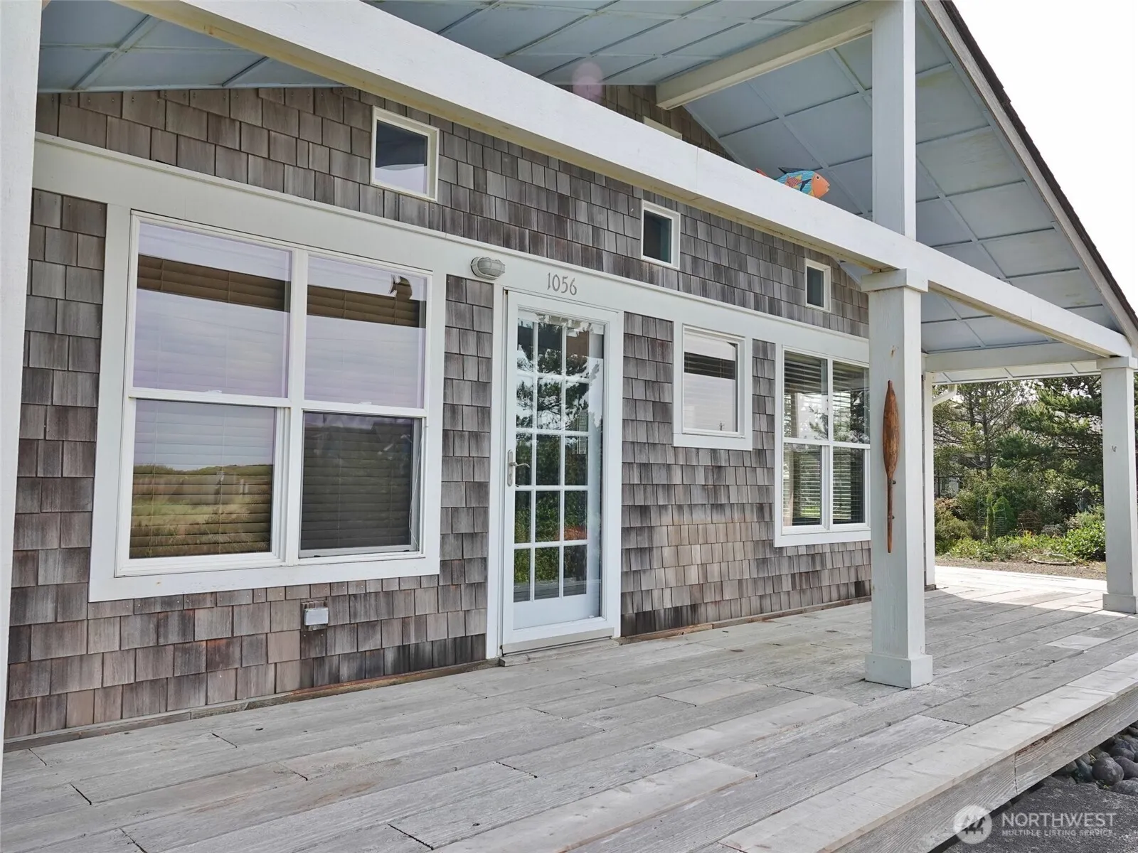 DESIGNER STYLE featured in this cute home near the BEACH with 2 LOTS! Enter into this home with the unique vaulted wood ceilings and beams giving this home a designer touch of style. Parquet flooring in this Open Great Room design with wood-burning Fireplace. Kitchen with an Eating Bar and Granite tile counters. 2 nicely-sized Bedrooms, and a Full Bathroom with a washer and dryer. Enjoy the outside on the huge side Deck and Covered Front Deck. Lots of privacy provided by the natural landscaping surrounding this home and corner property. Approx. 120 sq.ft. Shed with very high ceilings and a Viewing Tower on top, which does offer some distant Ocean Views. Fenced Garden Area. BONUS: Spread out with the extra land space with the lot next door (1057 Crestshire Lp) included in the sale, giving this property approx. 15,800 sq.ft. of land.