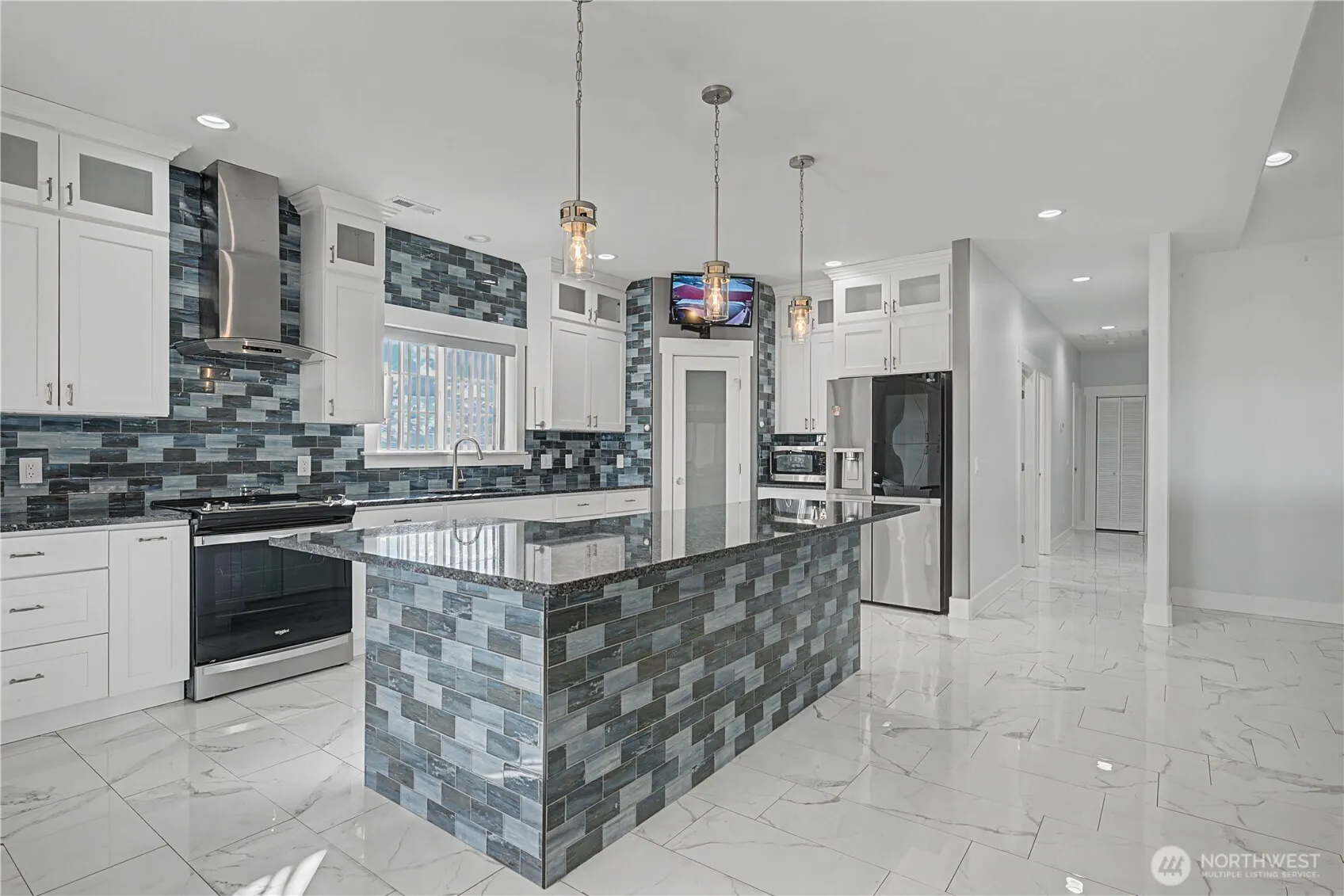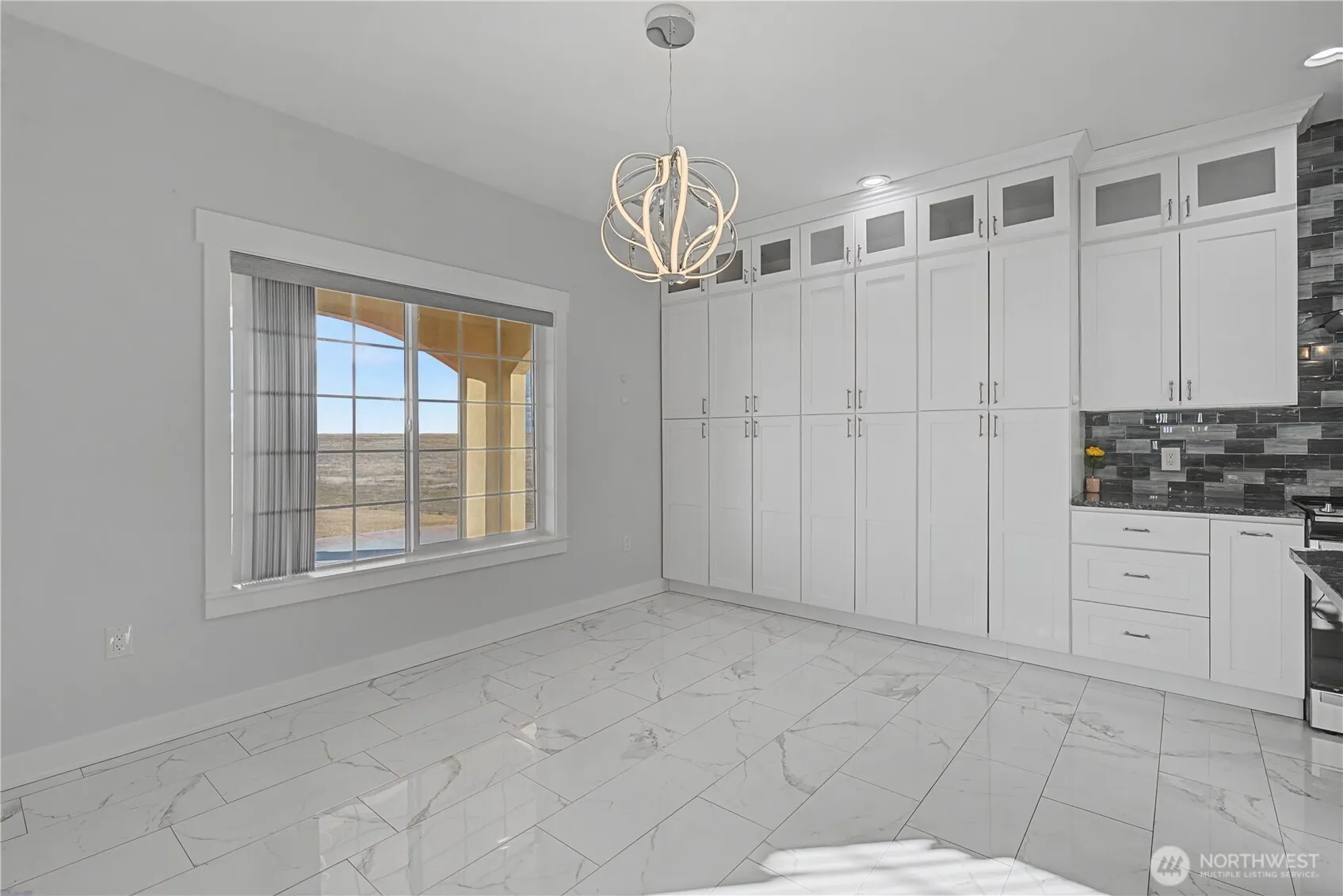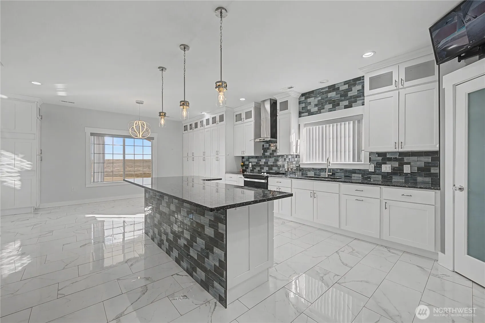 Luxury Acreage Lifestyle. Situated just minutes from Soap Lake, this stunning 2,607 sq ft custom home offers 40 acres of privacy, space, and endless opportunity. A large paved driveway with gated entrance welcomes you to the property, setting the tone for the impressive features throughout. Inside, marble flooring flows seamlessly through the home, creating a timeless and elegant feel. This spacious 3-bedroom, 3-bath residence is designed for comfort and entertaining, featuring a large back patio perfect for hosting gatherings and enjoying peaceful country sunsets. The home is equipped with a double HVAC system for personalized split-temperature comfort, a water softener system, and additional electrical hookups ready for a future shop or ADU. A beautiful working fountain enhances the front exterior, while extra detached storage provides even more functionality. Experience refined country living with room to expand — all just minutes from town.