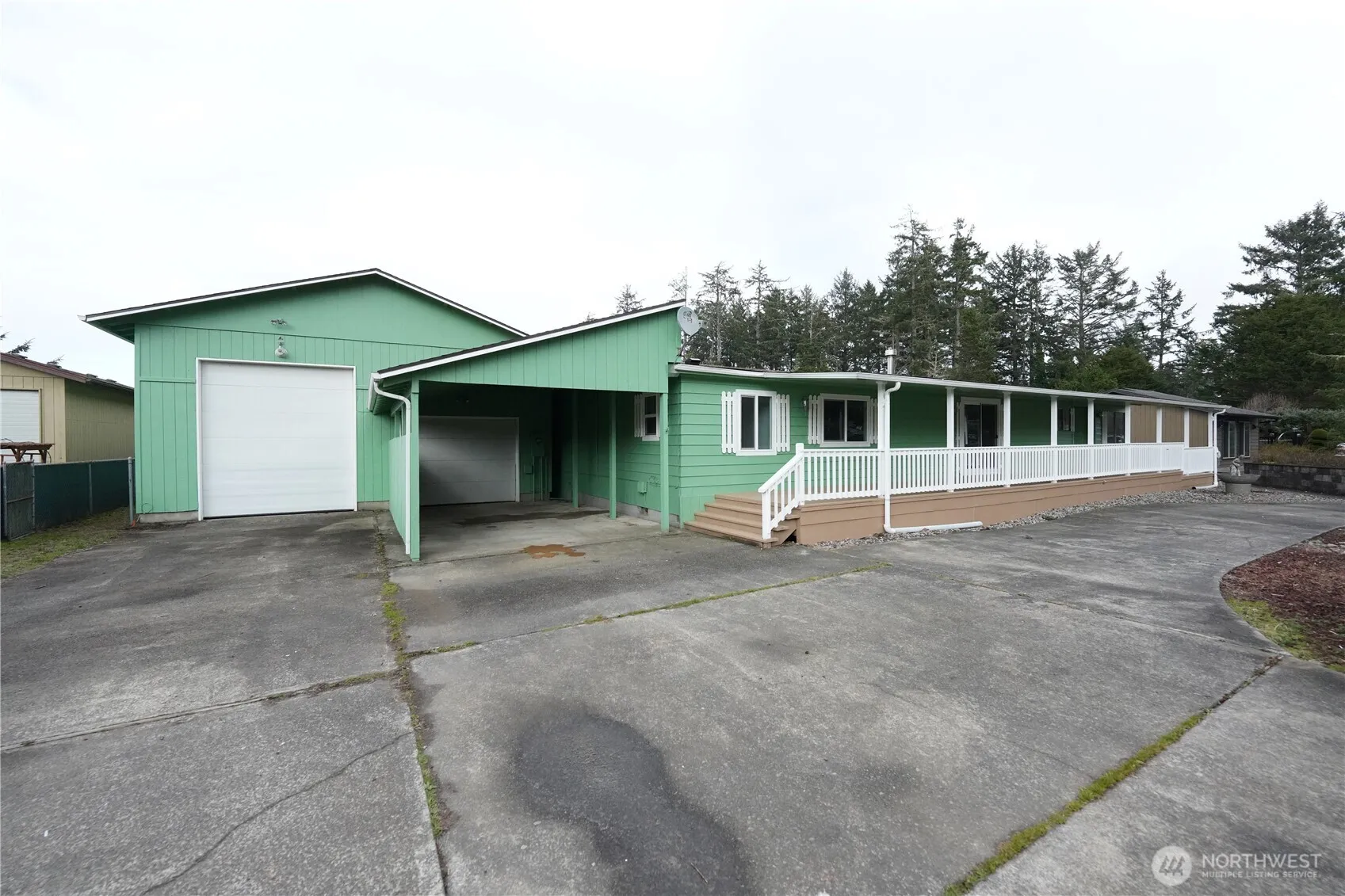 Newly remodeled home near the Klipsan beach approach. This large manufactured home has been lovingly remodeled with new flooring, doors, some windows, interior and exterior paint, new vanities, and lighting. Large, oversized double lot. The huge, 1560 square foot garage has a 14 foot roll up door, tall ceilings, and a 10 foot roll up door, you can park 10 cars inside, or an RV, or a boat! The main level has 2 bedrooms and 2 baths. A large living room with pellet stove for warmth on those cool coastal days has brand new carpet and luxury vinyl planking throughout. The kitchen is fully equipt and has a nice dining room next to it. There is over 1400 square feet of covered patios on the front and rear of the home, great for relaxing and staying dry! Drive-through carport attached to both the house and garage. The back yard is ready for the green thumb to make it a beautiful garden, complete with raised beds! New roof on the house and garage in 2023. Just a quick 7 minute walk to the beach, Klipsan Beach is calling, come see it soon!