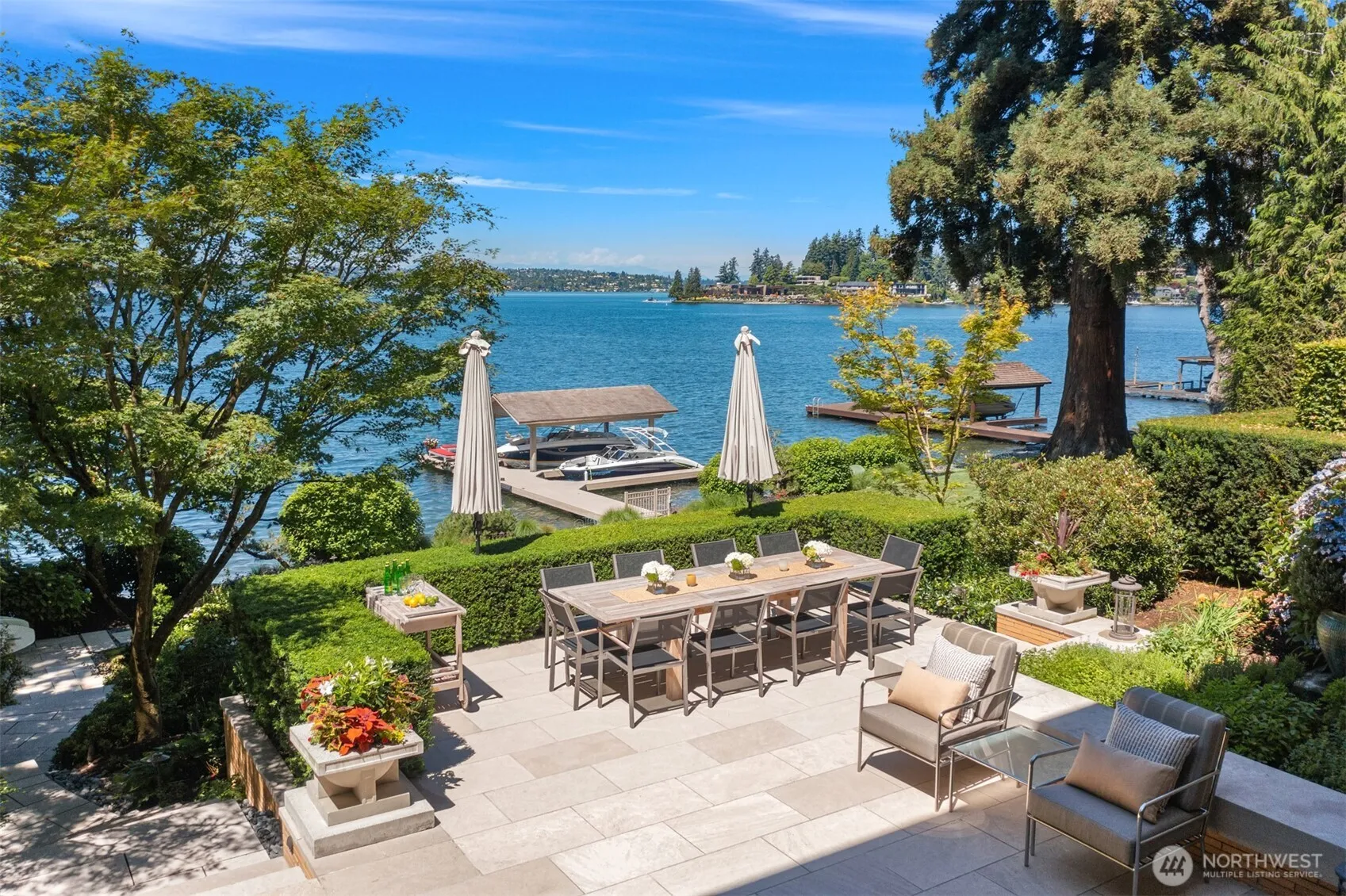 Discover unparalleled luxury in this Tom Kundig designed masterpiece, echoing Frank Lloyd Wright’s spirit through a timeless blend of brick, mahogany, limestone, and copper. Inside, Art Deco elegance is expressed with book-matched Honduran mahogany walls, African mahogany floors, and a stunning water-view bar framed by floor-to-ceiling windows. Set on nearly 2 private acres along a quiet lane shared by just seven residences, the property offers 135 feet of prime due west-facing waterfront with sweeping views across the lake to the Seattle skyline and Olympic Mountains, all while enjoying extraordinary privacy with no visible neighbors. Designed for both refined daily living and memorable entertaining, the estate features a 1,200-bottle wine cellar, movie theater, three office spaces, detached cabana guest suite, built-in outdoor kitchen, hot tub, 2-slip dock, 3-car garage, and additional 2-car carport. The unique intersection of traditional and modern design encapsulates the essence of true architectural innovation, reflecting a profound respect for natural materials and their inherent beauty. Ideally located just minutes from downtown Bellevue. It’s more than a home, it’s a timeless legacy.