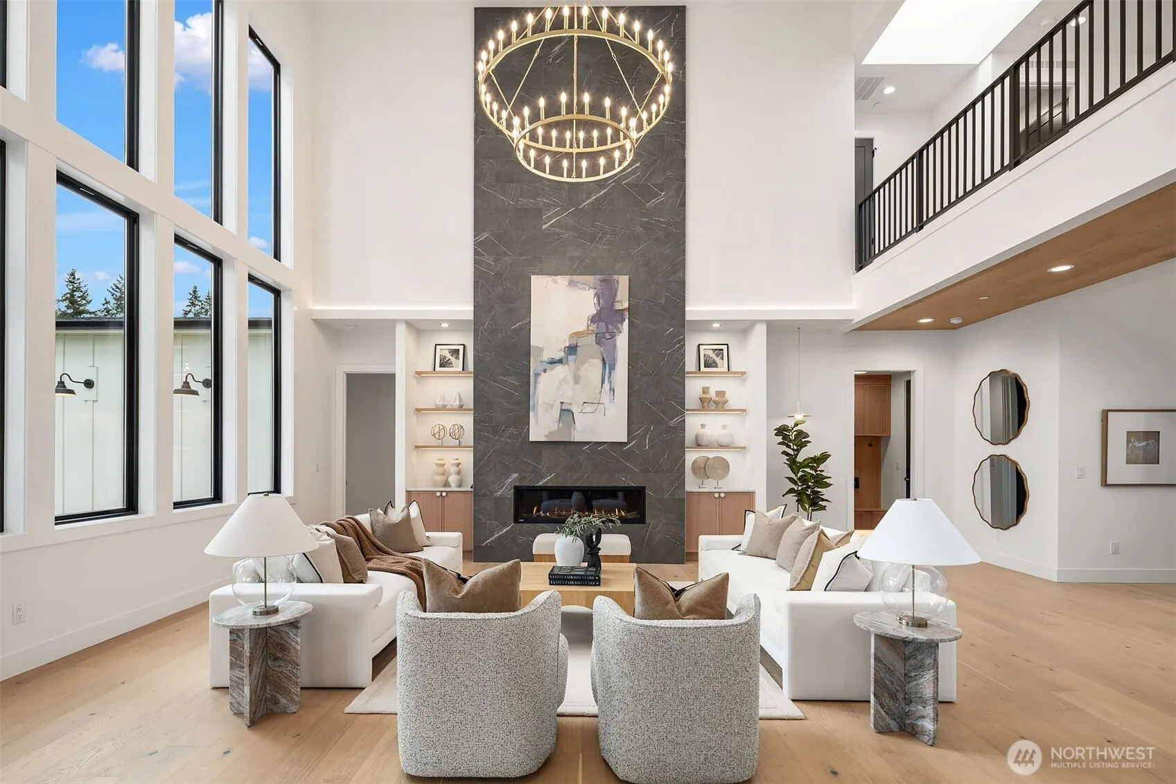 Discover a stunning new construction by CB Custom Homes in the highly sought-after Eastgate neighborhood of Bellevue. This exceptional residence showcases luxurious finishes and a masterful use of premium materials throughout. Designed to impress, the home features a spectacular grand entry, highlighted by an impressive pivot front door, and expansive living spaces tailored for both comfort and entertaining. The main floor includes a private guest suite, a dedicated den, and a state-of-the-art theater room complete with projector and built-in 5.1 surround sound. Soaring 10-foot ceilings on both the main and upper levels enhance the home’s open and airy feel. At the heart of the home, the magnificent chef’s kitchen is equipped with top-of-the-line appliances, including a Sub-Zero refrigerator and a 48-inch Wolf range. A fully appointed Butler’s kitchen with Bosch appliances adds both convenience and elegance. The dramatic family room is flooded with natural light from a wall of windows and features a breathtaking 20+ foot ceiling, beautifully accented by a statement chandelier. Each bathroom is thoughtfully designed with heated floors, adding an extra layer of comfort and luxury. Step outside to a private backyard retreat with a spacious covered patio and overhead heaters—perfect for year-round enjoyment.