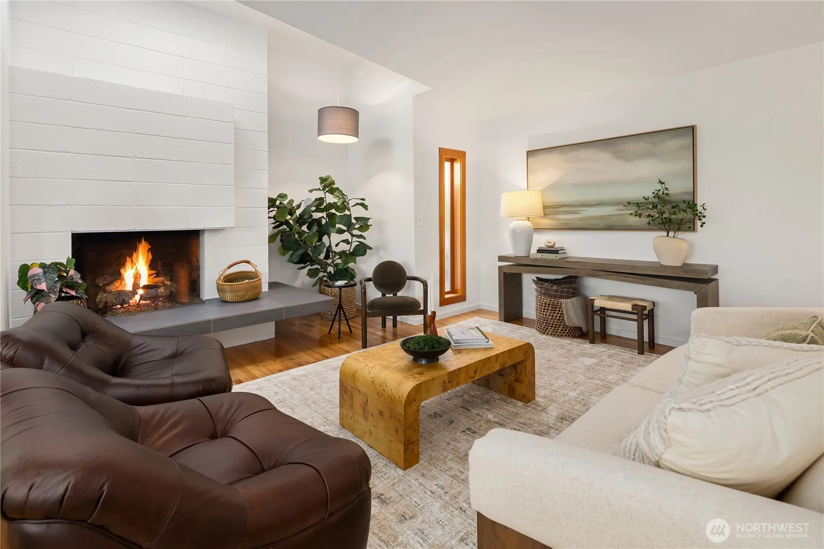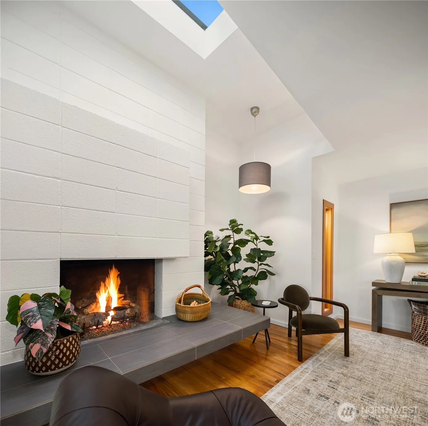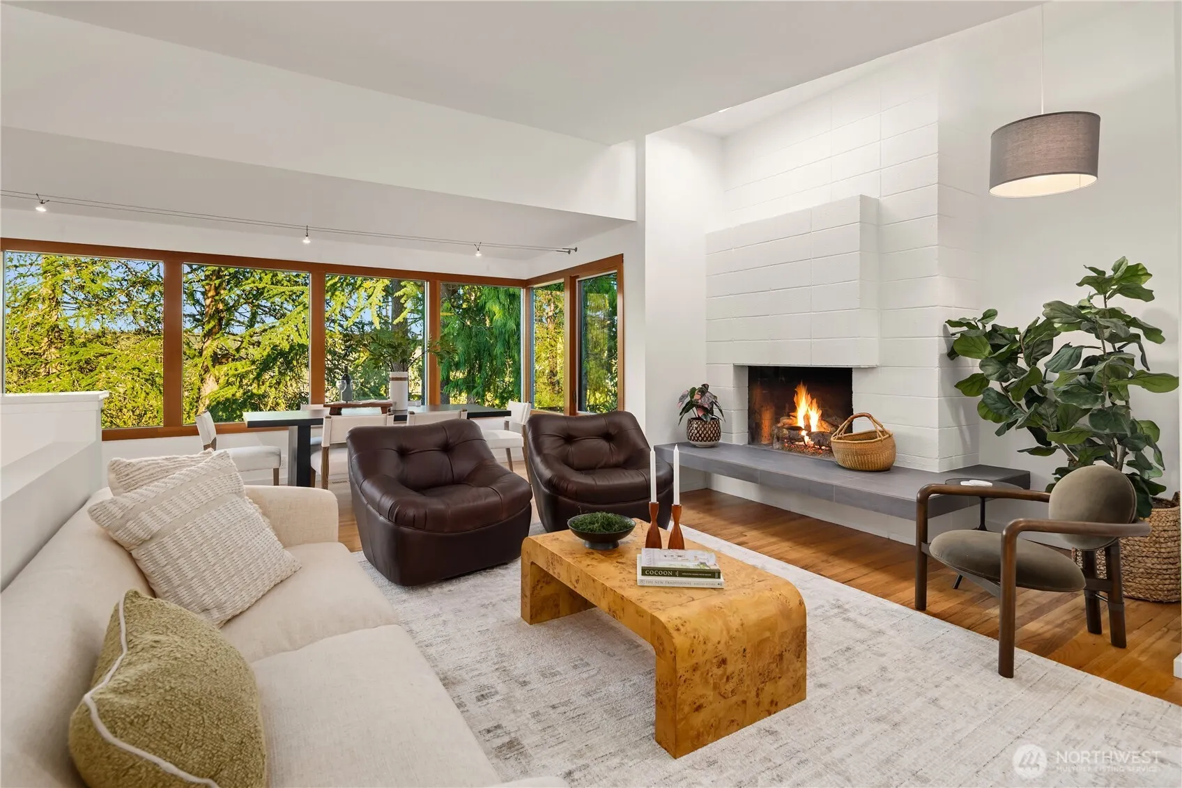 A rare offering in the heart of Norwood Village,this exquisitely restored mid-century jewel box blends timeless architecture w/sophisticated modern living. Thoughtfully reimagined,the home showcases elevated finishes throughout—from heated floors underfoot to a state-of-the-art chef’s kitchen designed for both beauty & performance.Walls of glass frame serene, private gardens, creating a seamless connection between indoor and outdoor living.Dual fireplaces anchor each level w/warmth & elegance,while the lower level presents a luxurious retreat-ideal as a primary suite,executive office,or private guest quarters.Freshly curated inside & out,the home features new paint,refined landscaping,expansive decks designed for effortless entertaining.A striking grape arbor crowns the main deck,overlooking a tranquil setting of hot tub,manicured lawn, & mature trees that offer exceptional privacy.Vaulted ceilings & skylights bathe the main living spaces in natural light, enhancing the home’s architectural character and airy ambiance. Perfectly positioned at the intersection of Norwood Village and Woodridge, this residence offers unparalleled access to community amenities including pools, tennis and basketball courts, and Woodridge Elementary—all just moments away.Enjoy the rare combination of peaceful neighborhood living with immediate proximity to downtown Bellevue, major freeways, and transit. This is a refined expression of Eastside living—private, connected, and effortlessly elegant.