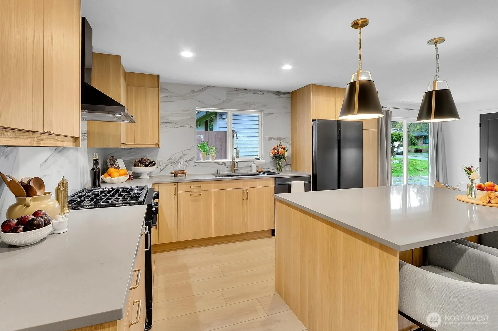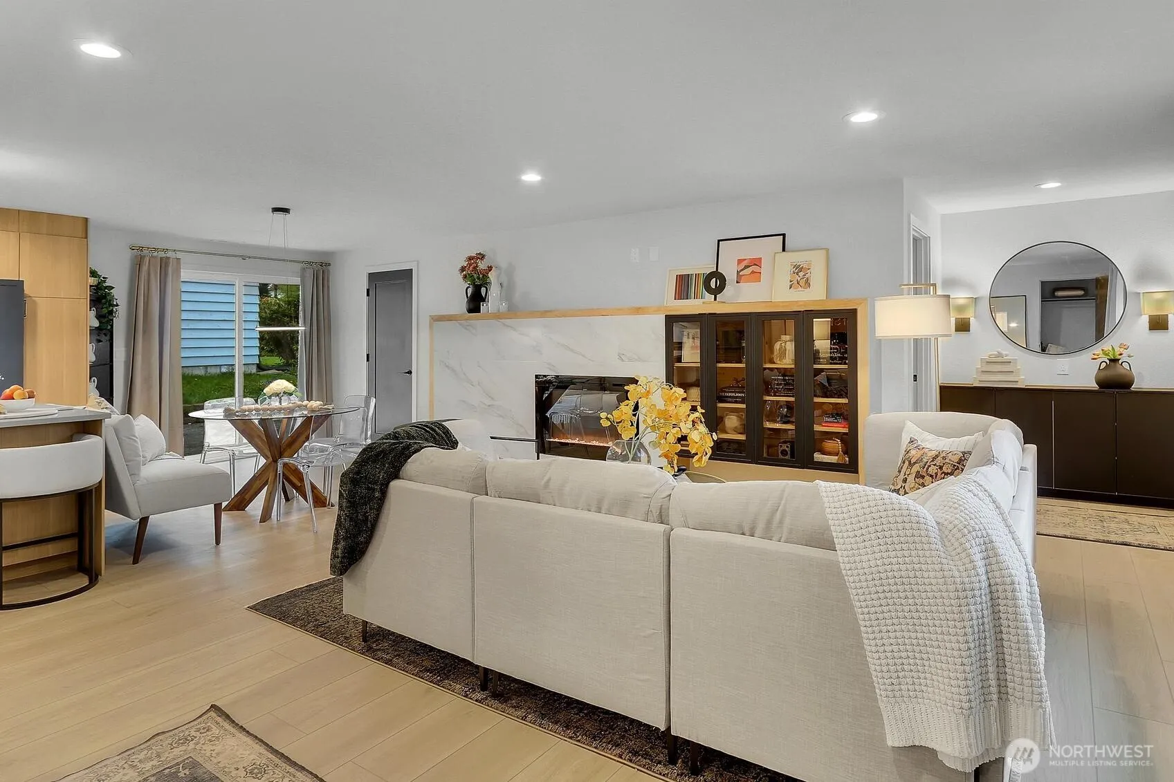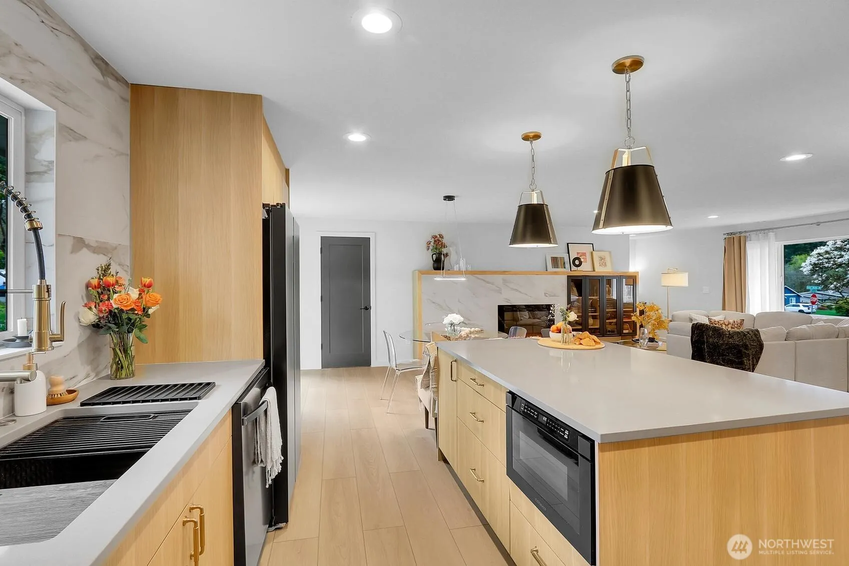 AMAZING! LIKE NEW-CONSTRUCTION! Full Gut-to-Stud, Permitted, Remodeled Rambler designed by 1 of the Eastside’s Top Luxury Builder Designers! Rarely will you find a single story home in an established neighborhood where you get over $400k in complete remodel work! All new Mechanical, Plumbing Repipe, Electrical Panel & ReWire, Gas Lines, 90% Efficient Gas Forced-Air Heat & A/C, Water Heater, Gas Lines, Roof, Insulation, Sewer Line, Main Water Line, Kitchen, Baths, Windows, Sheetrock, Luxury Vinyl Plank Floors, Doors, Trim, Fixtures, Built-ins … everything! Great Built-ins at Entry Space to Primary Bedroom with Designed Walk-in-Closet , Custom Tiled Shower in Bath, Fireplace with Full Tiled Surround. 3 Guest Bedrooms, Full Hall Bath with Big Linen Closet, Guest Powder Room. Custom Great Room with Designer Kitchen, Living Area, Dining Area. Custom Finishes throughout Kitchen with High-End Cabinets, Wrap around tile, all Black Stainless Appliances, Breakfast Bar, etc. Laundry Closet – Washer & Dryer included. Living Area features custom tile, Fireplace & Built-ins. Deep Garage redone with Electric Car Setup, Garage Door, Opener. Outside is a massive corner lot with extensive grass; room for 5 cars in 2 paved driveways; gate to gravel pad for RV, trailer or boat; Fenced terraced grass lawn with A/C & Room for Outdoor Living. Slider from Kitchen & Dining into back yard & 2nd driveway. Inquire about all permits, features & finish selections. Welcome Home! You are going to love it!