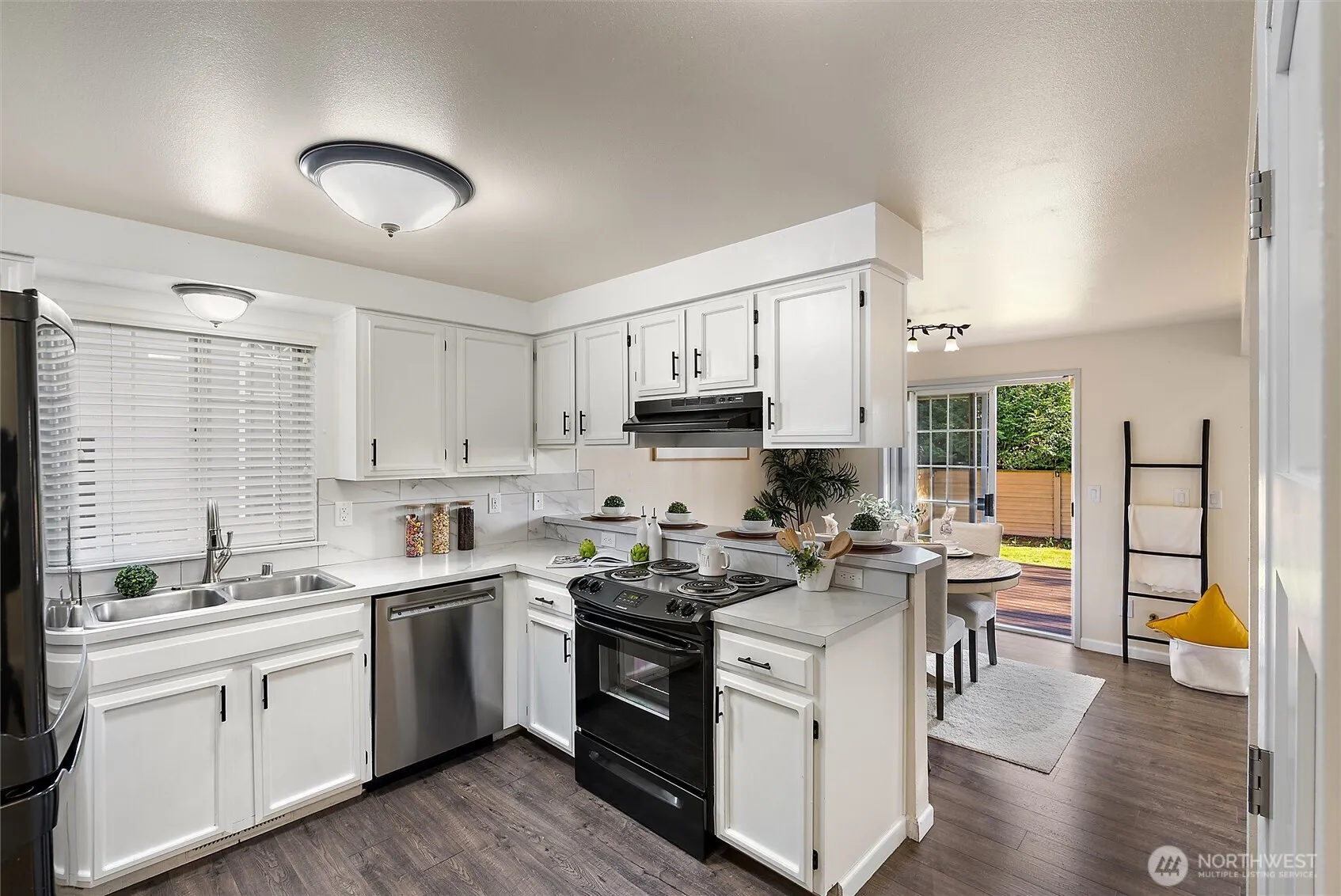 Step into your own peaceful retreat and feel instantly at home. Inside, a light-filled living room with beautiful LVP flooring creates a warm, inviting space. The kitchen is perfect for everyday living and entertaining—step out to the deck for relaxed evenings with friends, then unwind by the fireplace. Upstairs, the primary suite features a refreshed bath, along with two additional bedrooms and an updated full bathroom. The level backyard offers space for play or gardening, and the finished garage adds convenience. Ideally located near shopping, dining, and within the Lakewood School District.