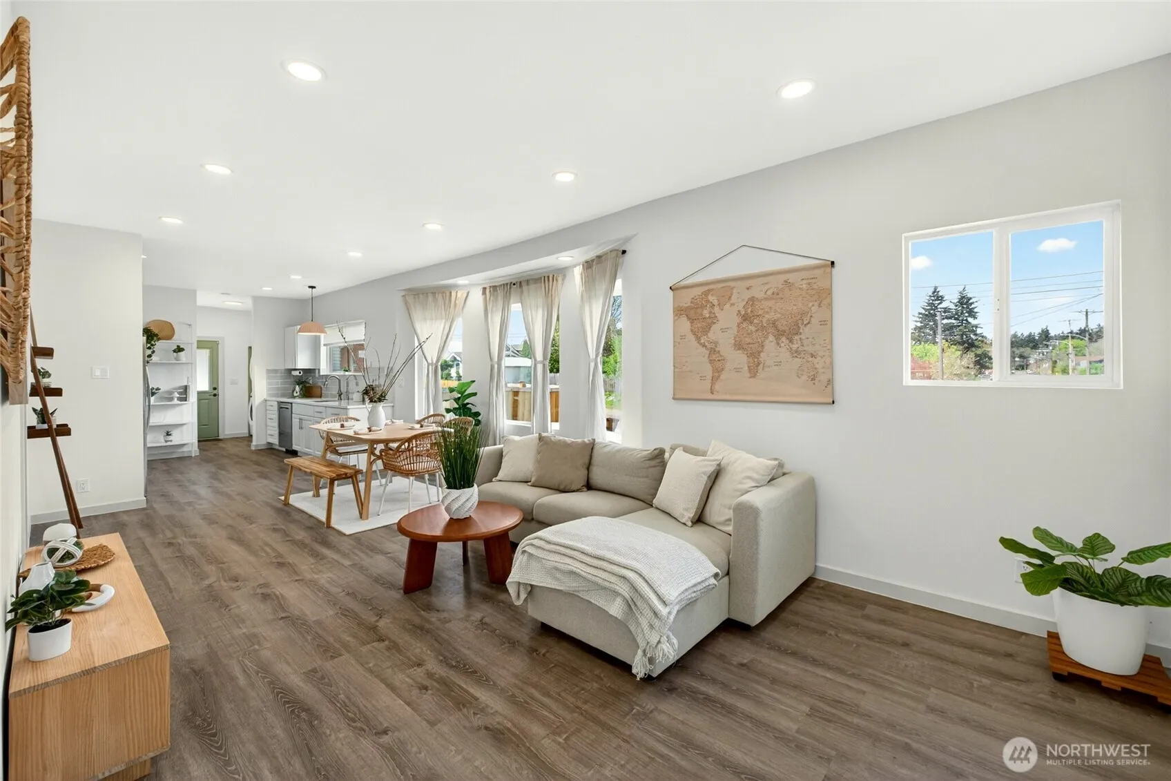 Move-in ready and full of must-have features, this 4-bedroom, 2.5-bath home sits on a fully fenced corner lot in Tacoma and was completely updated in 2022, including a new roof. Enjoy the convenience of main-level living with 3 bedrooms on the main floor, including a primary suite with en suite bathroom, plus a second full bath for guests’ comfort. Upstairs offers a spacious loft-style bedroom with a half bath—ideal for a home office, guest retreat, or flexible bonus space. The open-concept floor plan creates seamless flow between the kitchen, dining, and living areas—perfect for entertaining or everyday living. The kitchen features quartz countertops and a gas stove, combining style and functionality, while natural light fills the home and enhances the warm, inviting feel throughout. Step outside to a fully fenced yard with garden beds ready for your personal touch, plus the added space and privacy that comes with a corner lot. Located just a short walk from S Tacoma Way, you’ll love the easy access to local shops, dining, and festivals that make this area so special—all while having a place to come home to and unwind.