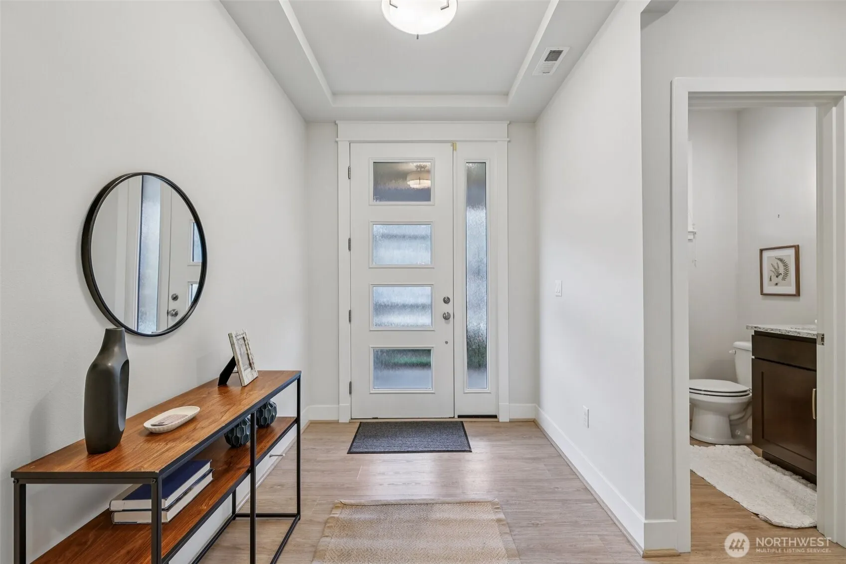 Experience “better-than-new” luxury in this exceptional Normandie Woods residence in Bothell. Bathed in abundant natural light from its coveted north-facing orientation, this home exudes elegance from the moment you enter. Gleaming hardwood floors guide you into a sophisticated open-concept living space, anchored by a warm, inviting fireplace—perfect for both refined entertaining and everyday comfort. The gourmet kitchen is a true showpiece, featuring striking slab quartz countertops, premium stainless steel appliances, and a five-burner gas cooktop designed to inspire culinary creativity. Rich, custom millwork adds a layer of craftsmanship and distinction throughout the home. Upstairs, a sense of grandeur unfolds with soaring vaulted ceilings in the loft and four generously proportioned bedrooms, including an opulent primary suite. Thoughtfully appointed upgrades elevate the lifestyle experience, including a covered patio ideal for year-round enjoyment, a charming backyard, central air conditioning, an EV charger, and a spacious two-car garage. Perfectly positioned for convenience, this home offers seamless access to I-5 and I-405, while being nestled in a picturesque neighborhood just steps from the scenic Rhody Ridge Trail—ideal for tranquil walks and weekend adventures. Pre-inspected and impeccably maintained, this turnkey masterpiece is ready to welcome its next discerning owner.