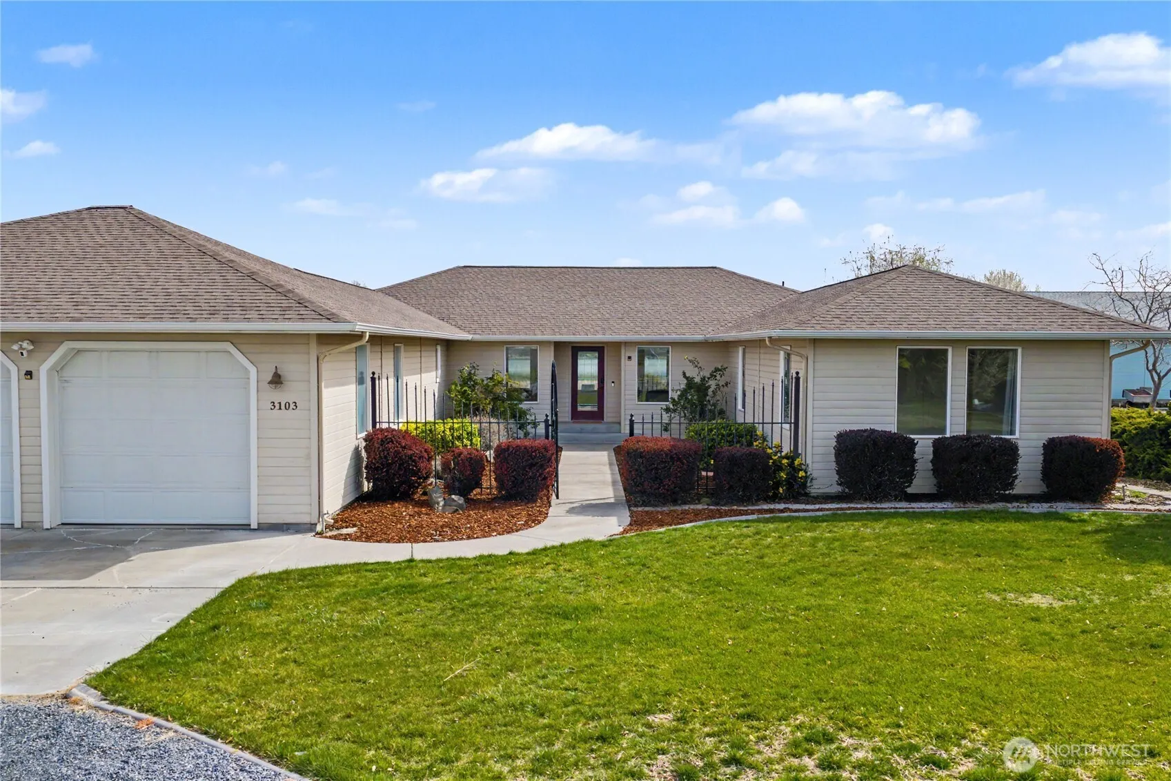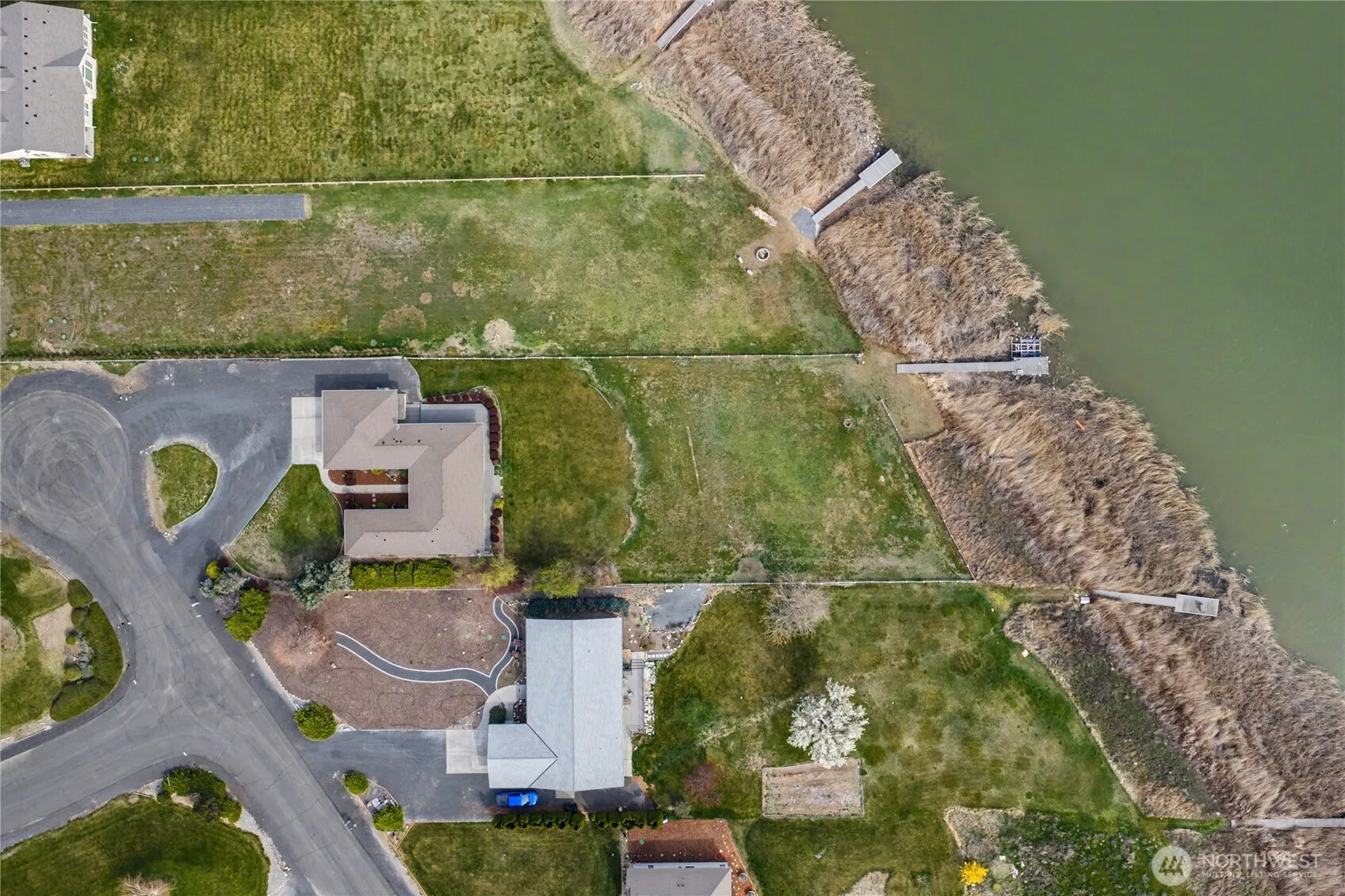 Experience refined lakefront living with this 2,300 sq ft single-story residence situated on a one-acre, low bank lot. Thoughtfully designed to maximize waterfront views, the U-shaped home features a welcoming courtyard entry leading into a living room with vaulted ceilings and an expansive wall of windows. Elegant hardwood flooring connects both wings of the house. The left side offers a spacious kitchen with a large island, open to a lake-facing dining area and direct access to the wraparound deck. Additional conveniences include a pantry, laundry, and powder room. The right side comprises three bedrooms, among them a lakefront ensuite, as well as a full guest bath. The property is located at the end of a cul-de-sac and includes a circular driveway, RV parking, and a three-car garage. The level lot provides ample space for gardens and outdoor recreation. Waterfront amenities include a private dock and powered boat lift. The interior has been freshly painted, and the home is move-in ready. Come live life on the lake!