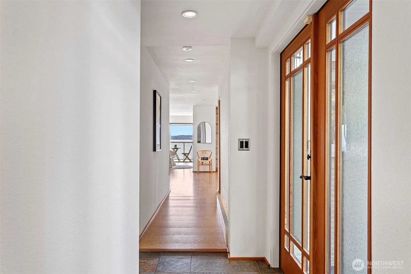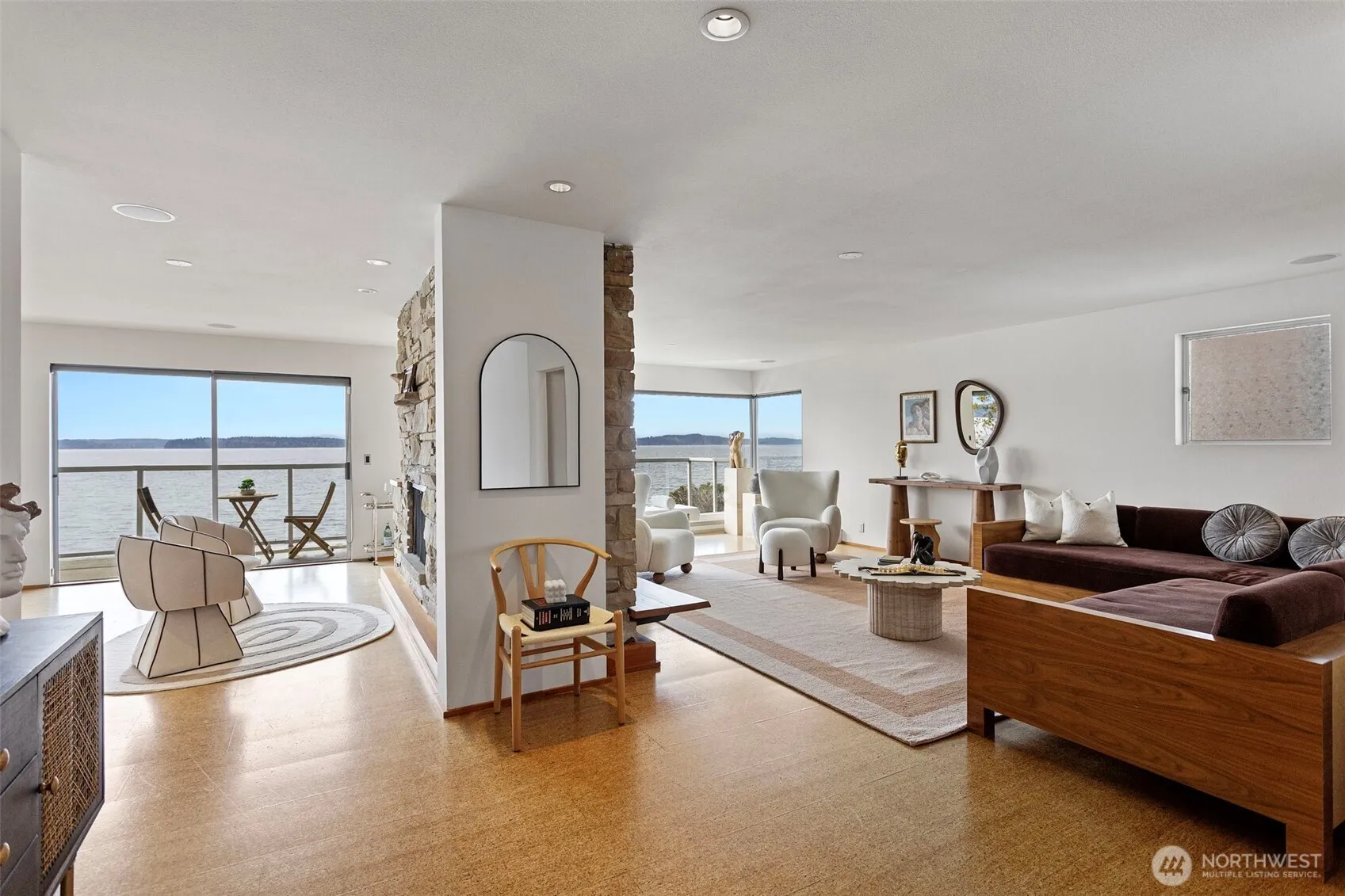 A truly rare opportunity at the entrance to Lincoln Park—this waterfront residence is part of an intimate 3-unit condo community where homes seldom come to market. Enjoy easy, single-level living with direct access from two assigned parking spaces, offering a rare blend of convenience and privacy. Thoughtfully remodeled with eco-friendly materials, the home features a wall of windows framing sweeping views of Puget Sound and the Olympic Mountains. Natural light fills the open living and dining areas, anchored by a mid-century fireplace that creates a warm, inviting gathering space. The updated kitchen is designed for both function and style, with high-end Viking appliances, a walk-in pantry, built-in dining nook, and access to a long view deck for seamless indoor-outdoor living. The primary suite offers three closets, custom built-ins, and a beautifully remodeled bath. An additional en-suite bedroom is ideal for guests or a home office, complemented by two more bedrooms, a full bath, and a spacious utility & storage room. Low HOA dues, deeded water access and the ability to install a moorage buoy complete this exceptional waterfront offering.